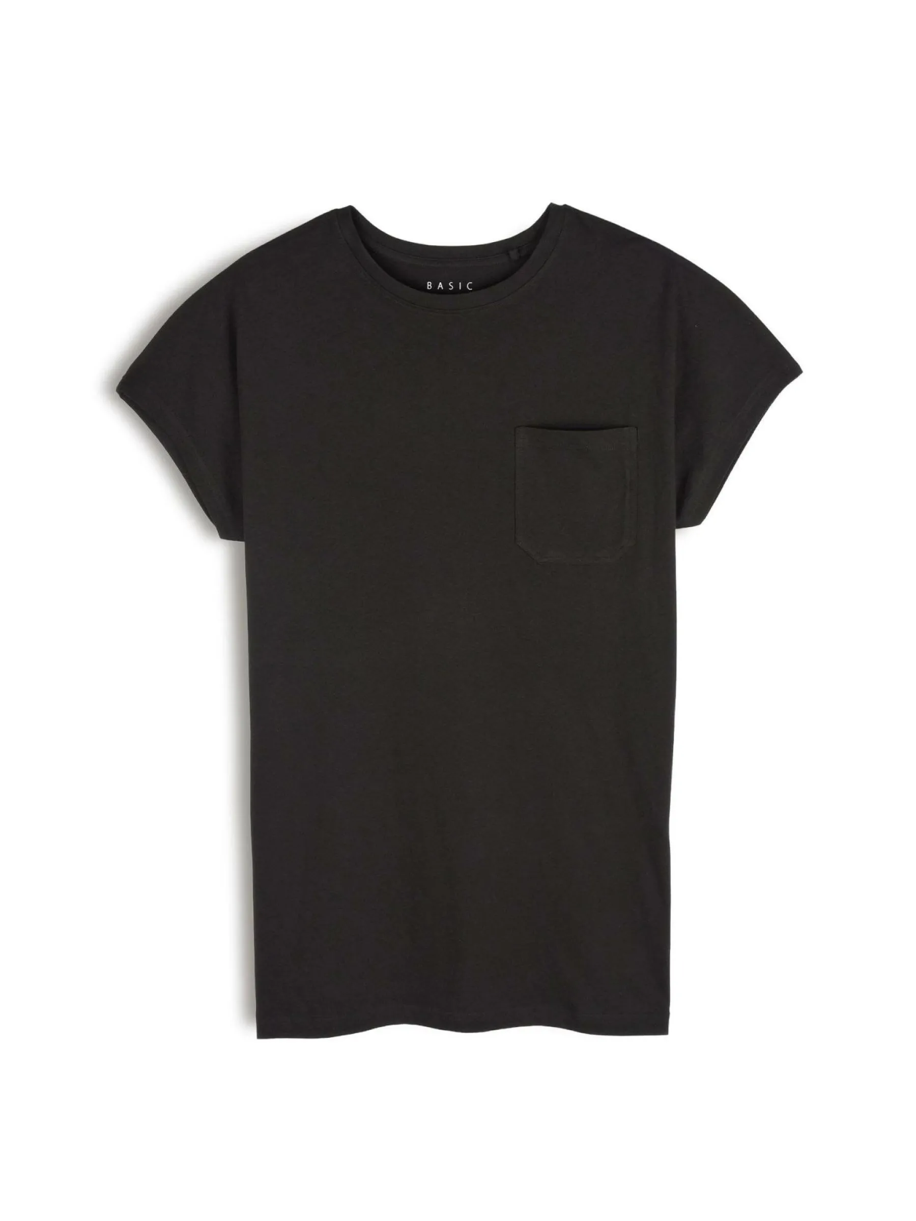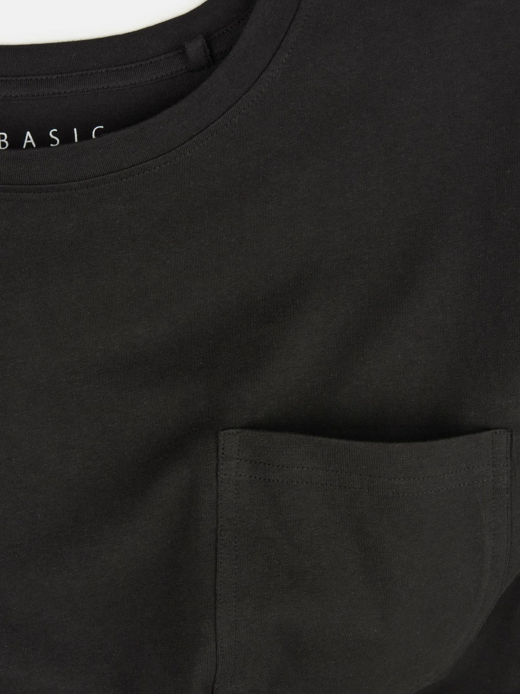 Kolor: czarnyKrój: regularTyp: koszulkaRekaw: krótki rękawDługość: dlugiePattern style: pojedynczy kolorDetal: z k…