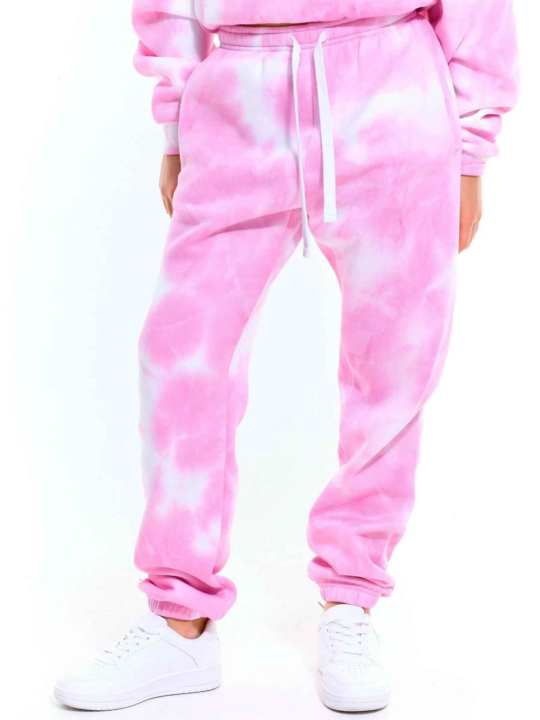 Kolor: różowyKrój: joggerTyp: spodnie dresoweDługość: dlugiePattern style: tie dyeDetal: ze sznurowaniemMateriał:…