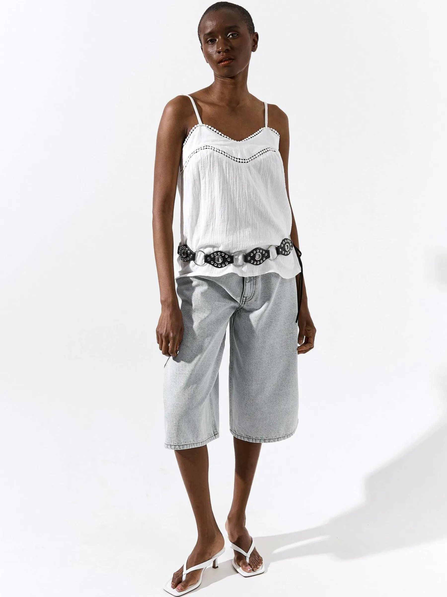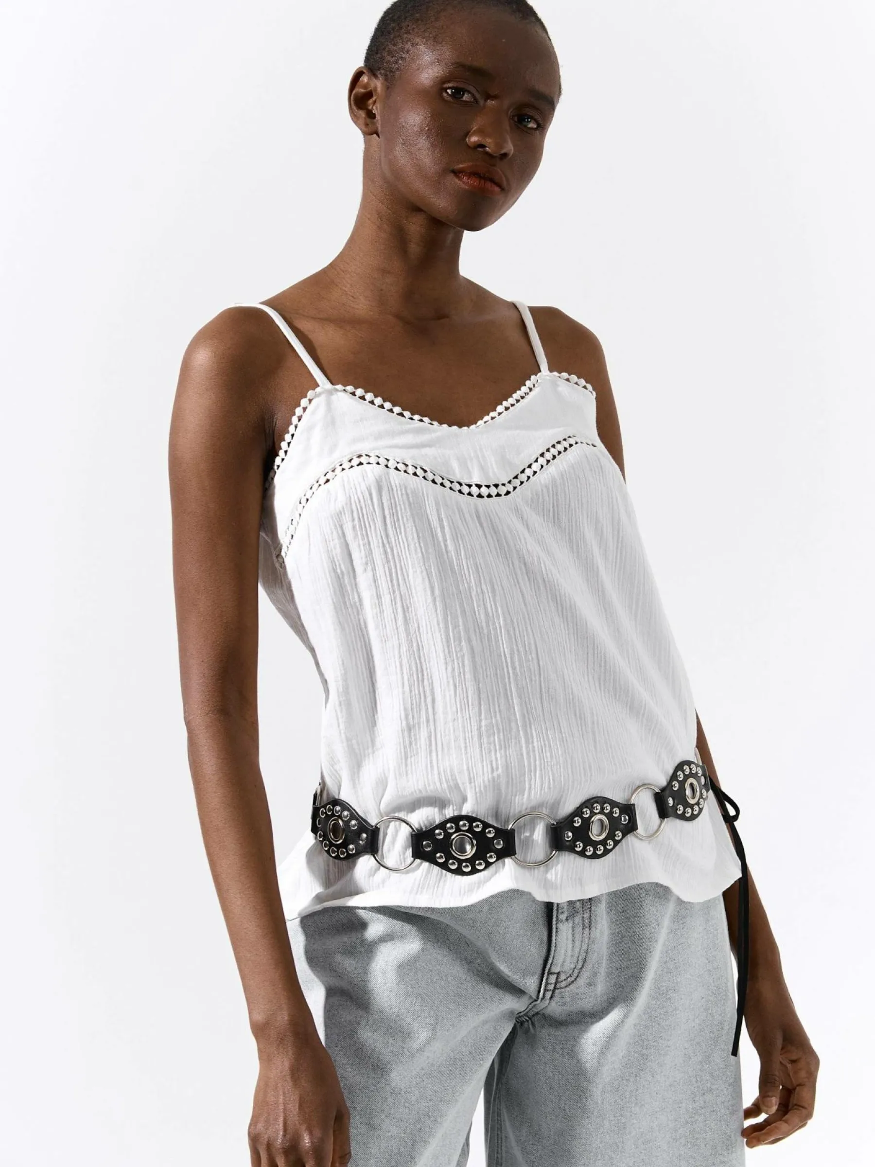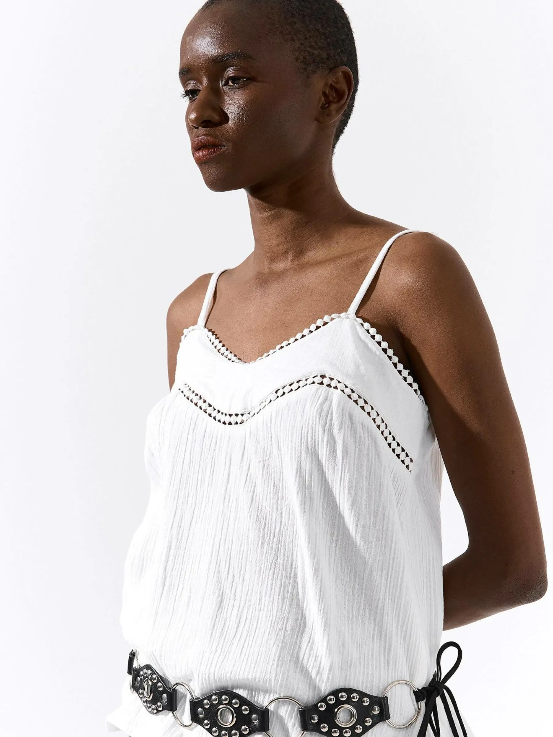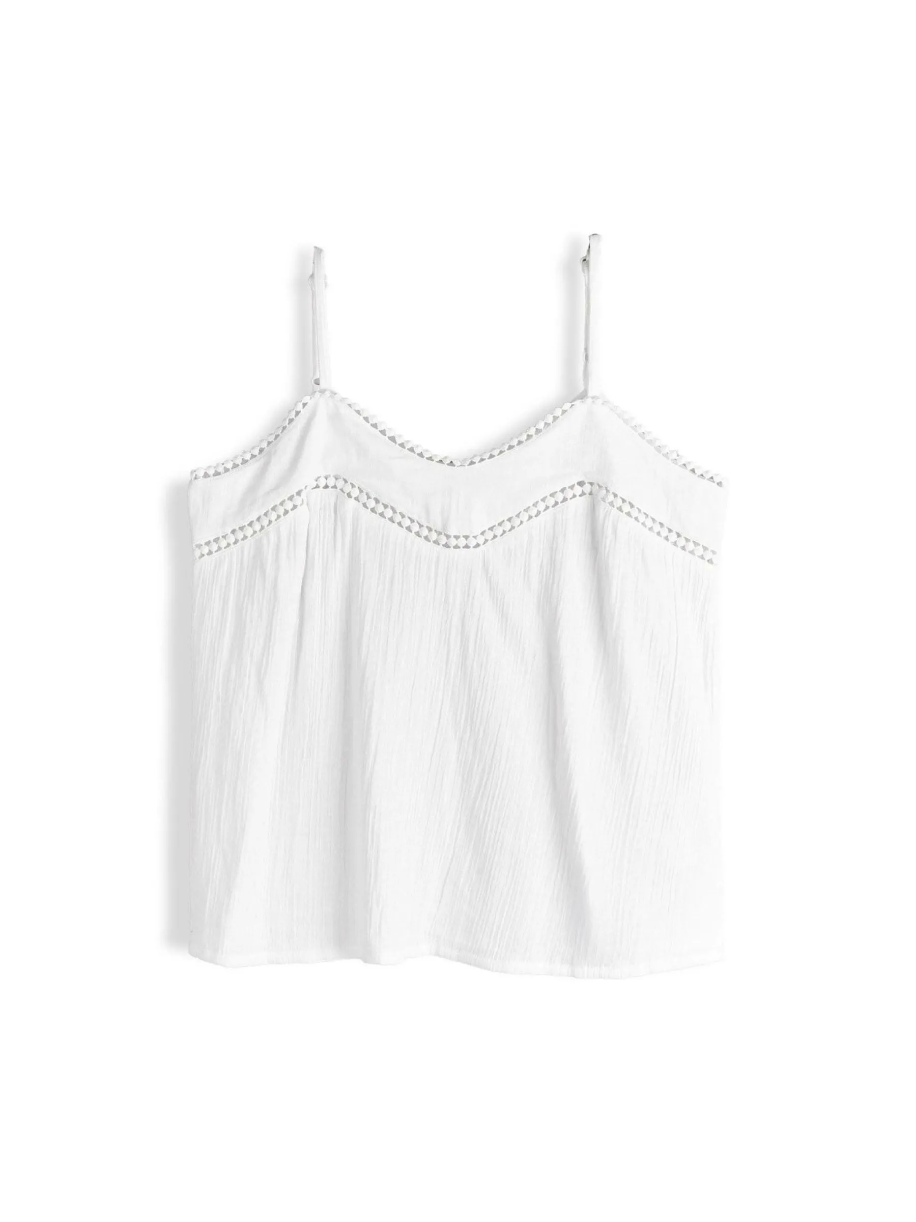 Kolor: białyKrój: regularTyp: top, bluzkaRekaw: bez rękawówDługość: krótkiPattern style: pojedynczy kolor, struk…