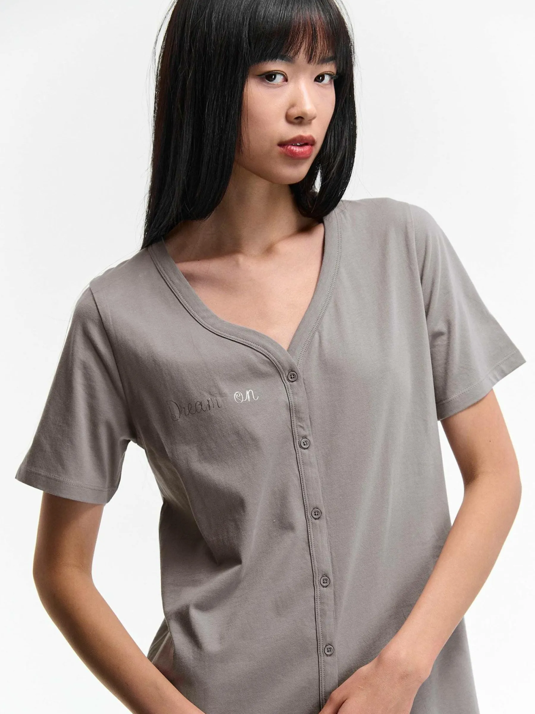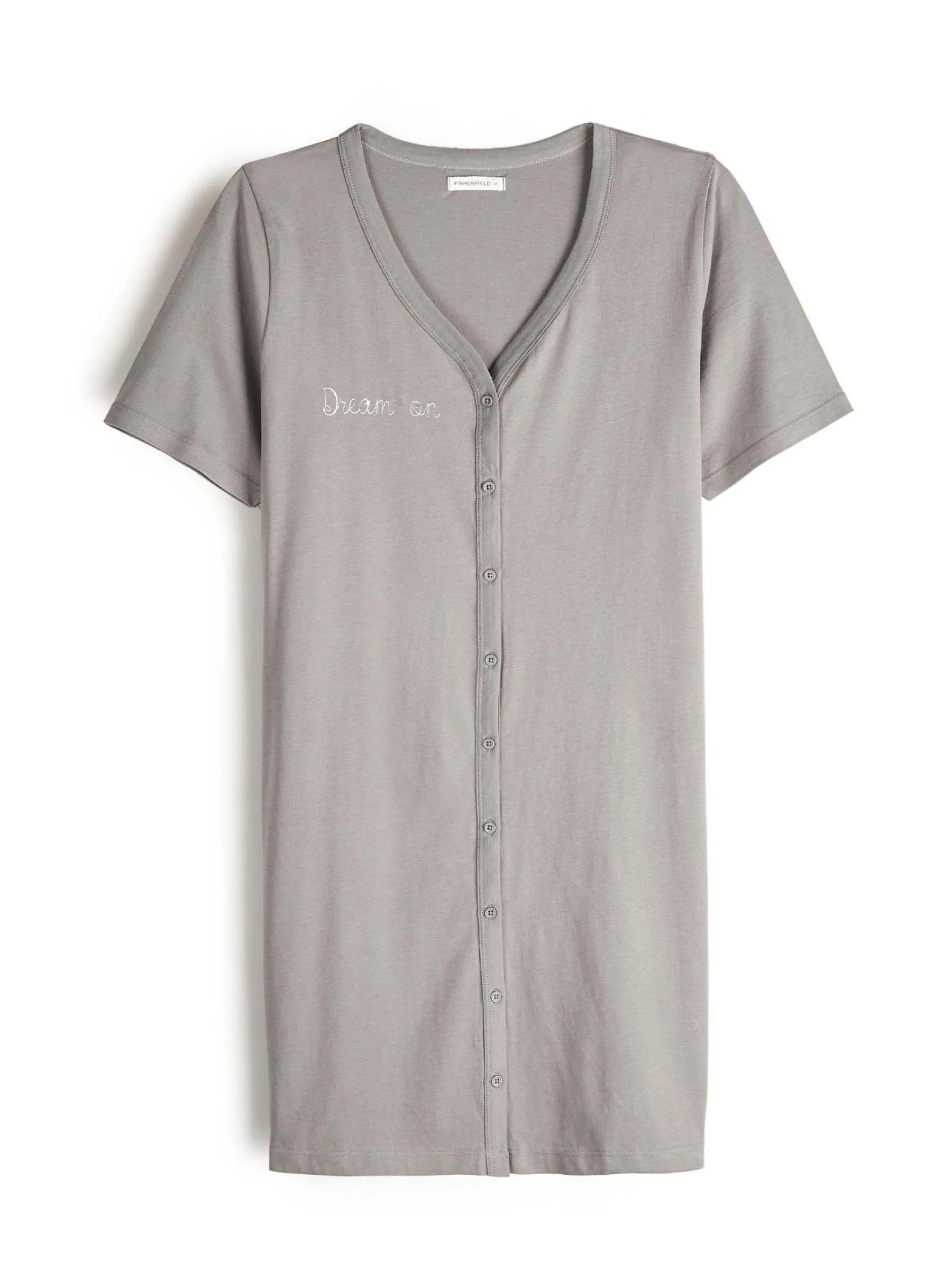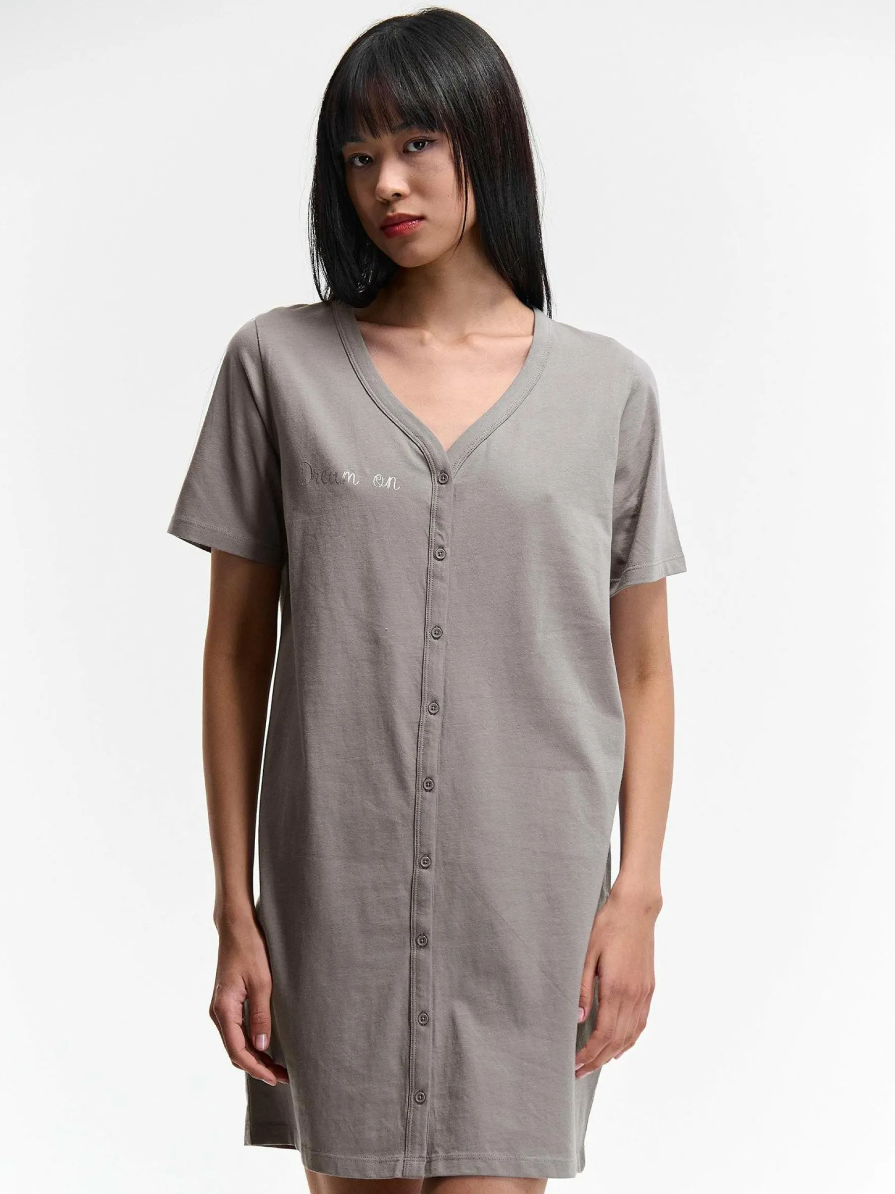 Kolor: szaryKrój: regularTyp: piżamaRekaw: krótki rękawDługość: dlugiePattern style: pojedynczy kolorDetal: na gu…