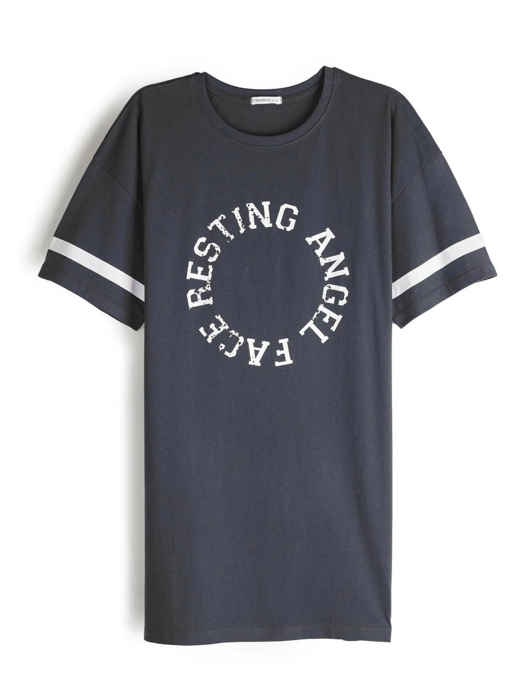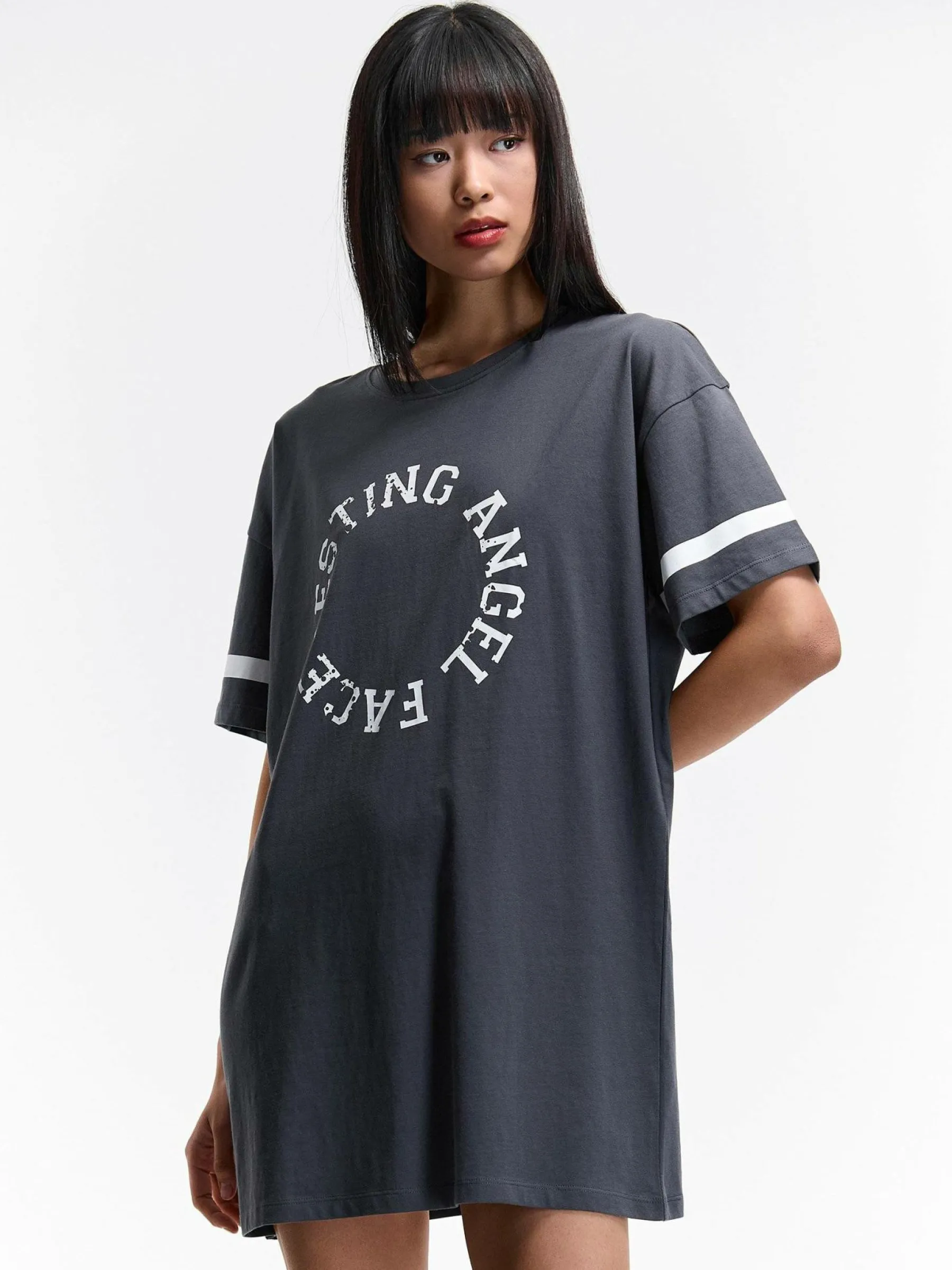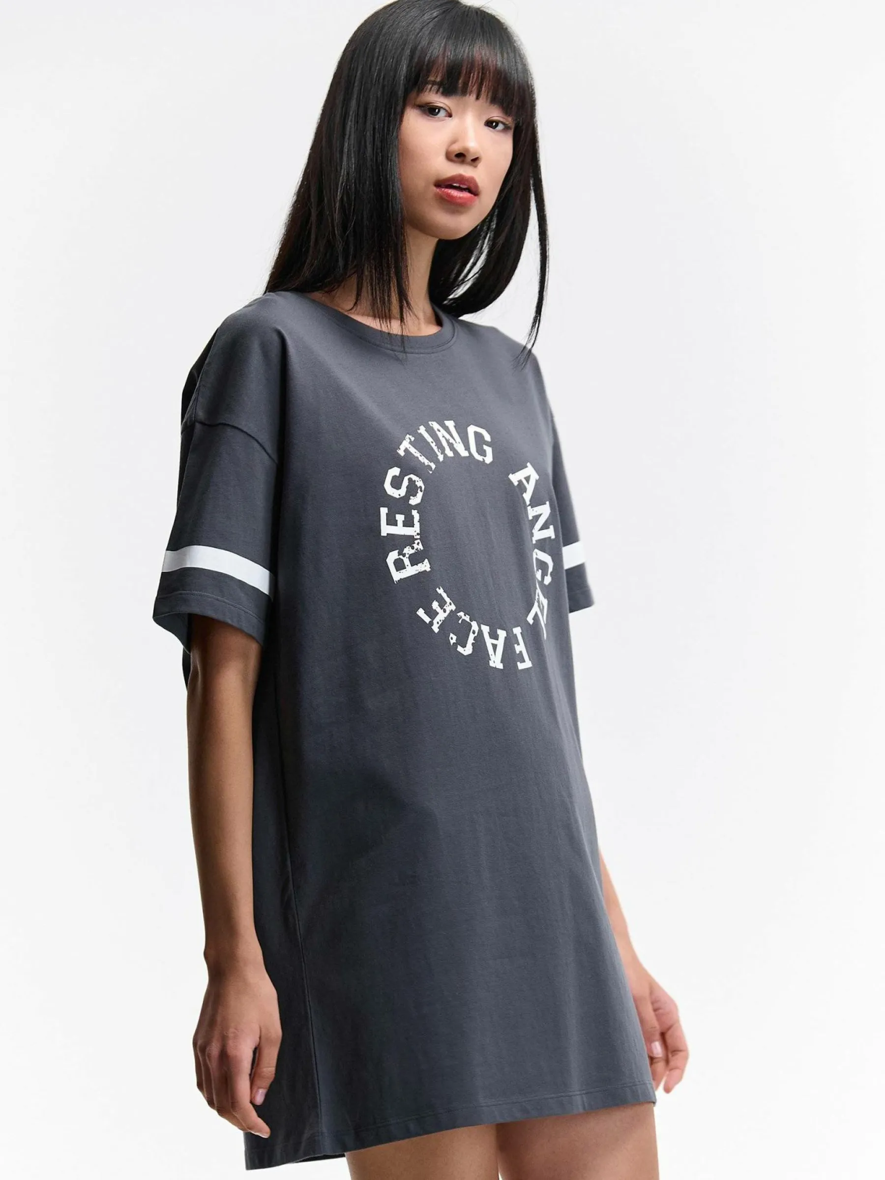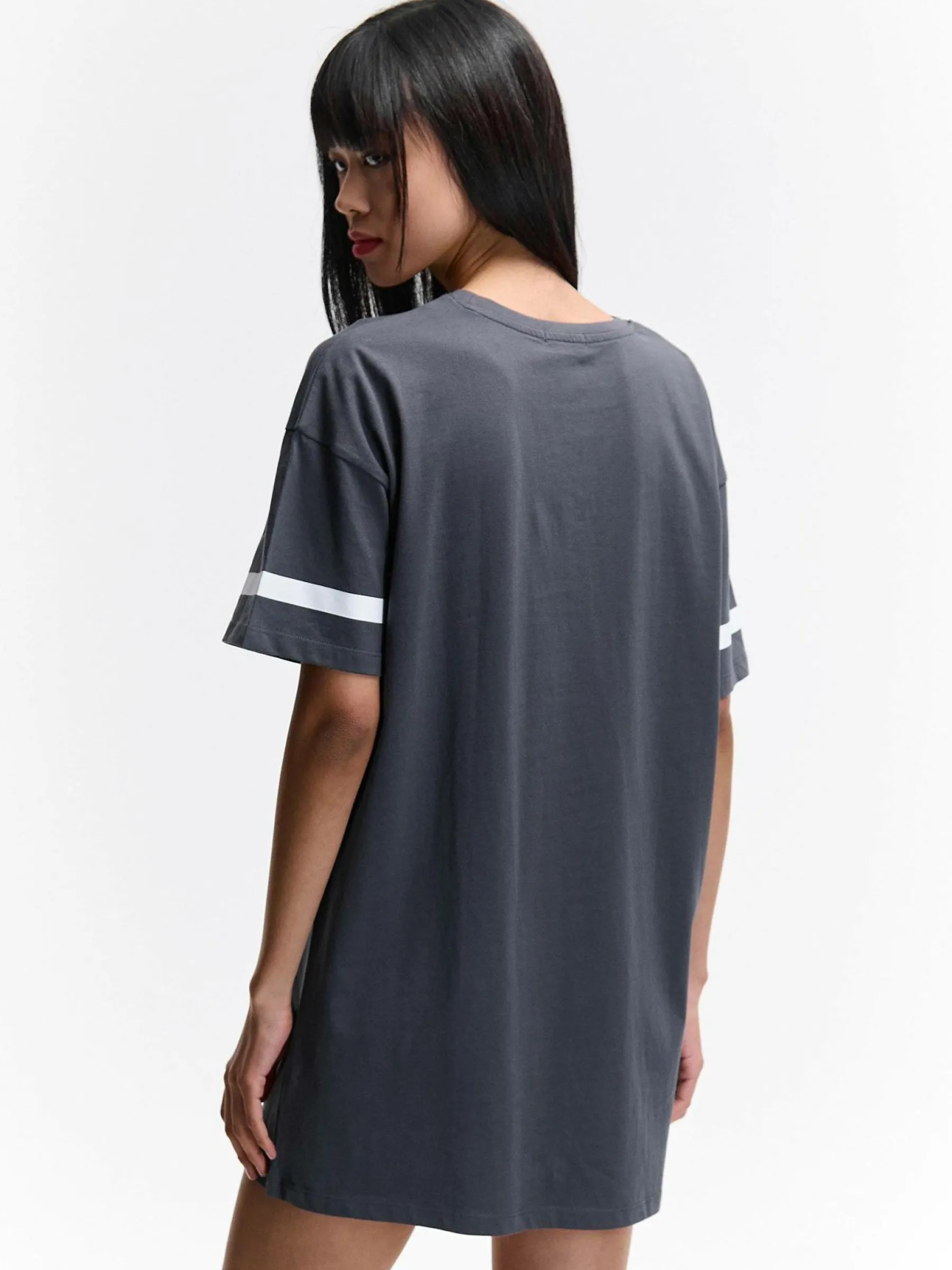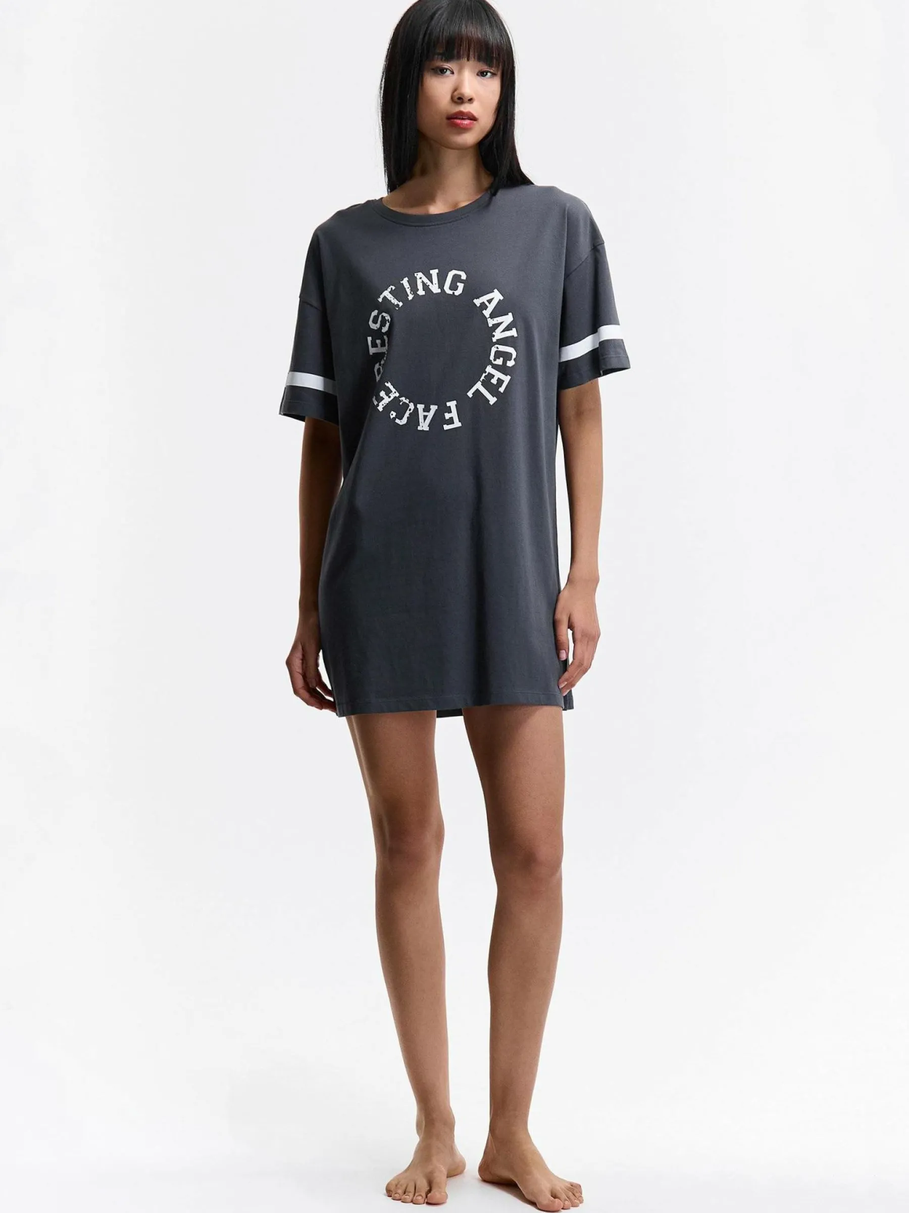 Kolor: szaryKrój: oversizedTyp: koszula nocnaRekaw: krótki rękawPattern style: z nadrukiemDetal: nad głowąMateriał…