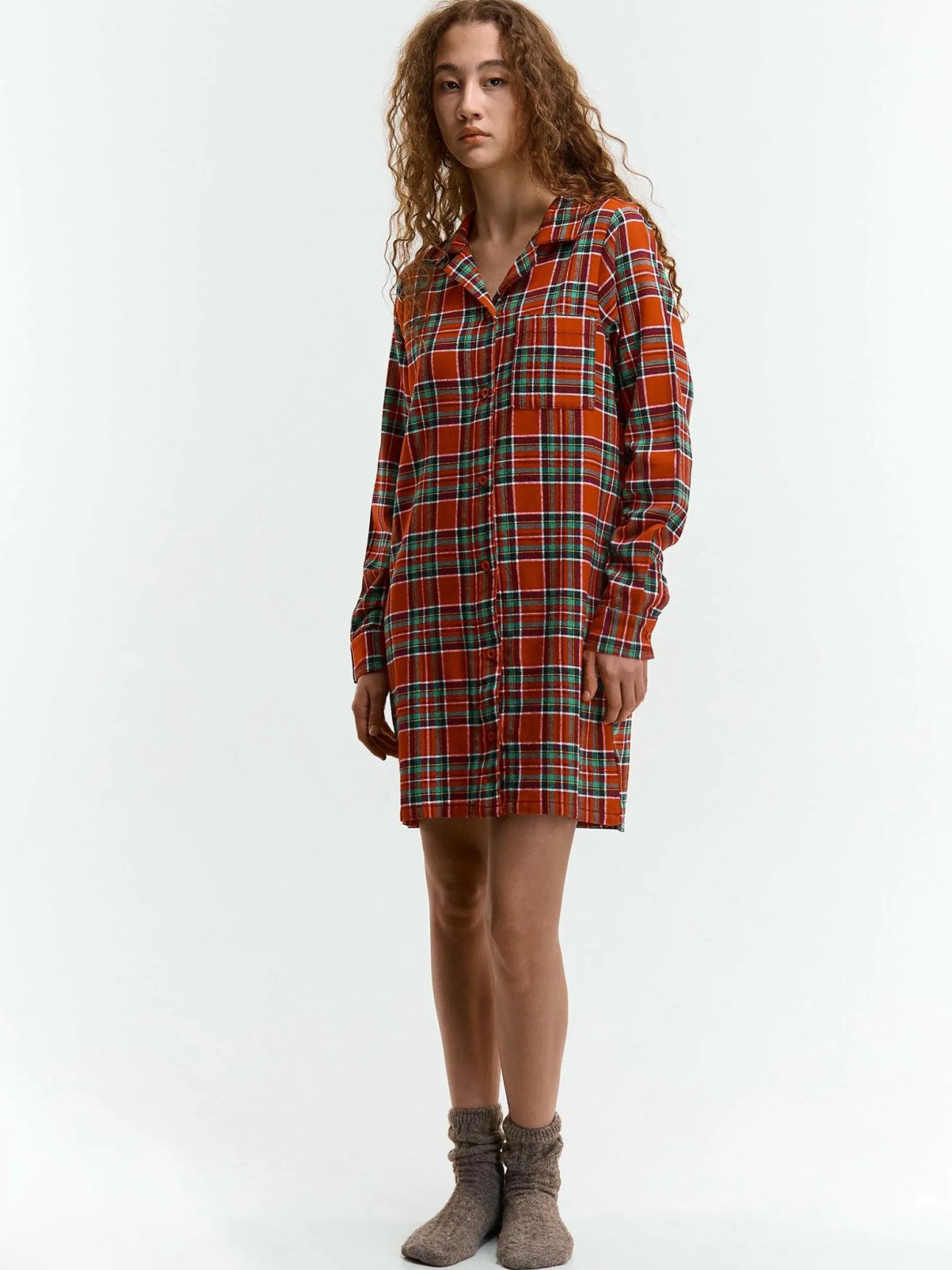 Kolor: czerwonyKrój: regular, koszuloweTyp: piżamaRekaw: długi rękawDługość: dlugiePattern style: w krateDetal: n…