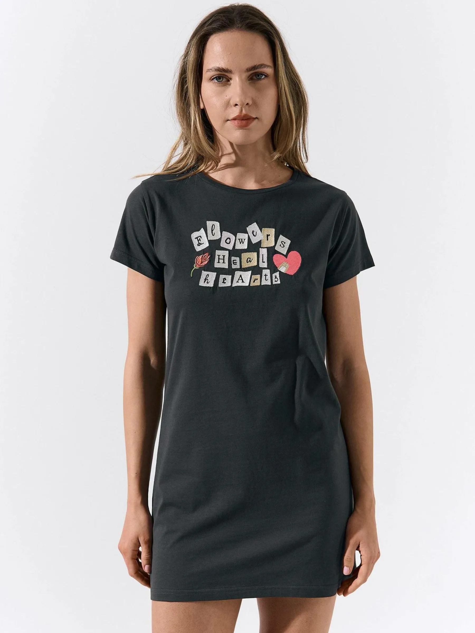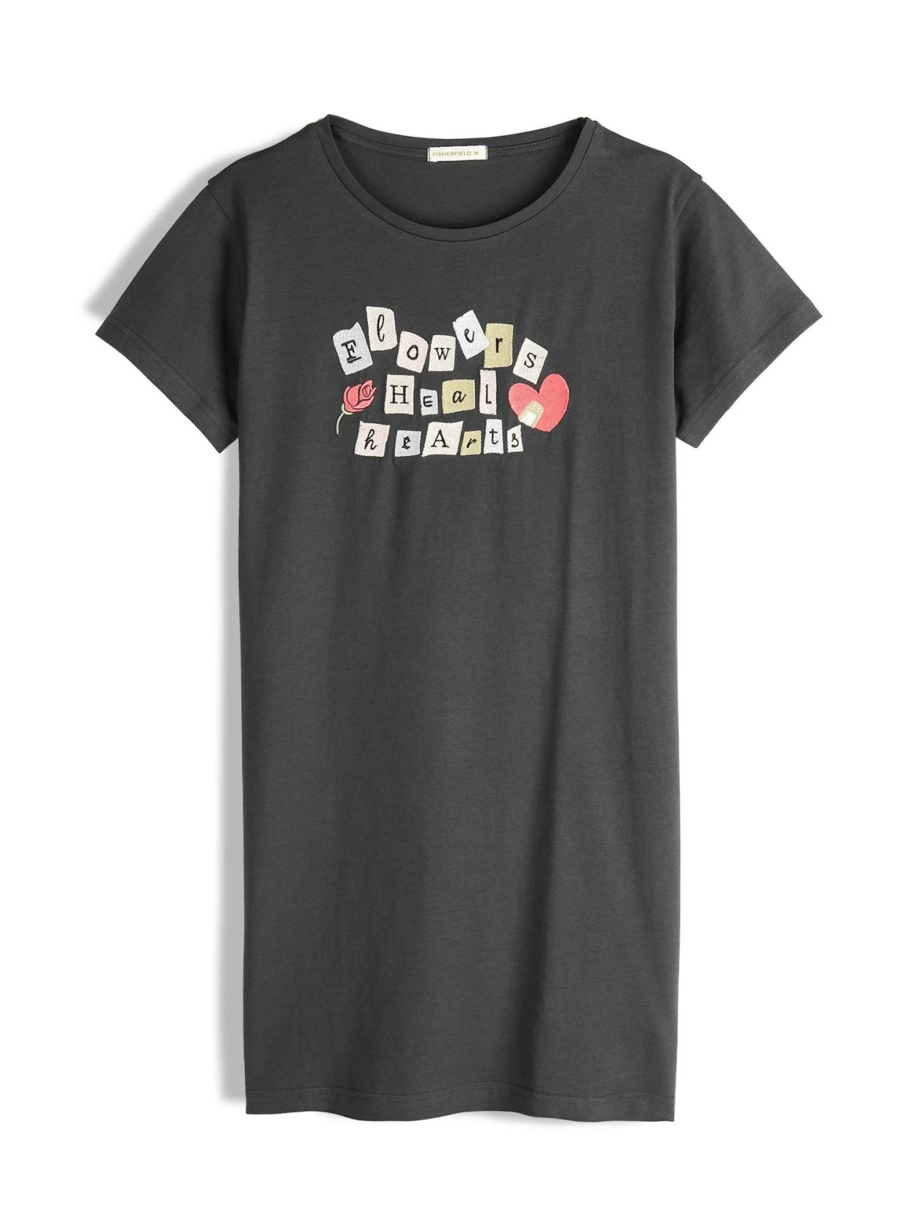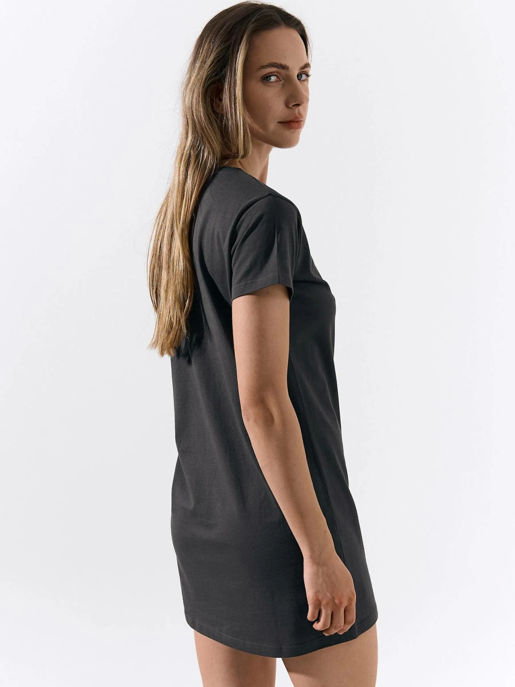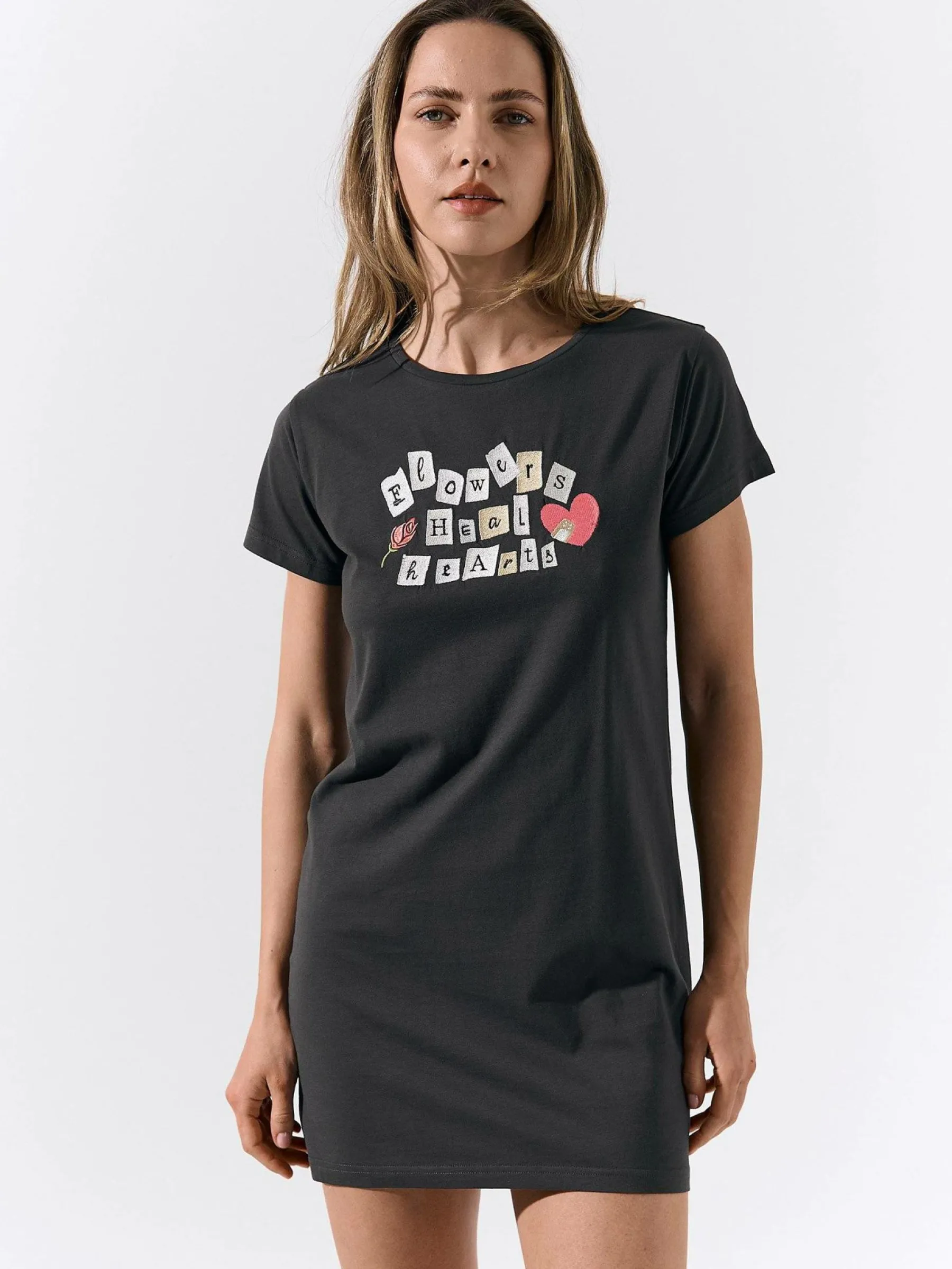 Kolor: szaryKrój: koszulkoweTyp: koszula nocnaRekaw: krótki rękawDługość: dlugiePattern style: z napisemDetal: nad…