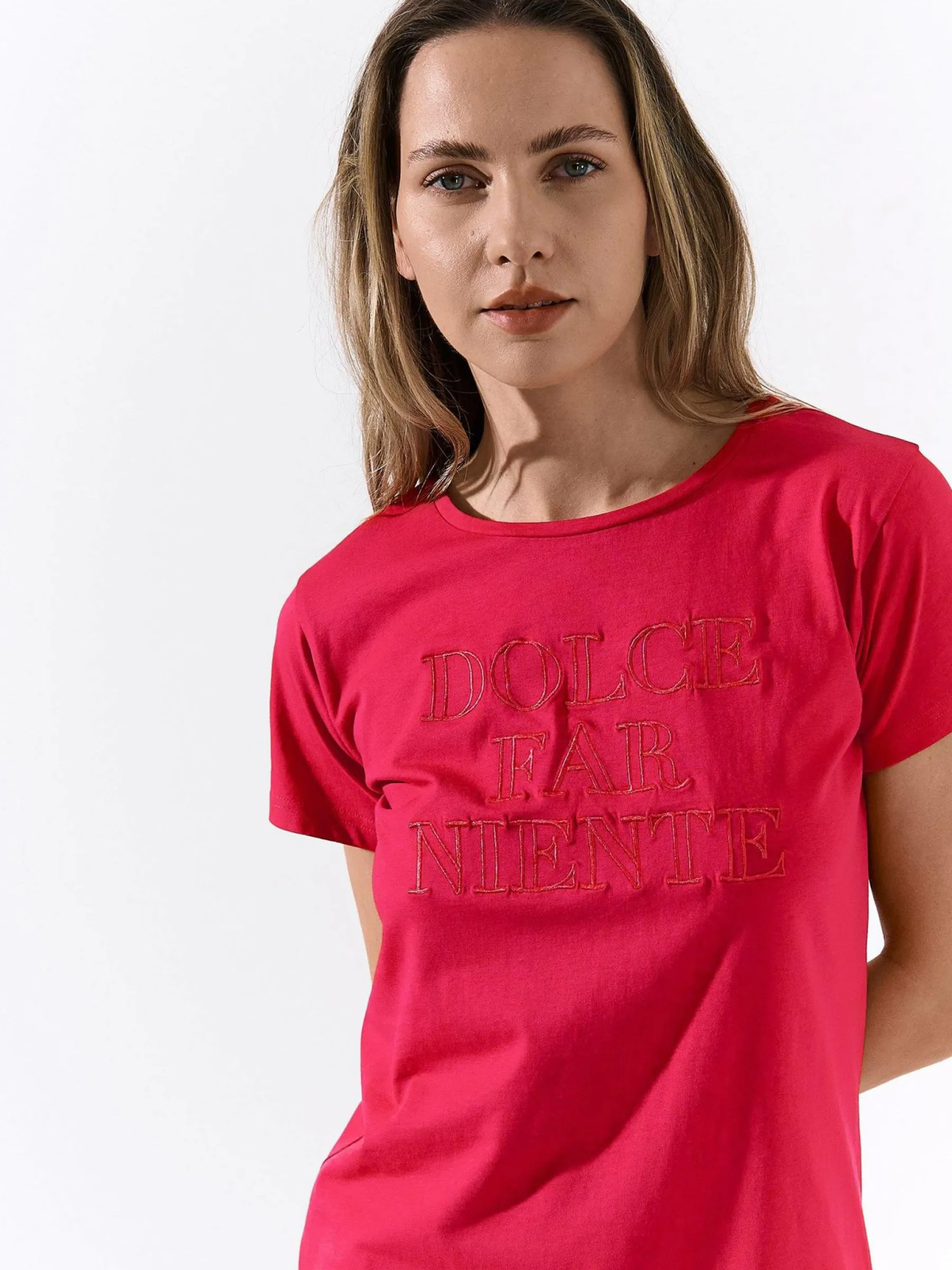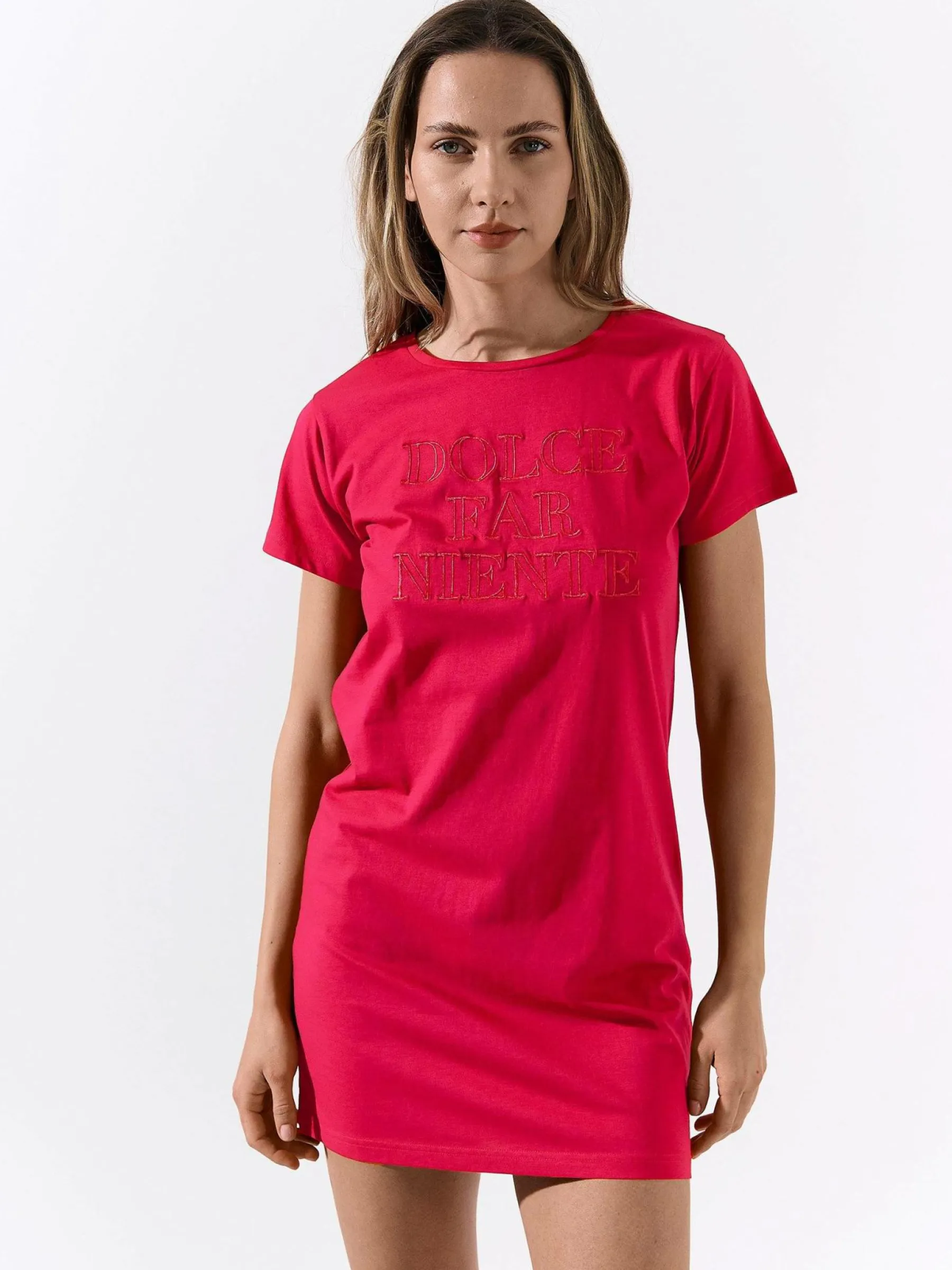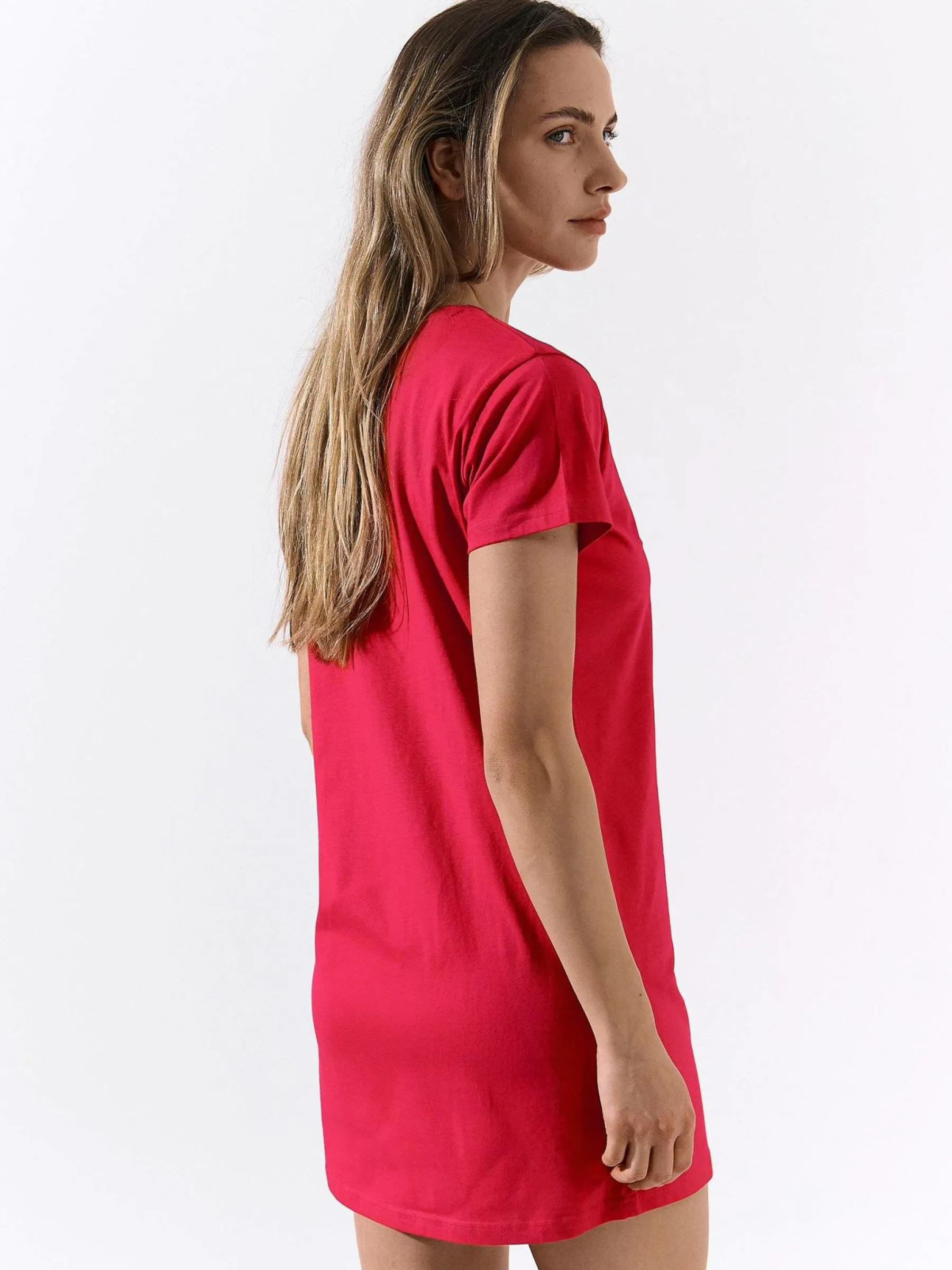 Kolor: czerwonyKrój: koszulkoweTyp: koszula nocnaRekaw: krótki rękawDługość: dlugiePattern style: pojedynczy kolor…