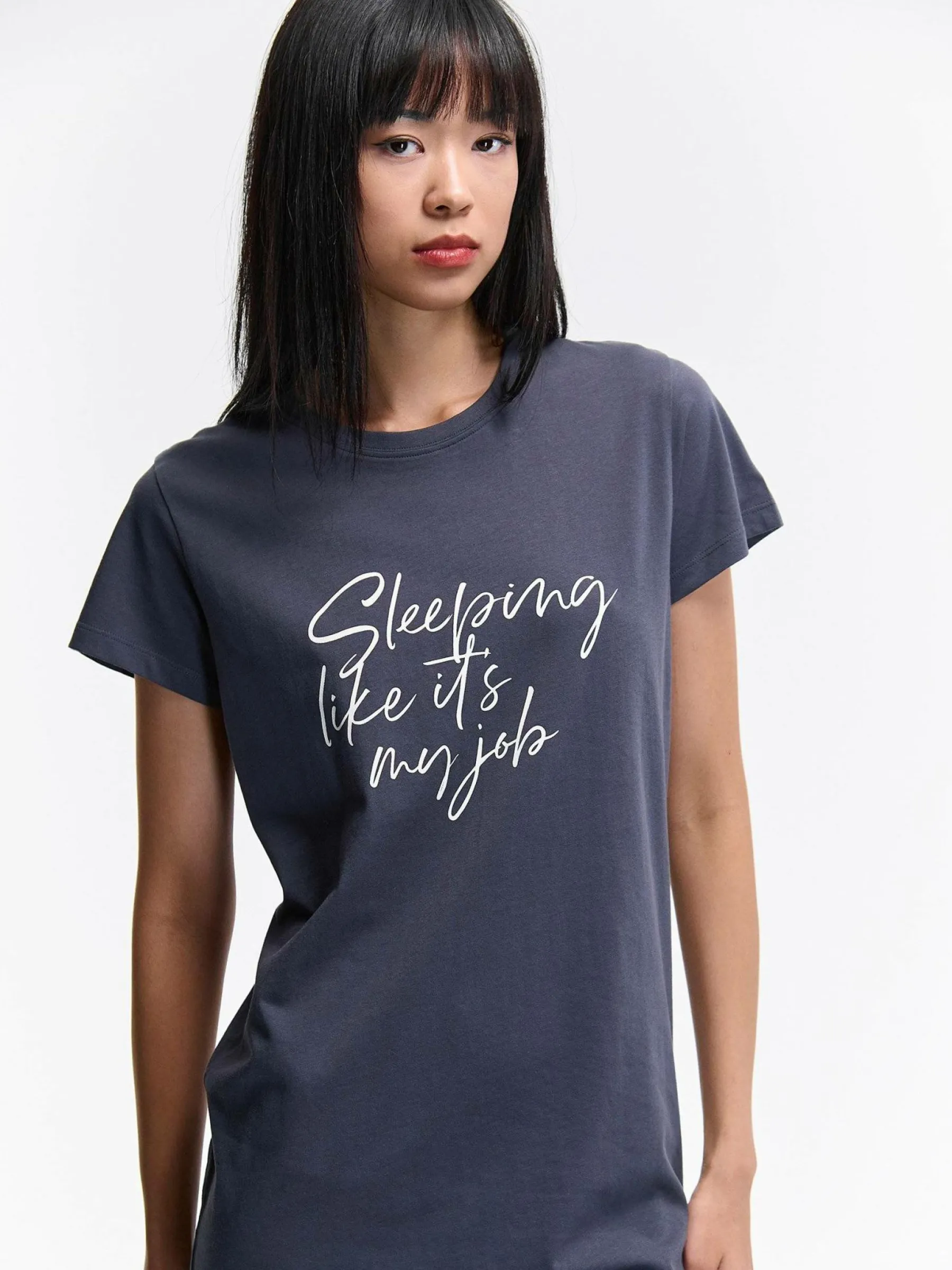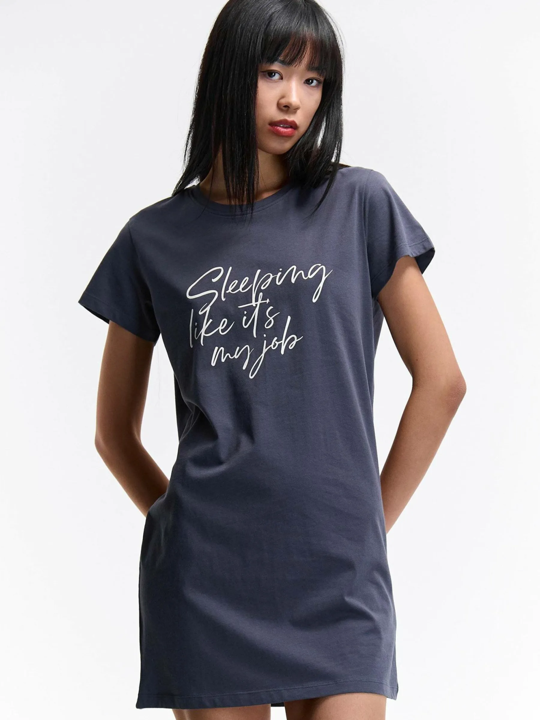 Kolor: szaryKrój: regularTyp: koszula nocnaRekaw: krótki rękawDługość: dlugiePattern style: z nadrukiemDetal: nad …