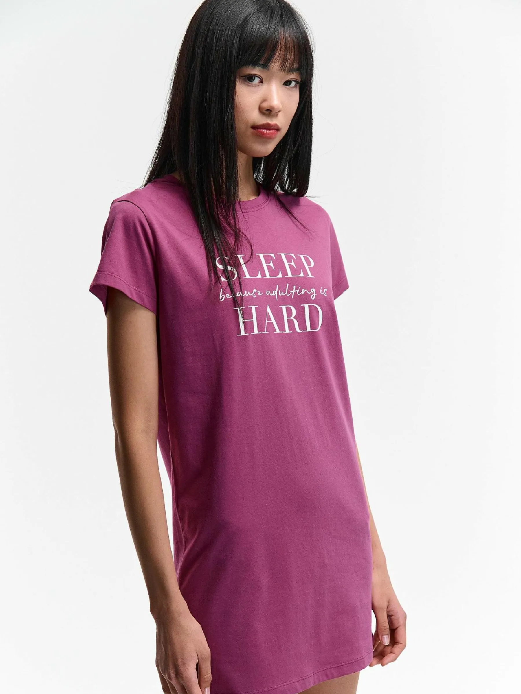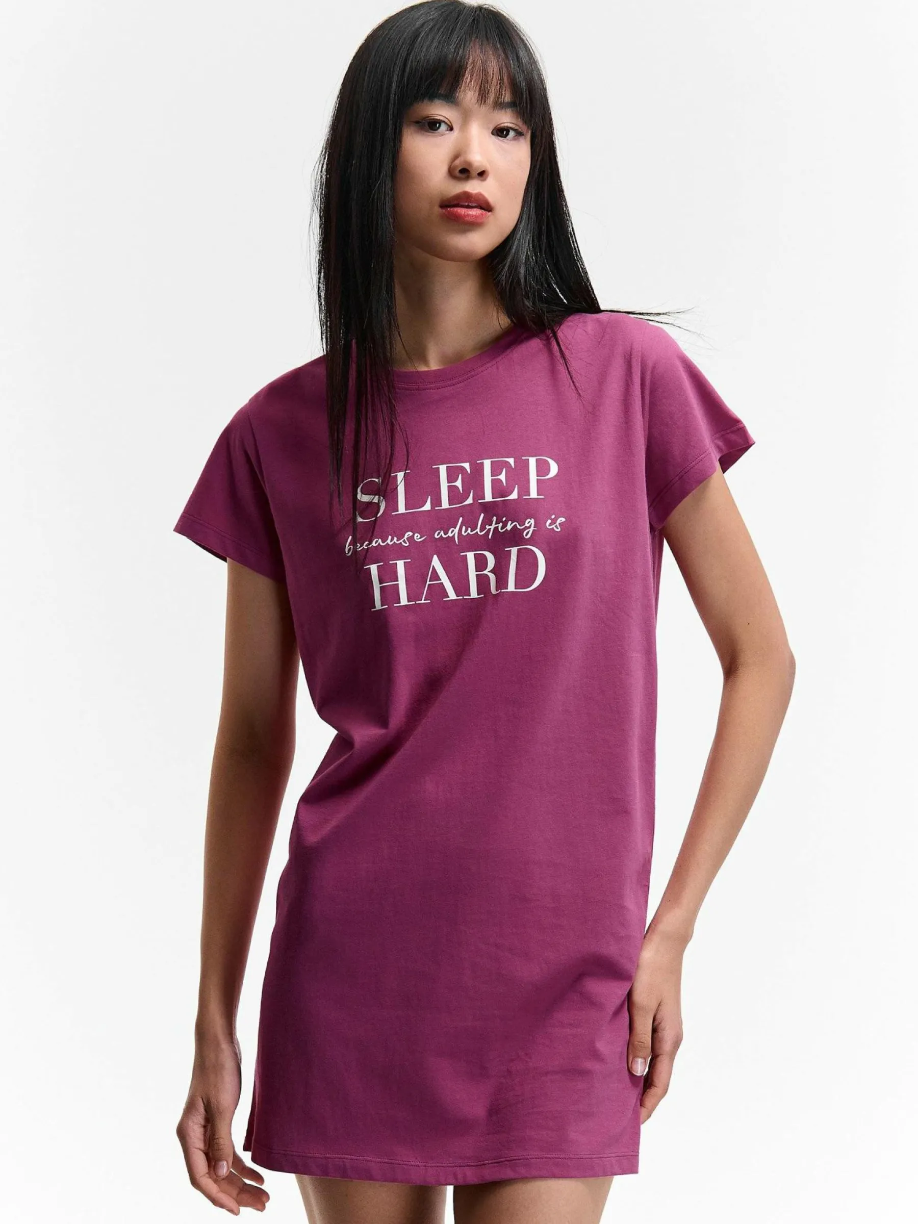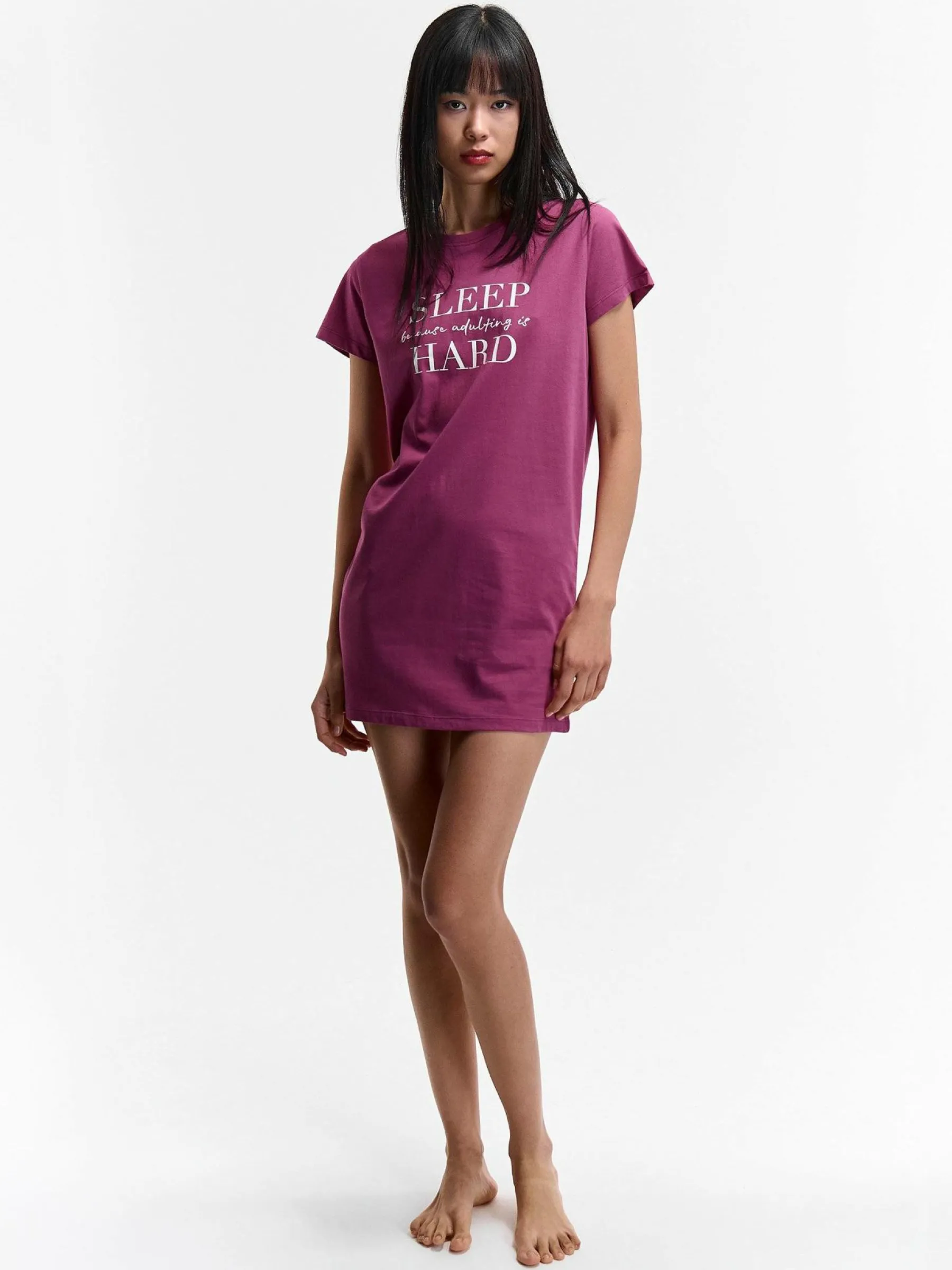 Kolor: burgundyKrój: regularTyp: koszula nocnaRekaw: krótki rękawDługość: dlugiePattern style: z nadrukiemDetal: n…