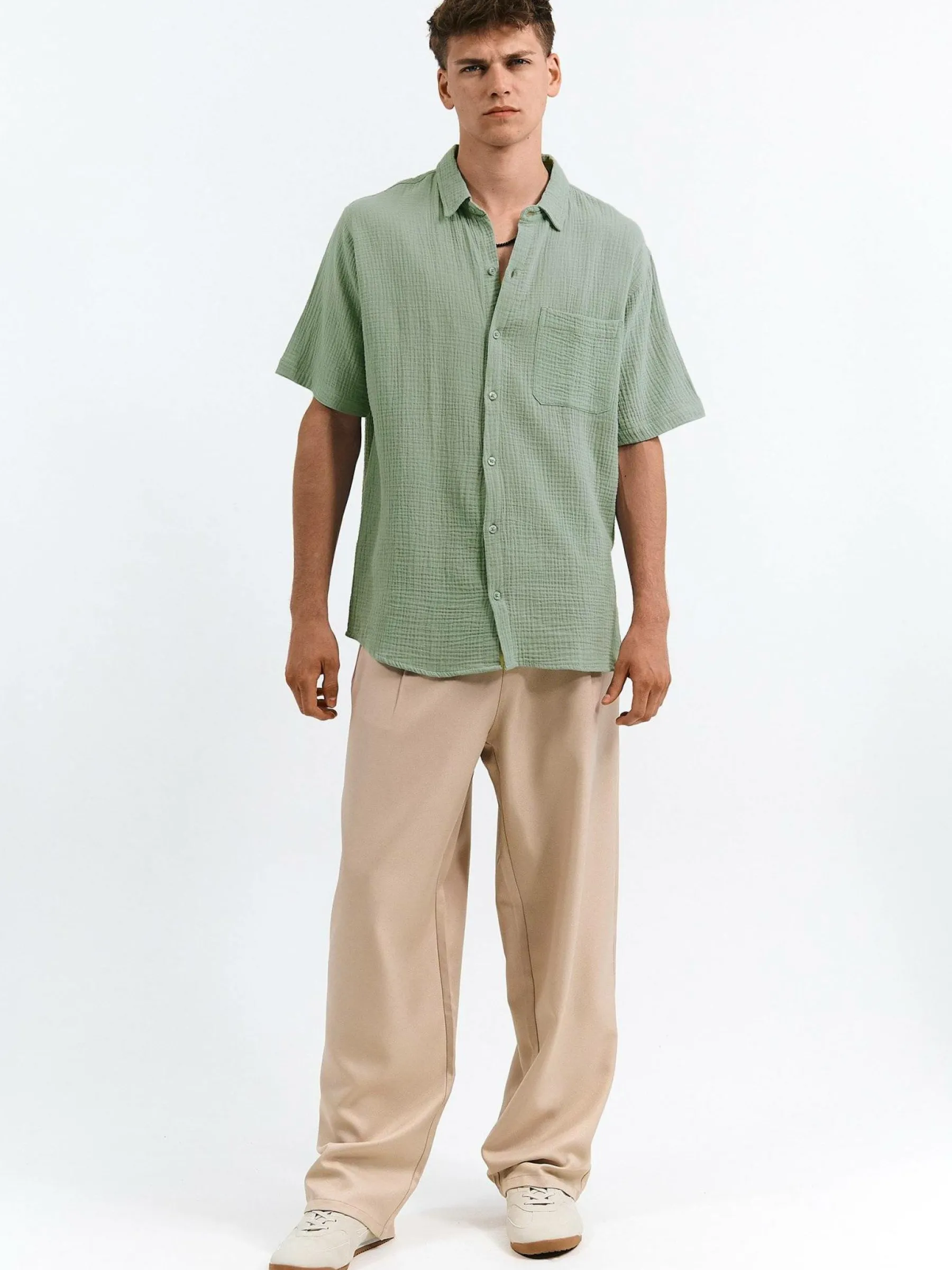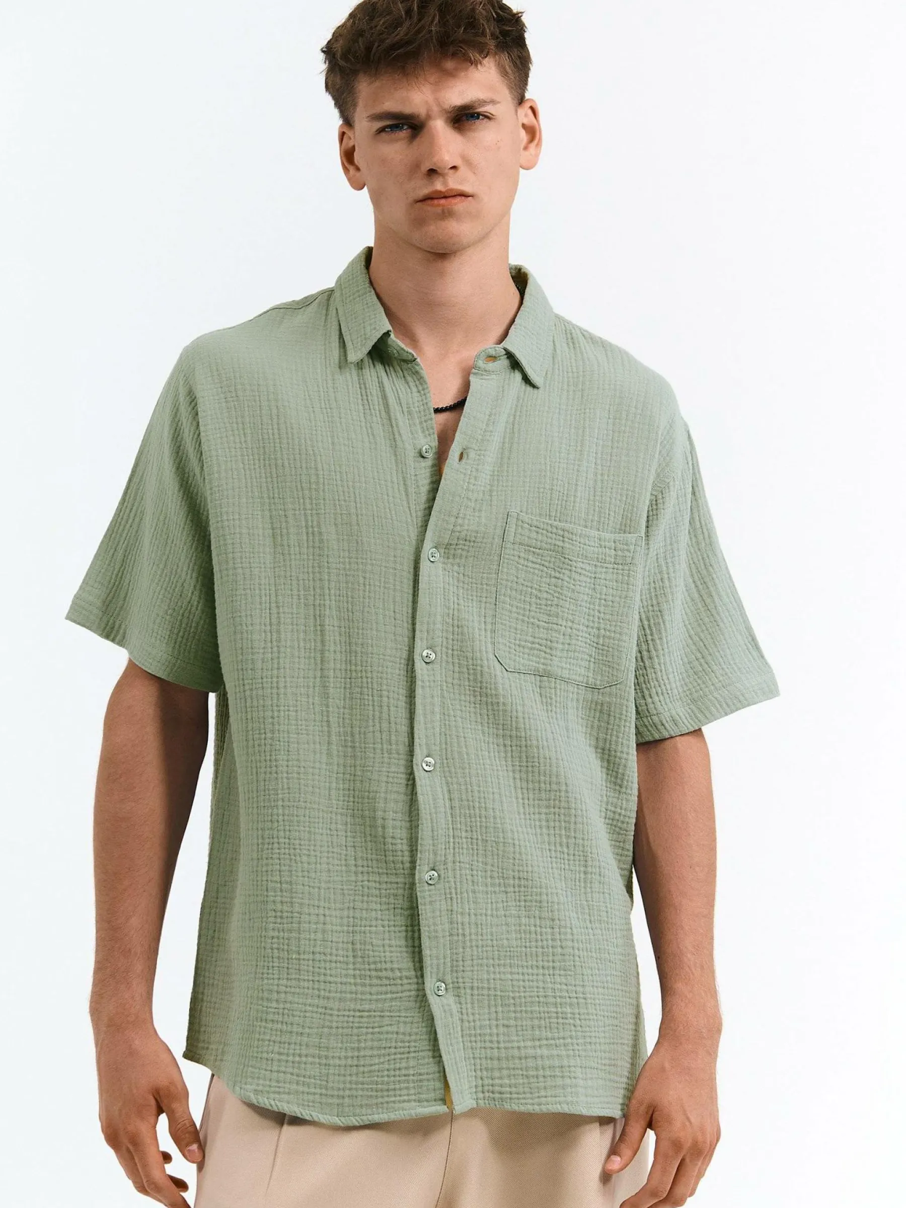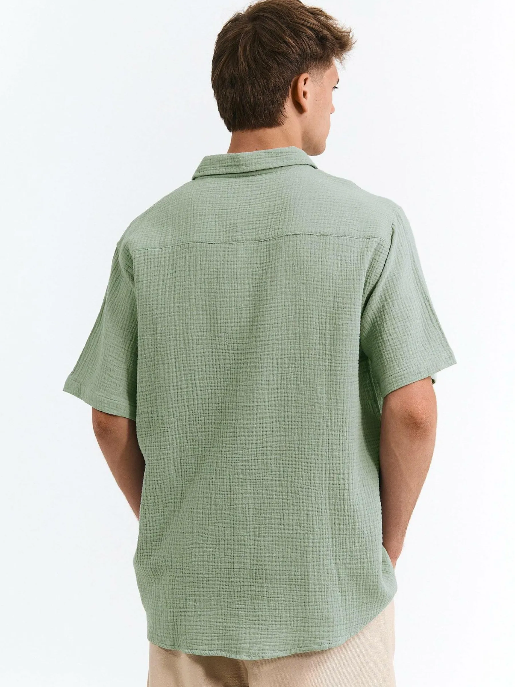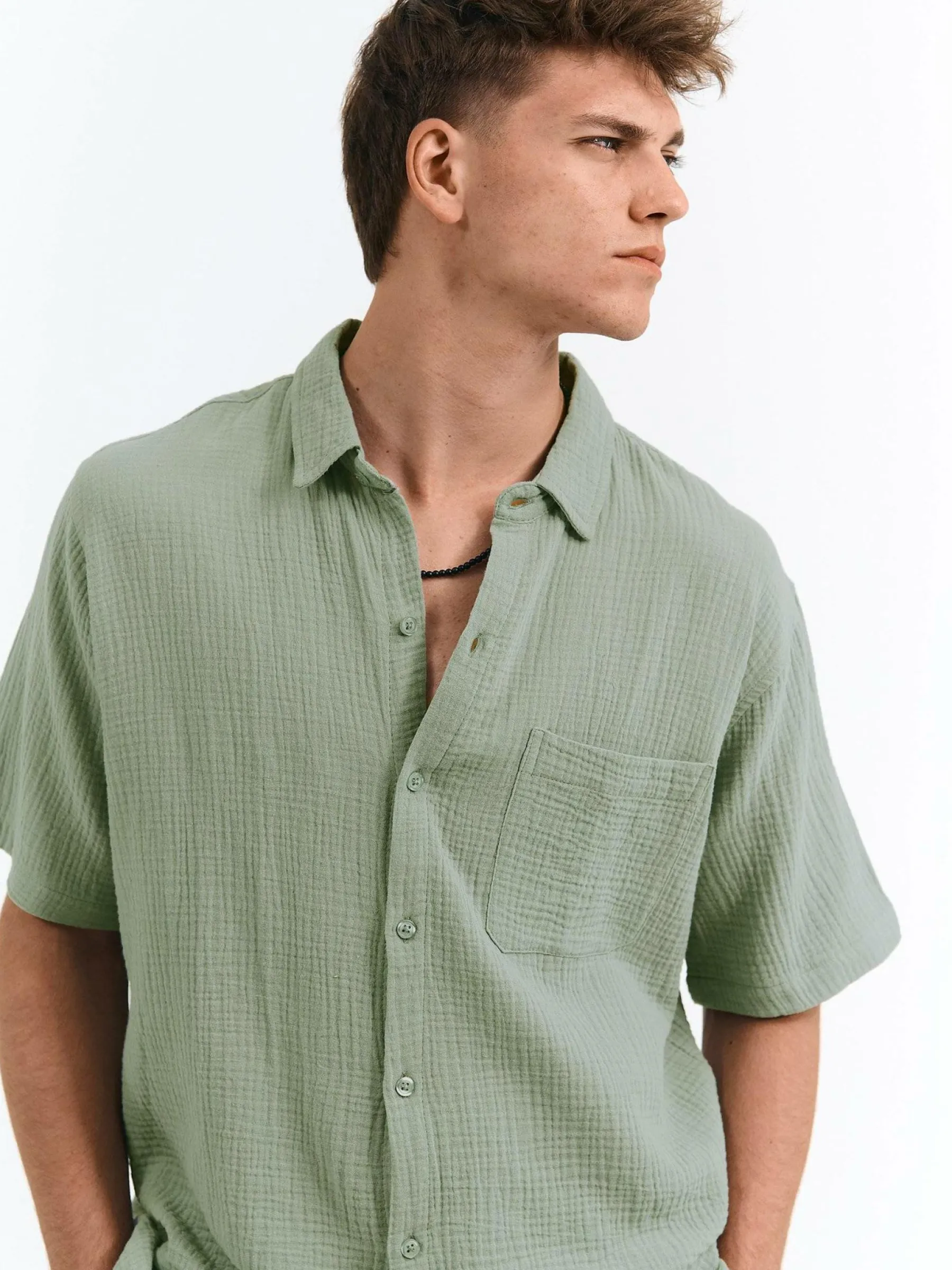 Kolor: zielonyKrój: podstawowyTyp: koszulaRekaw: krótki rękawPattern style: pojedynczy kolor, strukturowaneDetal: na …