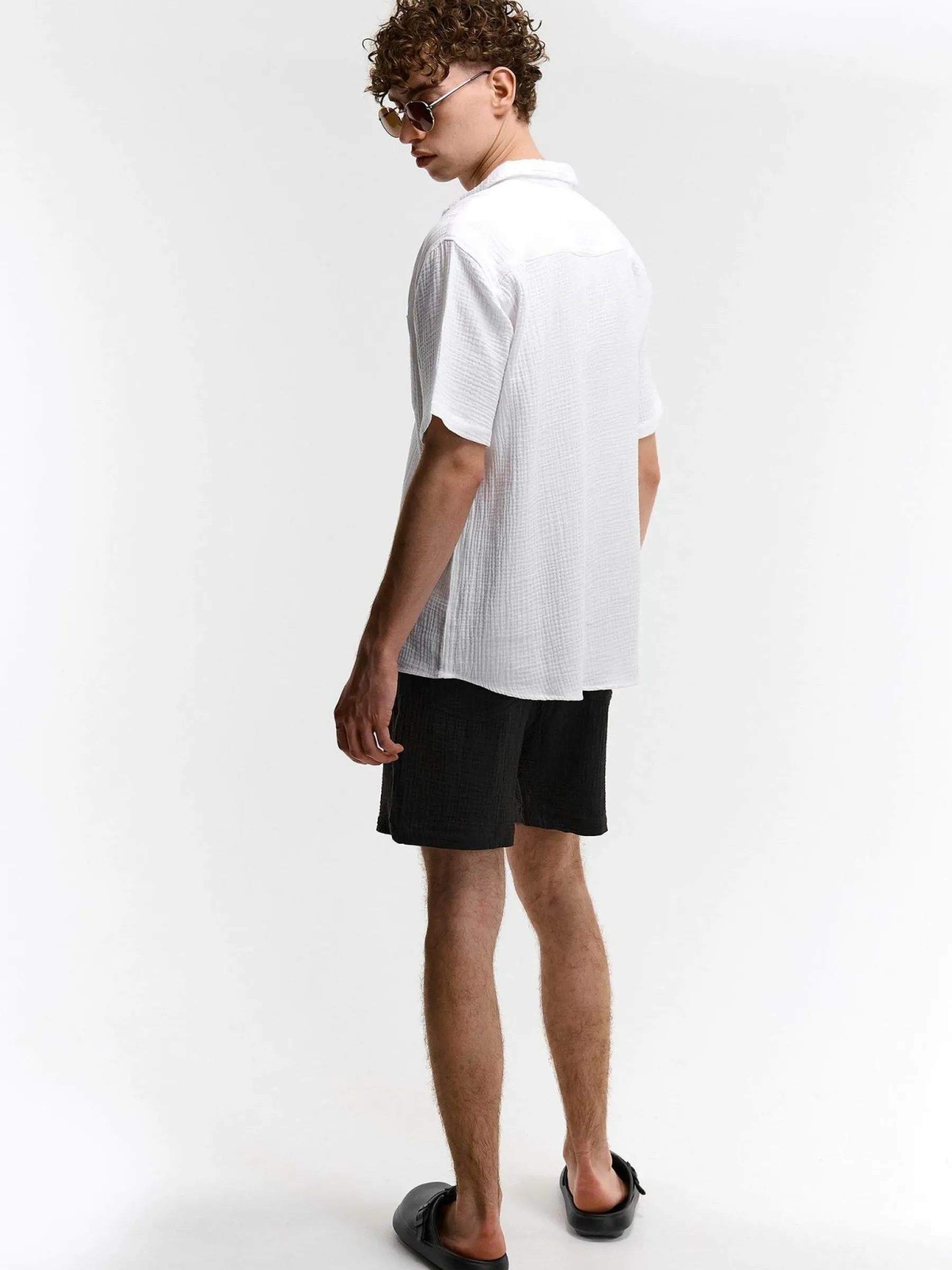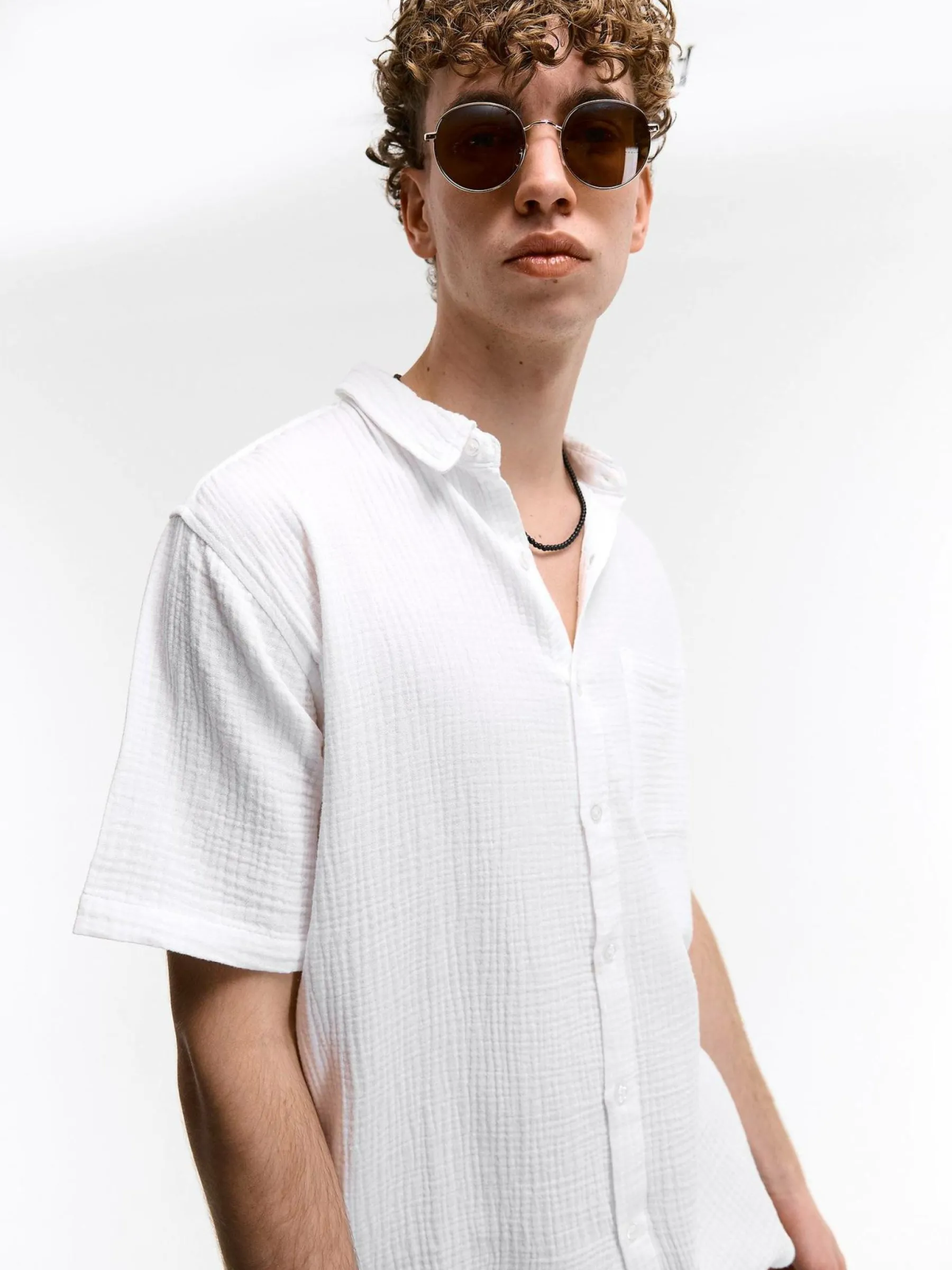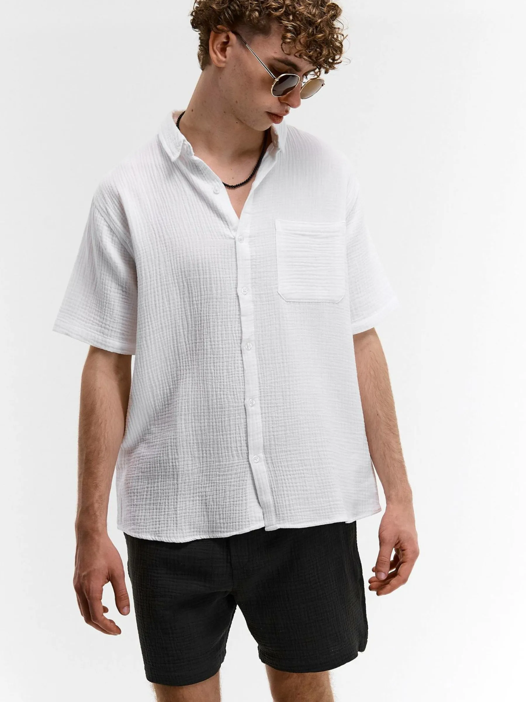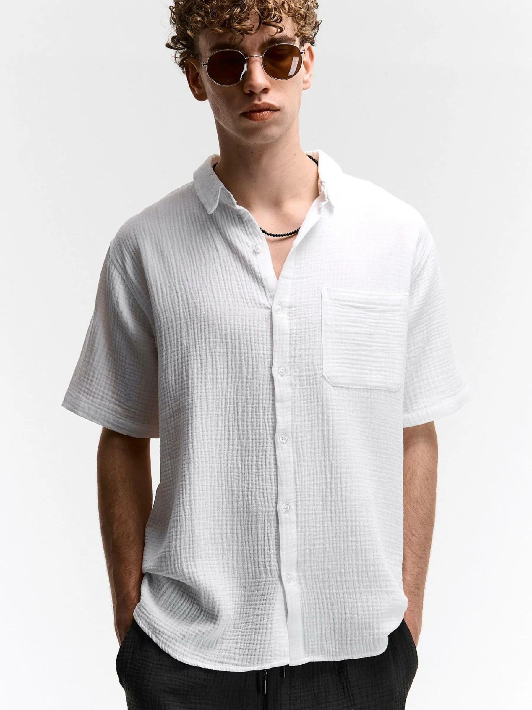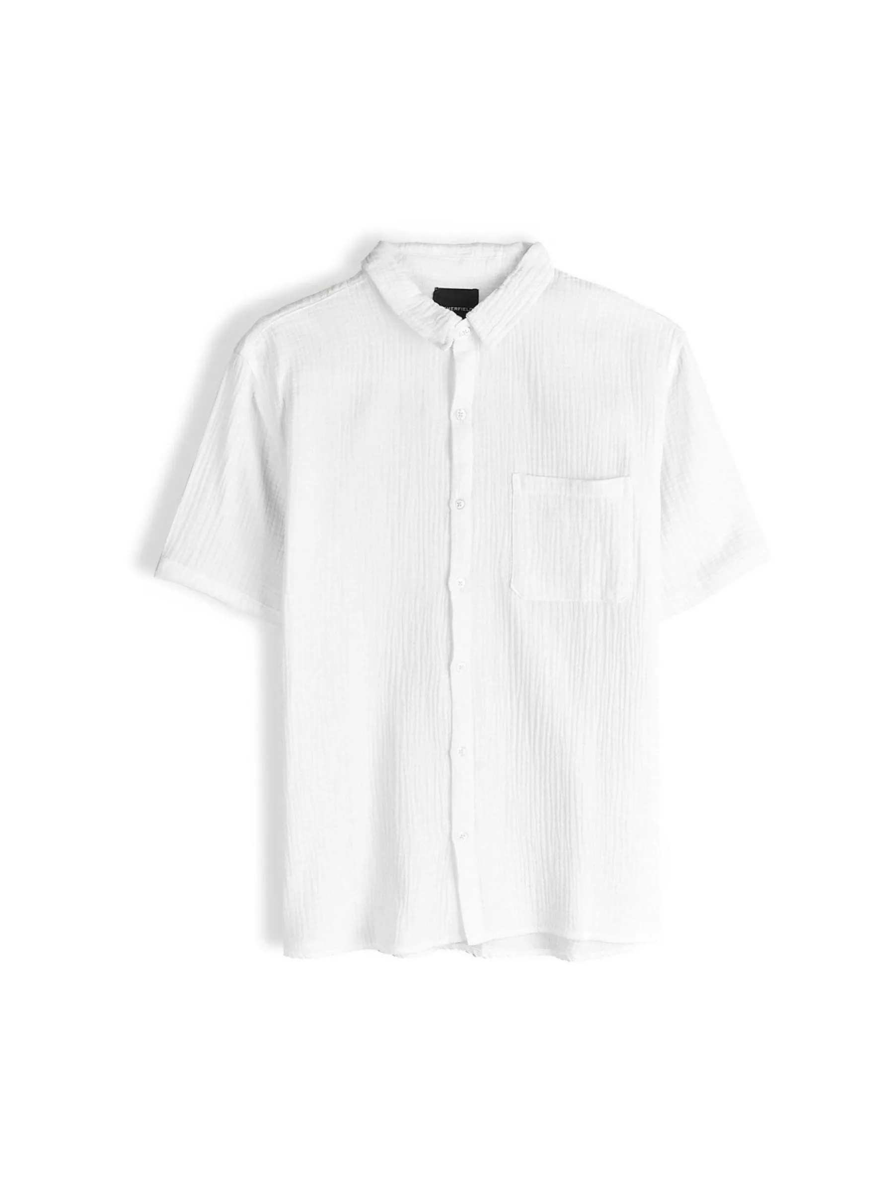 Kolor: białyKrój: podstawowyTyp: koszulaRekaw: krótki rękawPattern style: pojedynczy kolor, strukturowaneDetal: z ki…