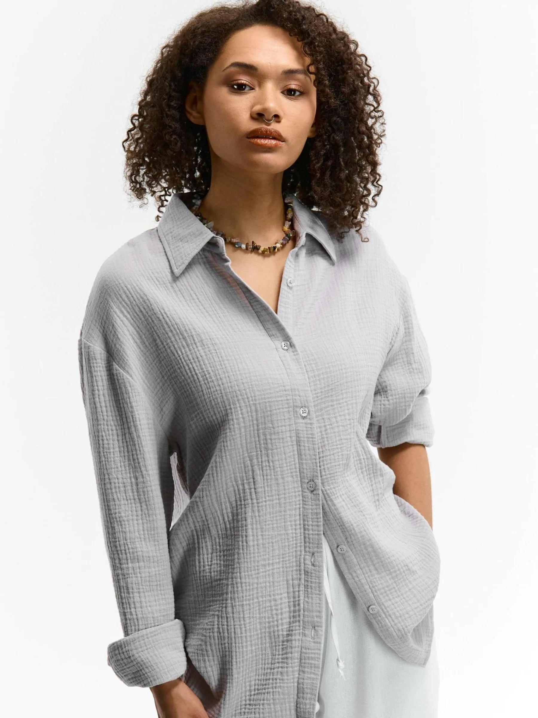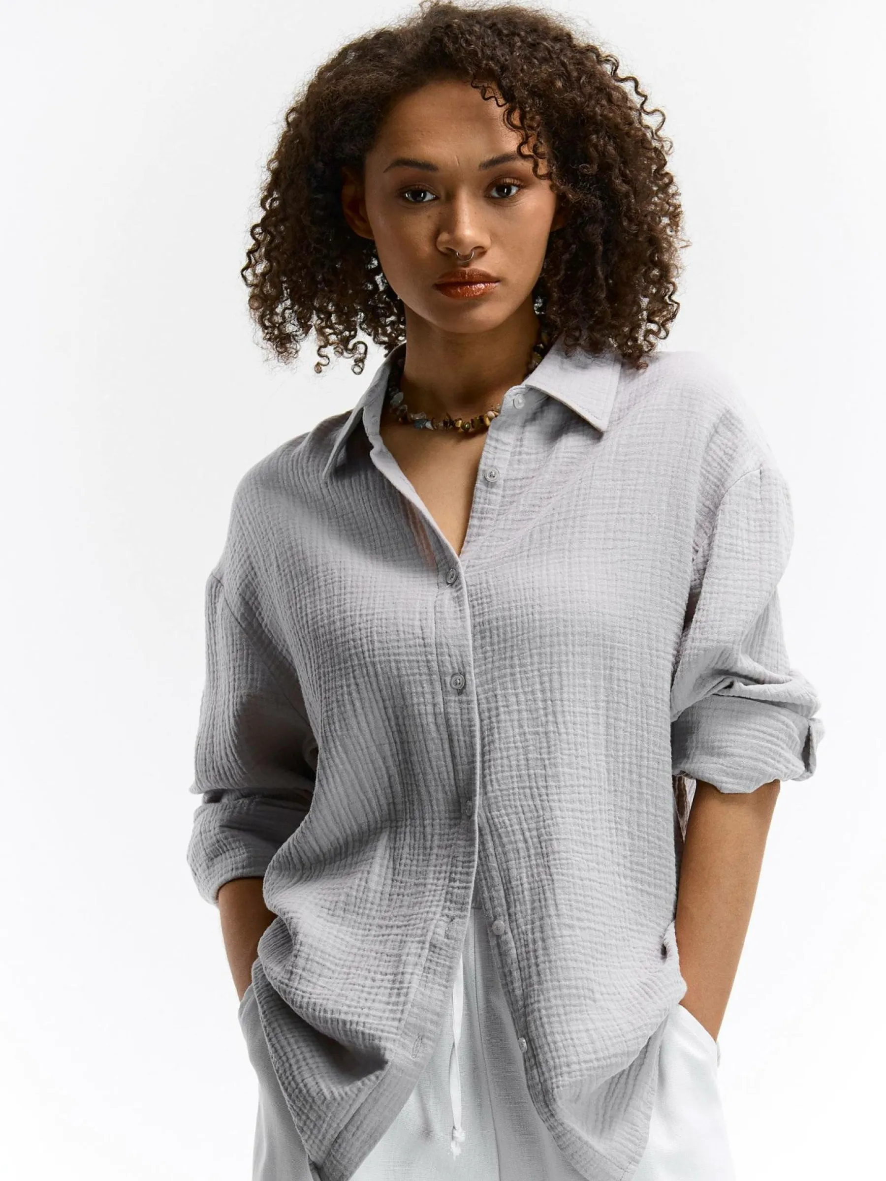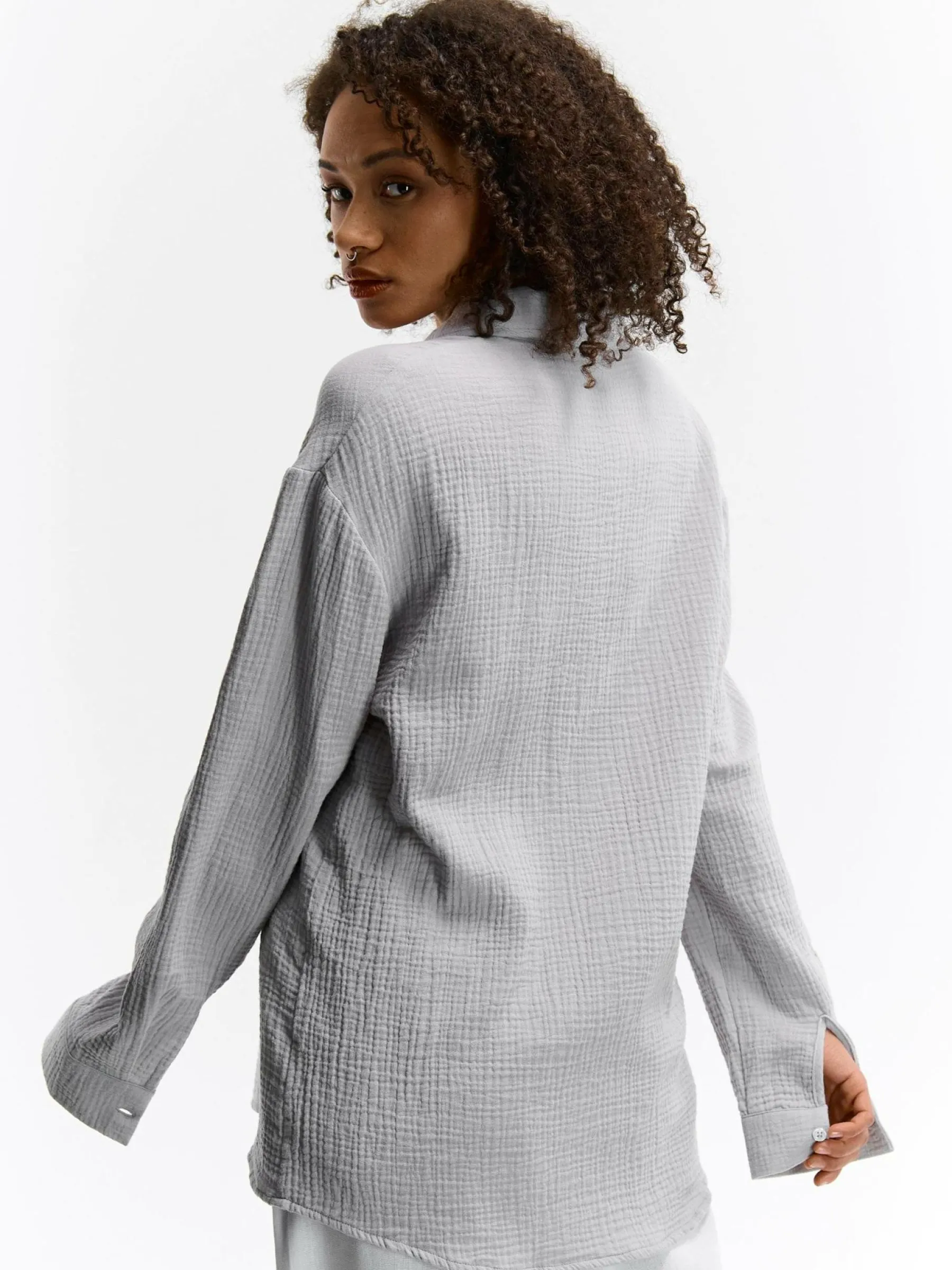Kolor: szaryKrój: podstawowyTyp: koszulaRekaw: długi rękawDługość: krótkiPattern style: pojedynczy kolor, struktu…