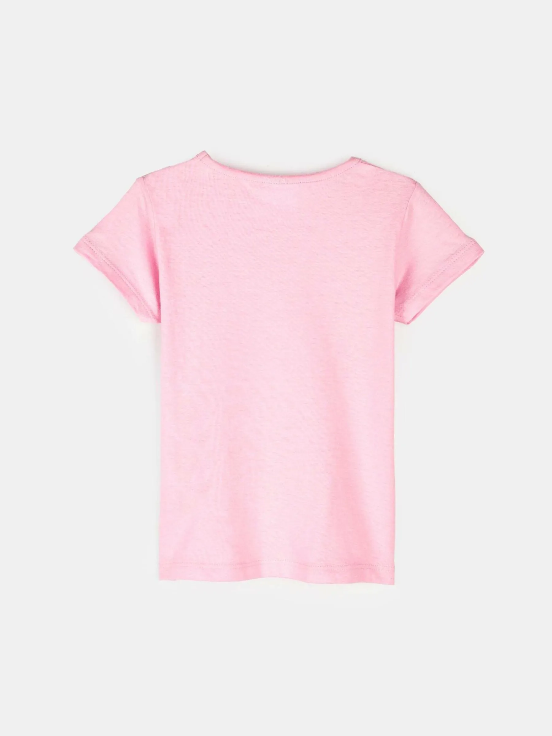 Kolor: różowyKrój: regularTyp: koszulkaRekaw: krótki rękawDługość: krótkiPattern style: z nadrukiemDetal: nad g…