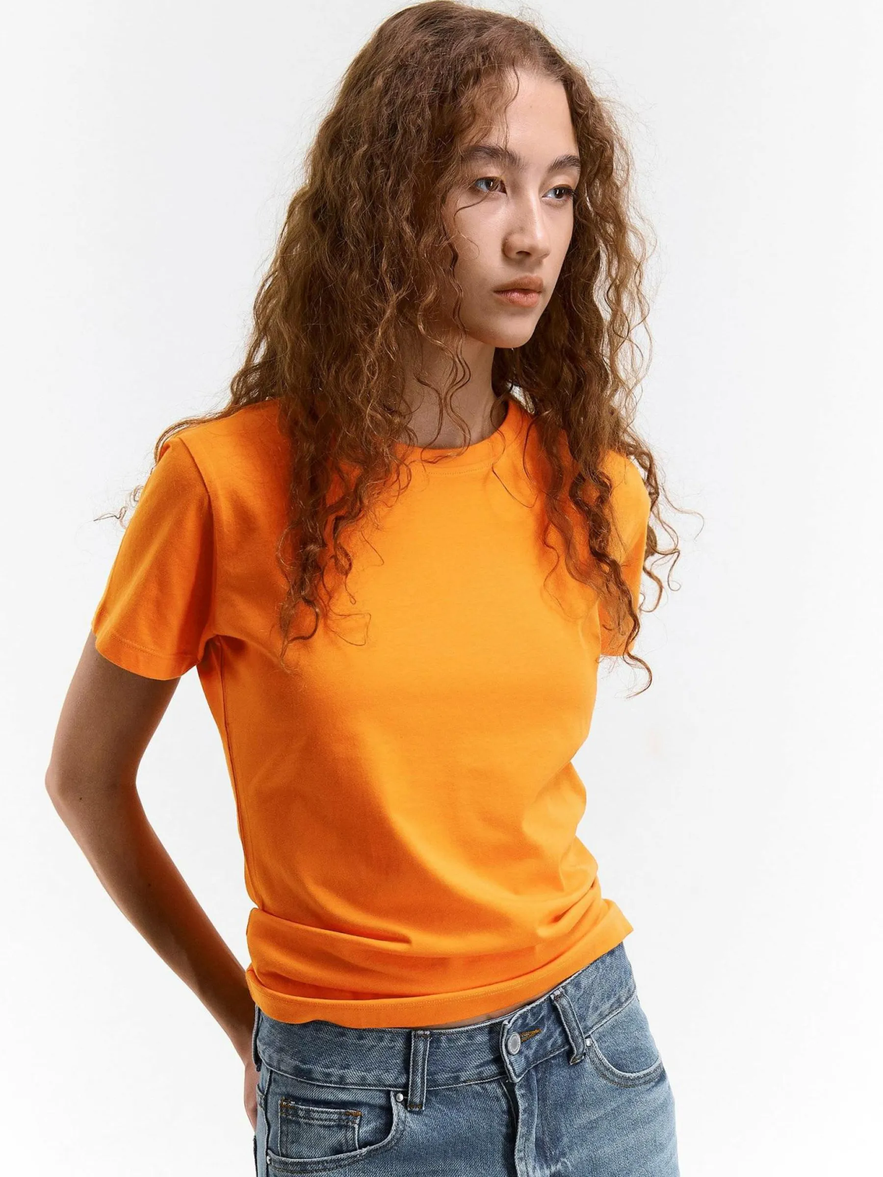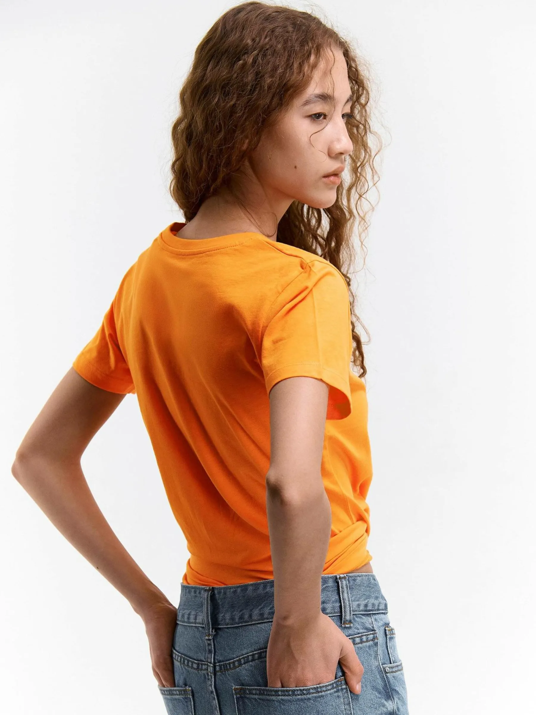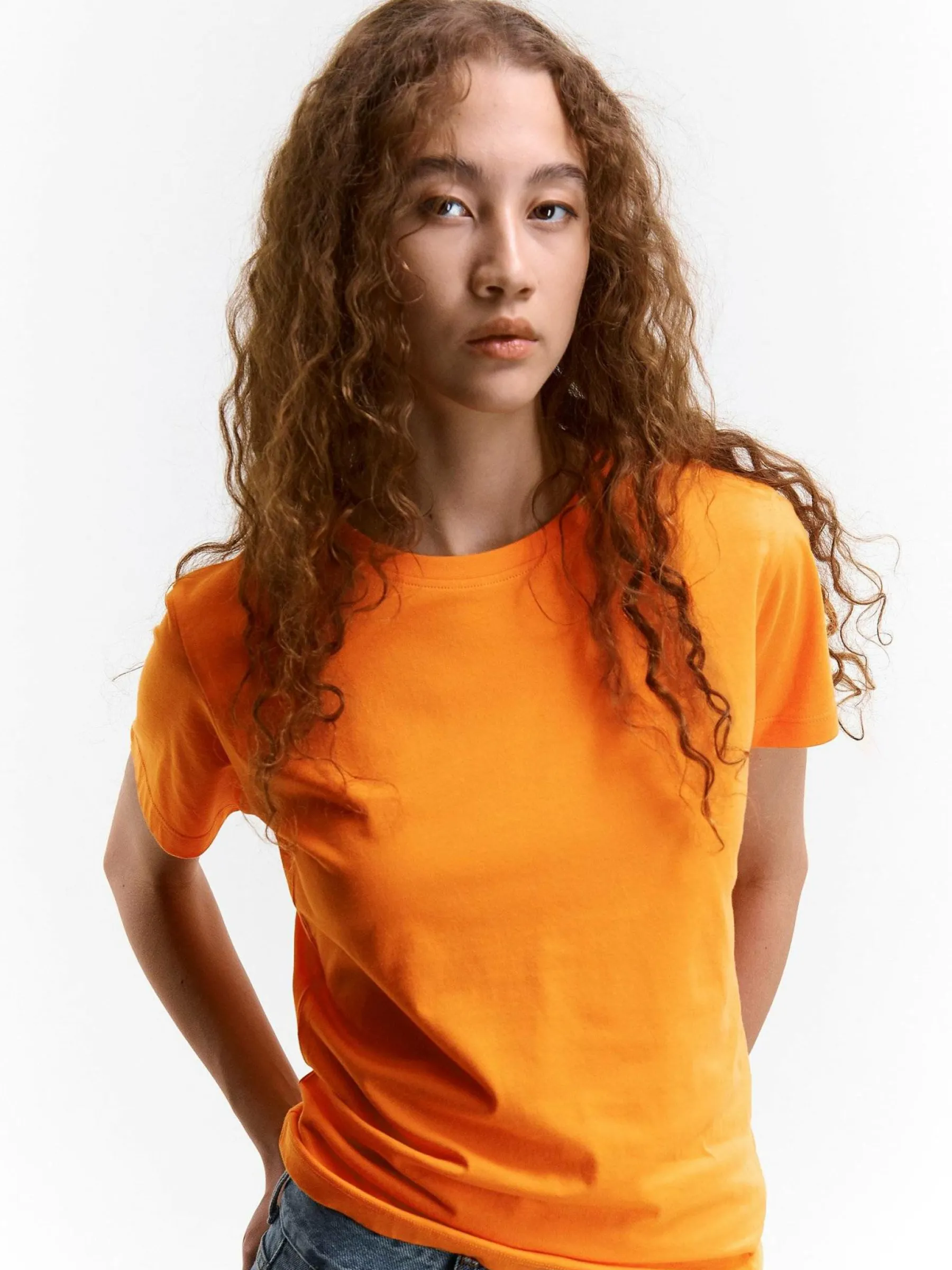 Kolor: pomarańczowyKrój: regularTyp: koszulkaRekaw: krótki rękawDługość: krótkiPattern style: pojedynczy kolorDe…