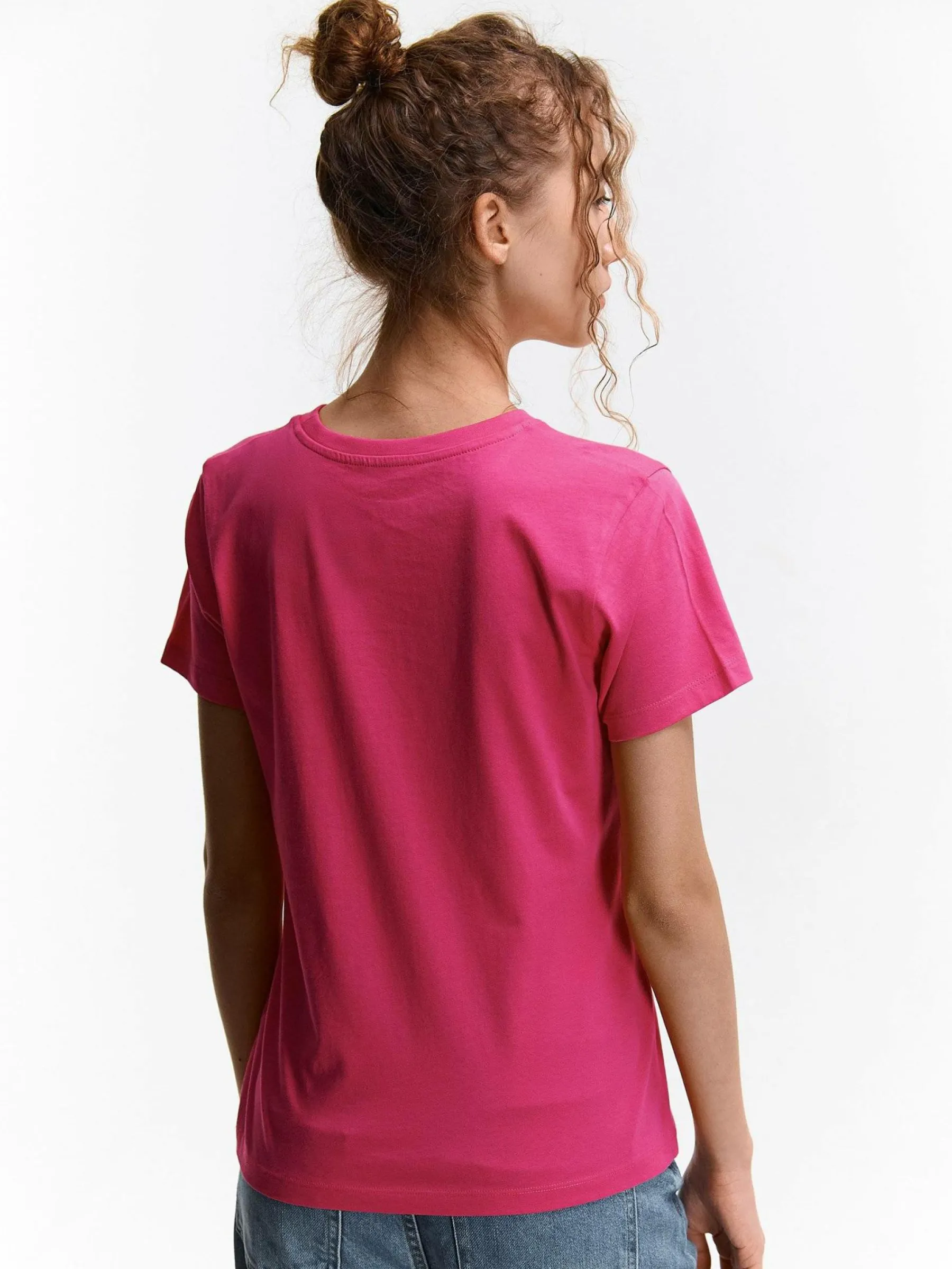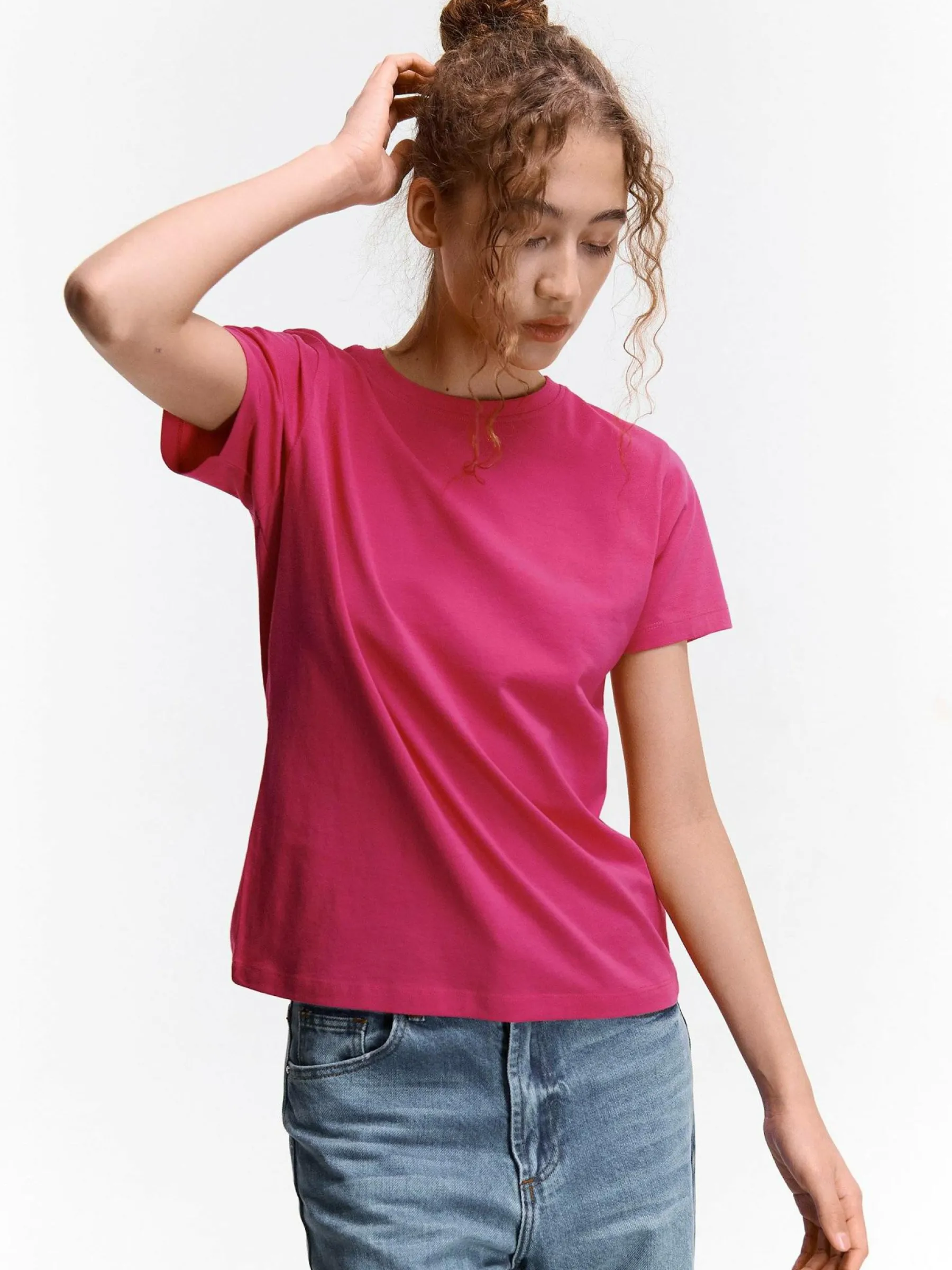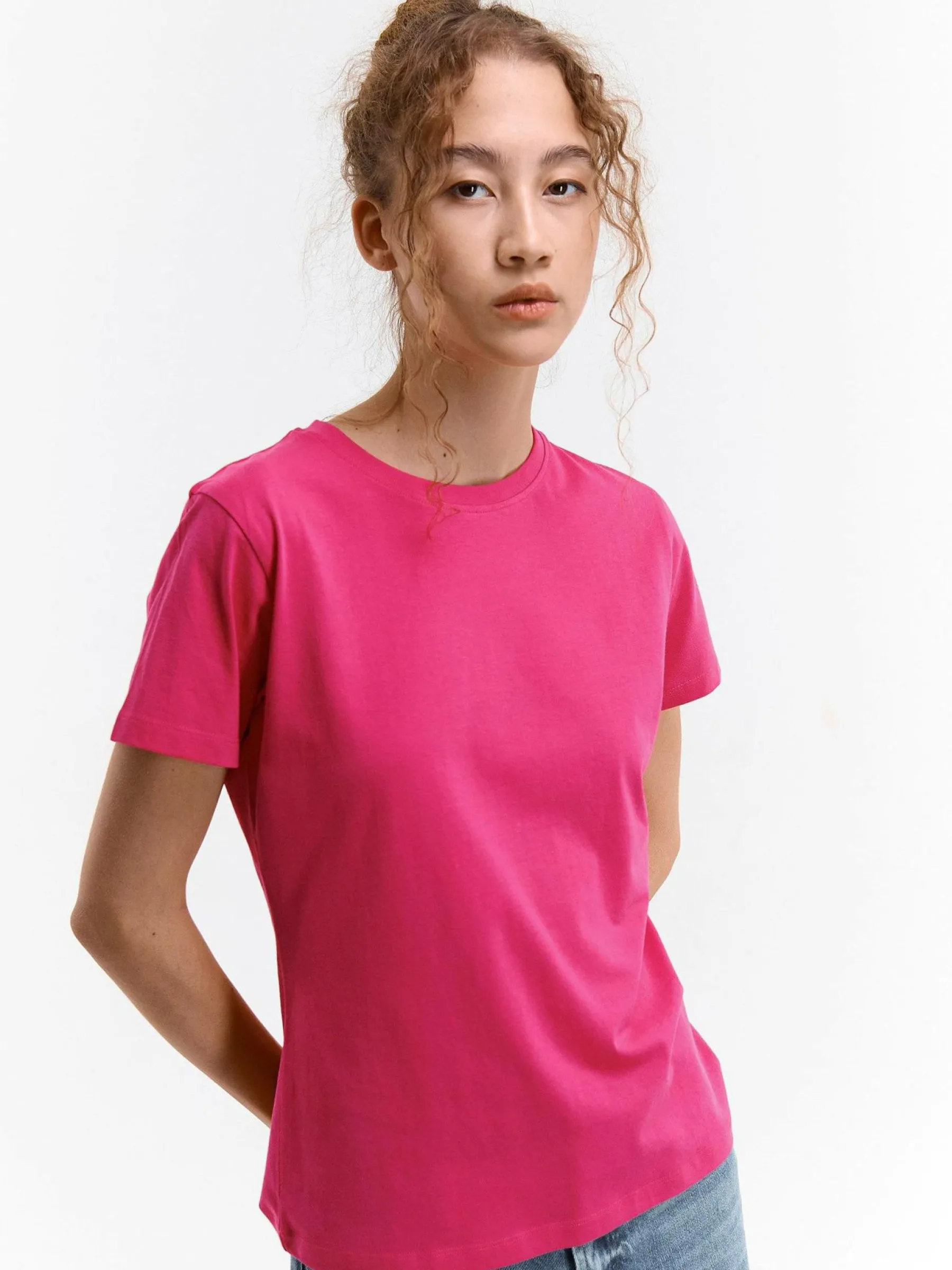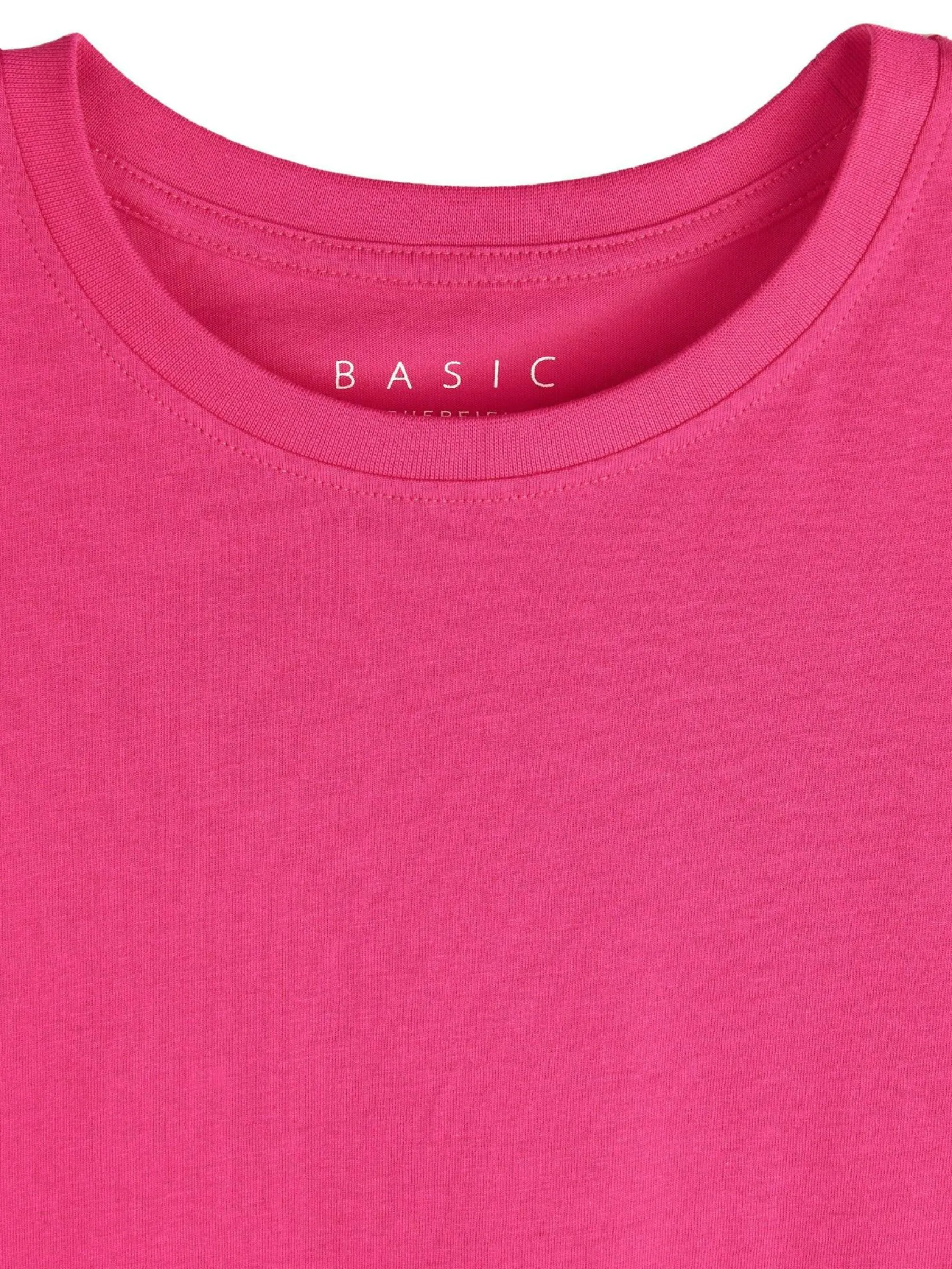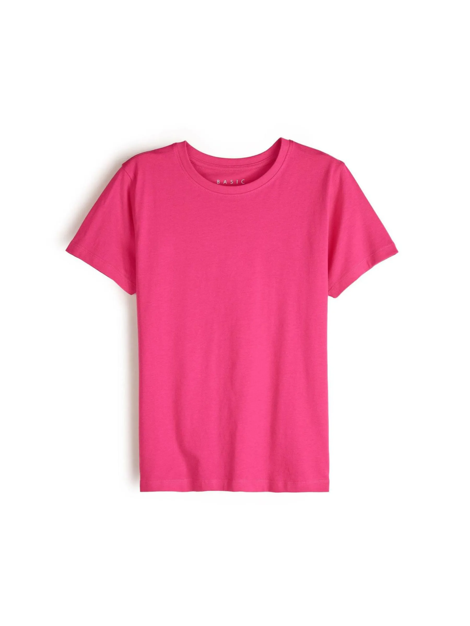 Kolor: różowyKrój: regularTyp: koszulkaRekaw: krótki rękawDługość: krótkiPattern style: pojedynczy kolorDetal: …