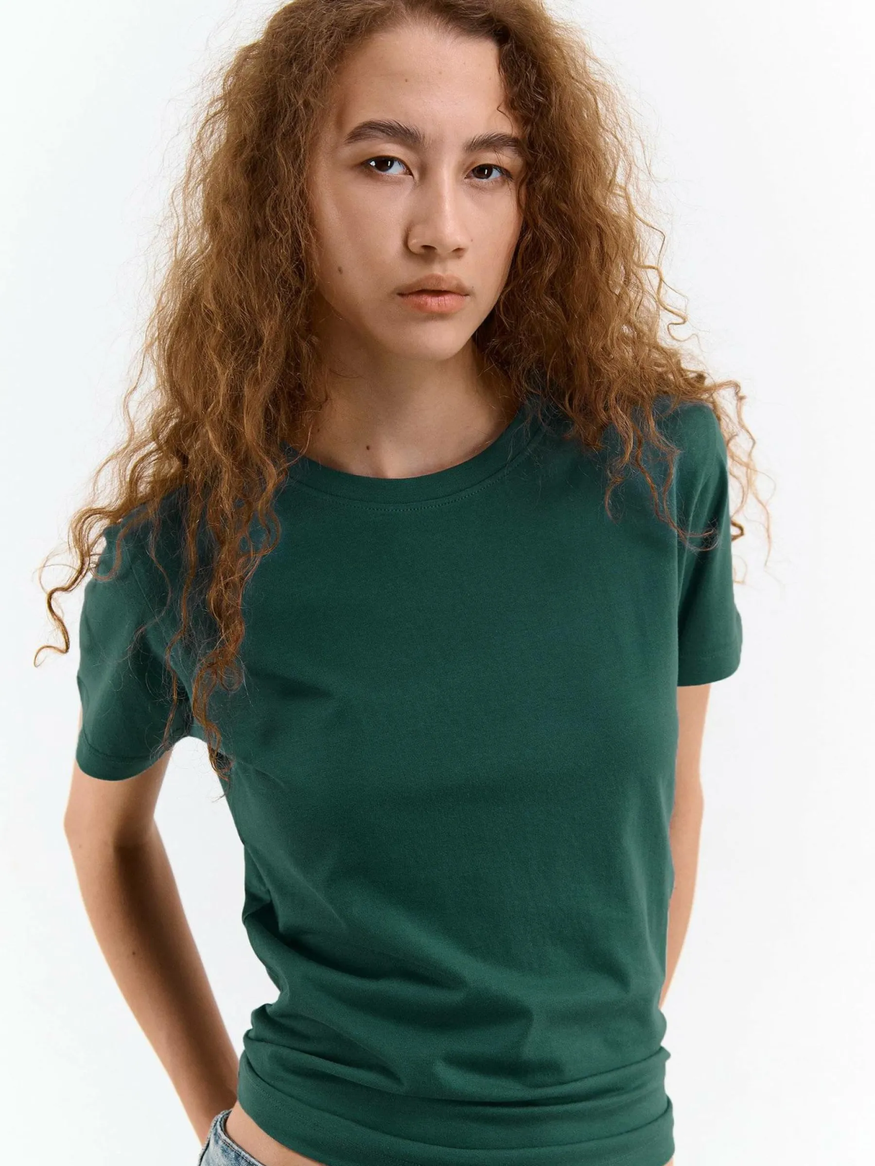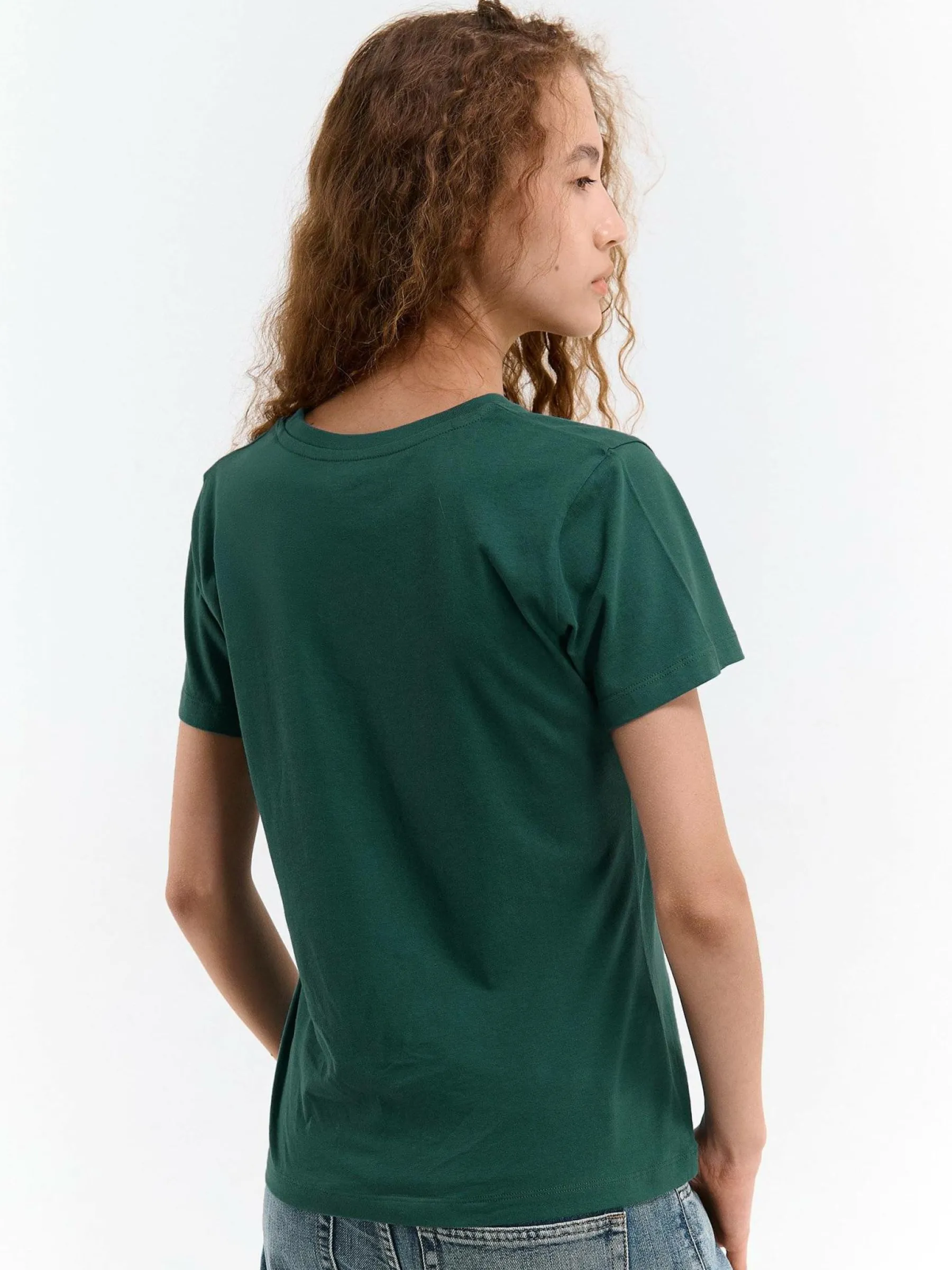 Kolor: zielonyKrój: regularTyp: koszulkaRekaw: krótki rękawDługość: krótkiPattern style: pojedynczy kolorDetal: n…