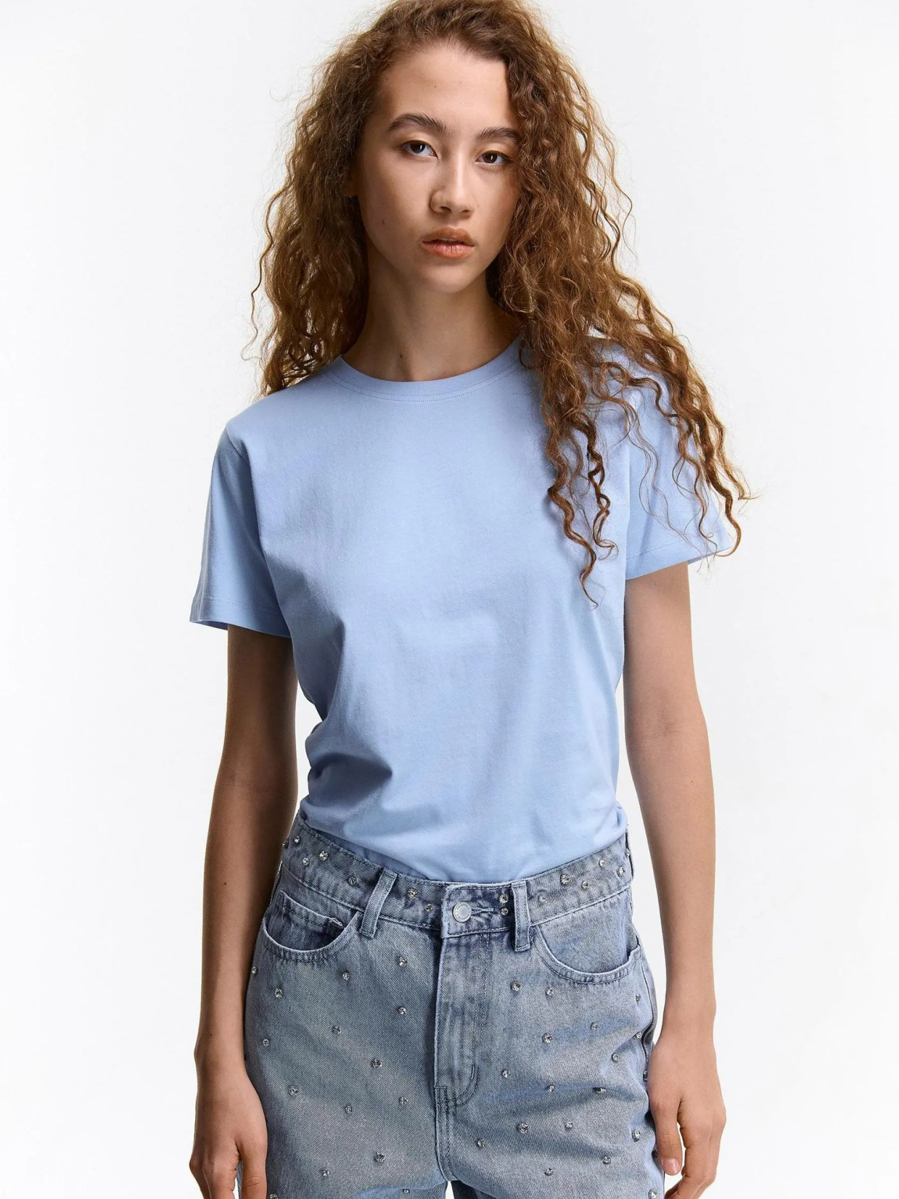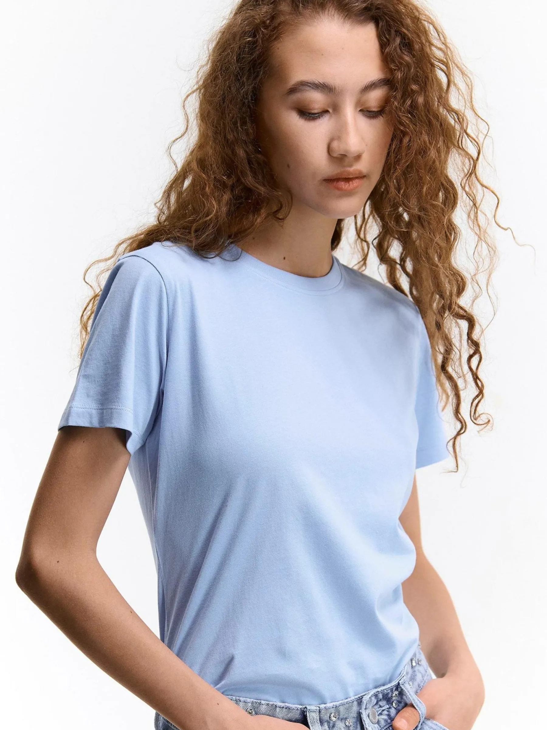 Kolor: niebieskiKrój: regularTyp: koszulkaRekaw: krótki rękawDługość: krótkiPattern style: pojedynczy kolorDetal:…