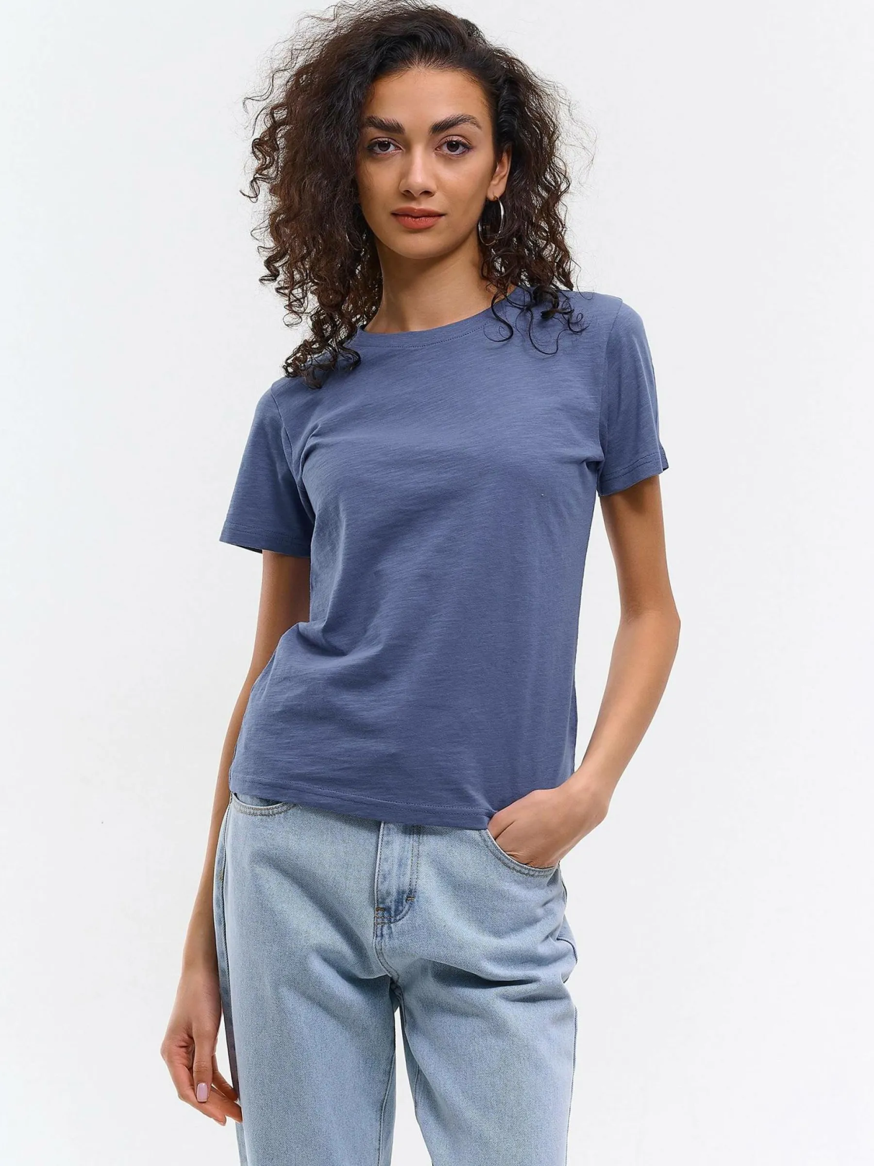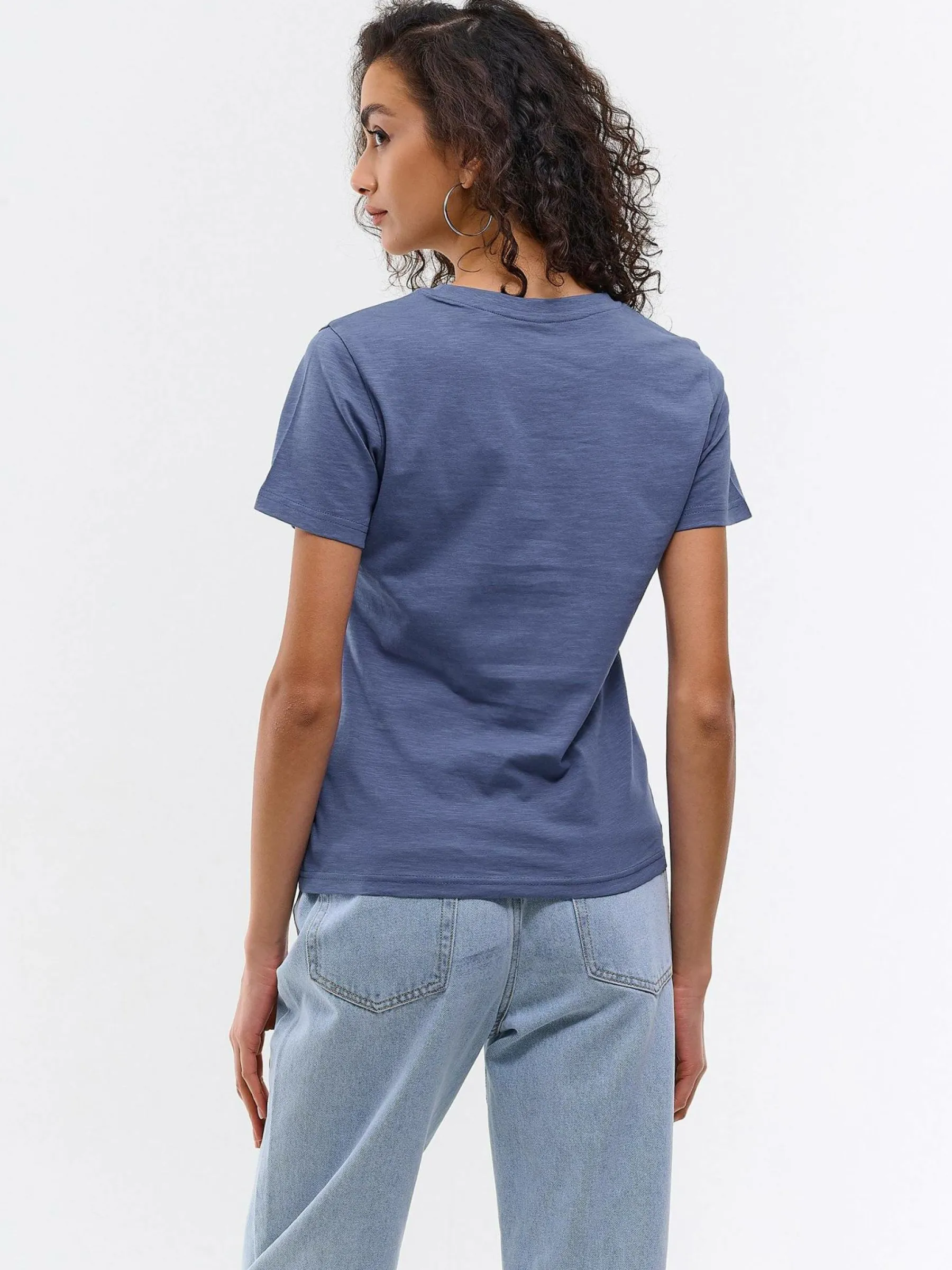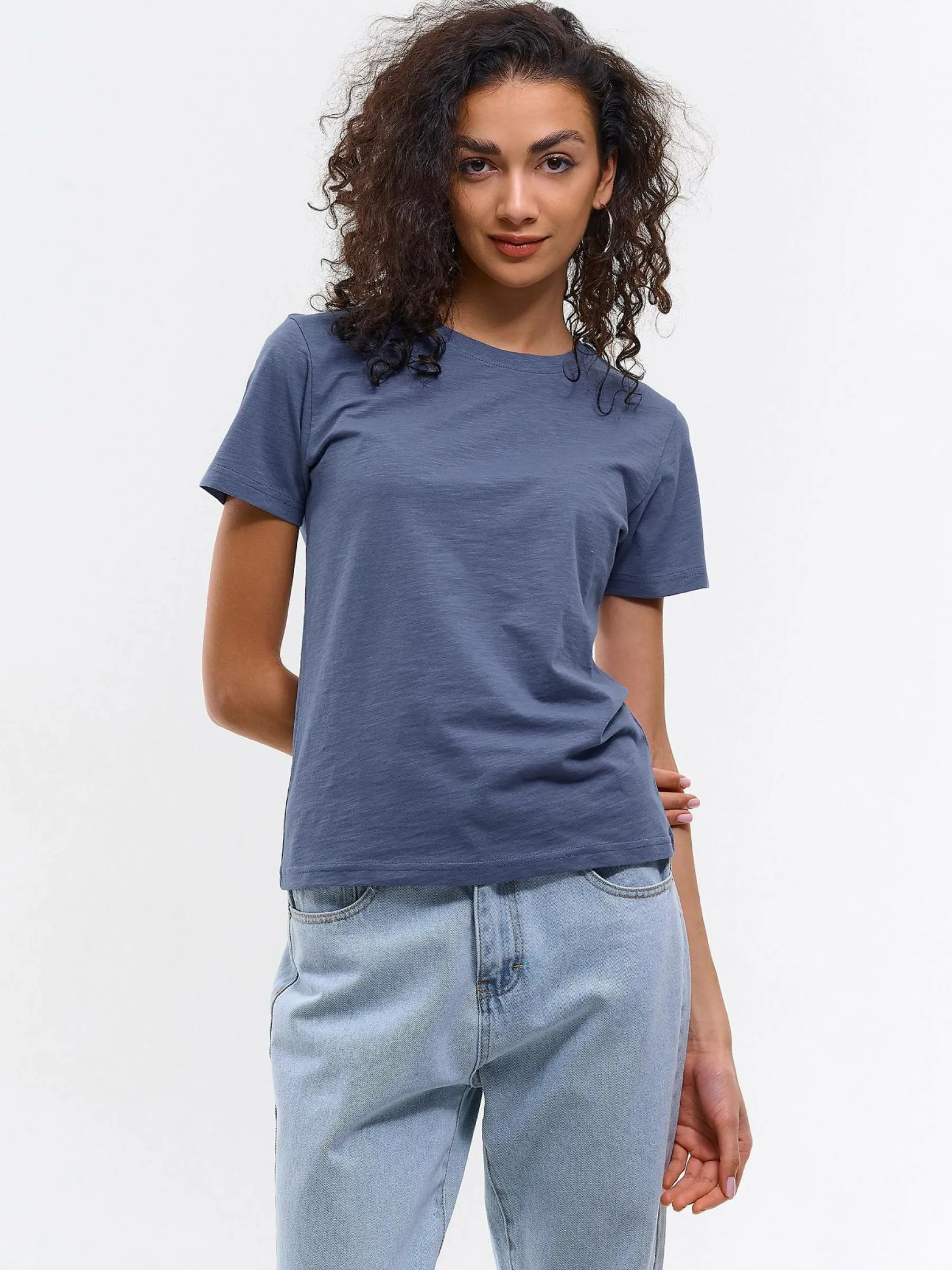 Kolor: niebieskiKrój: podstawowyTyp: koszulkaRekaw: krótki rękawDługość: krótkiPattern style: pojedynczy kolorDet…