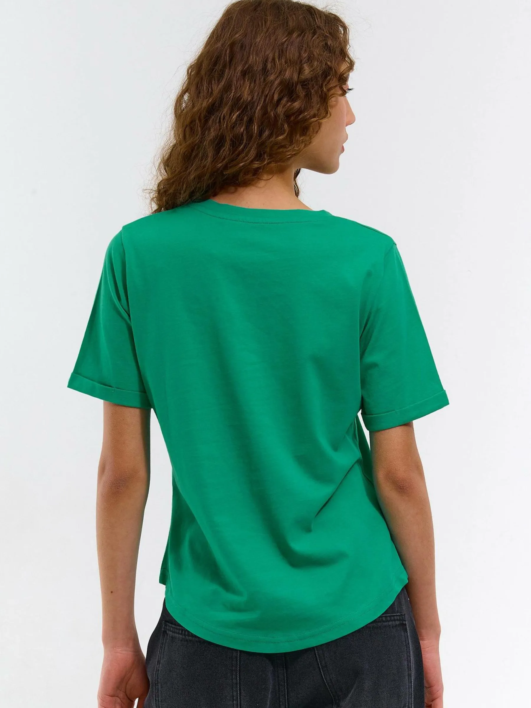 Kolor: zielonyKrój: regularTyp: koszulkaRekaw: krótki rękawDługość: dlugie, krótkiPattern style: pojedynczy kolor…