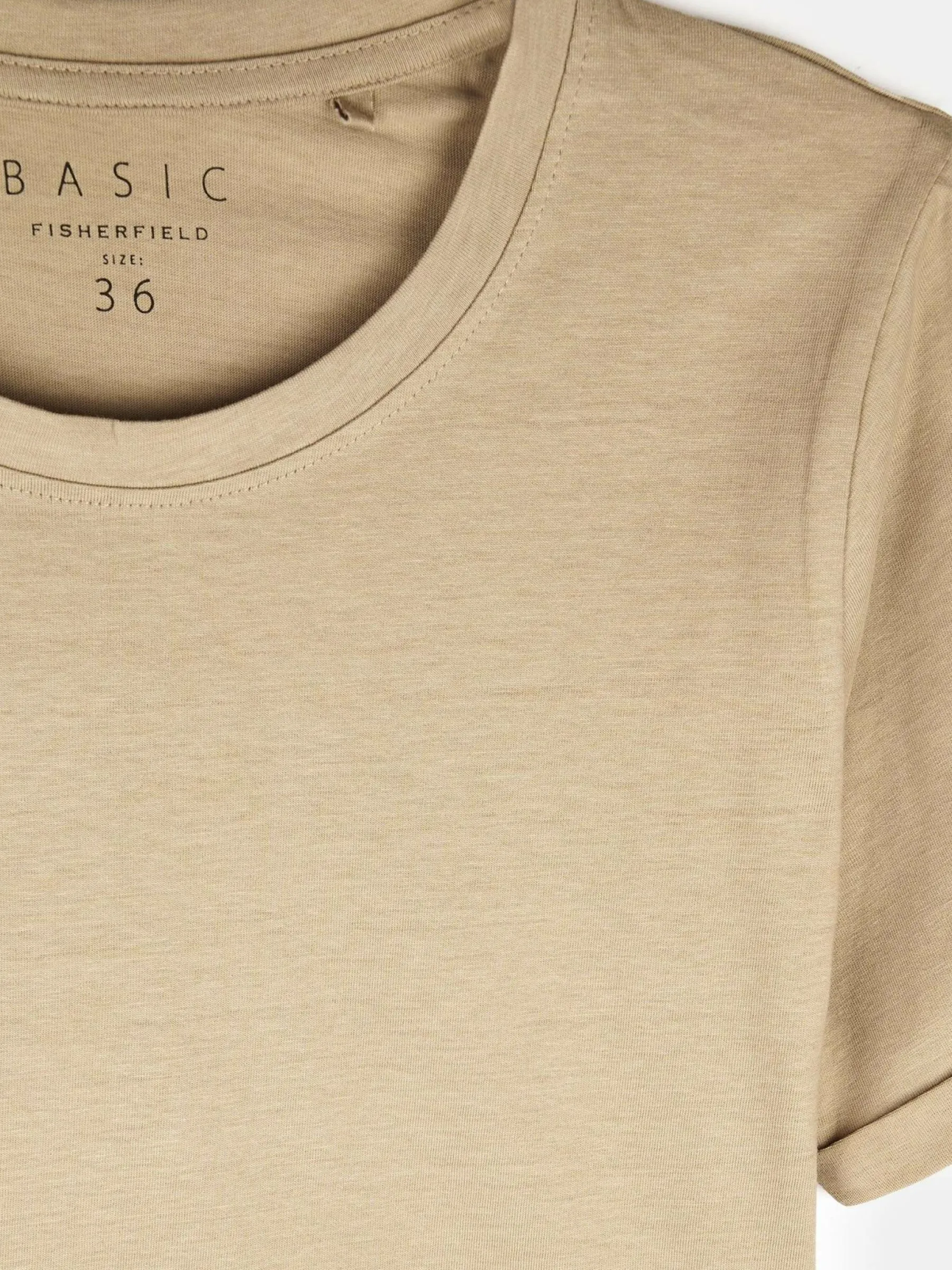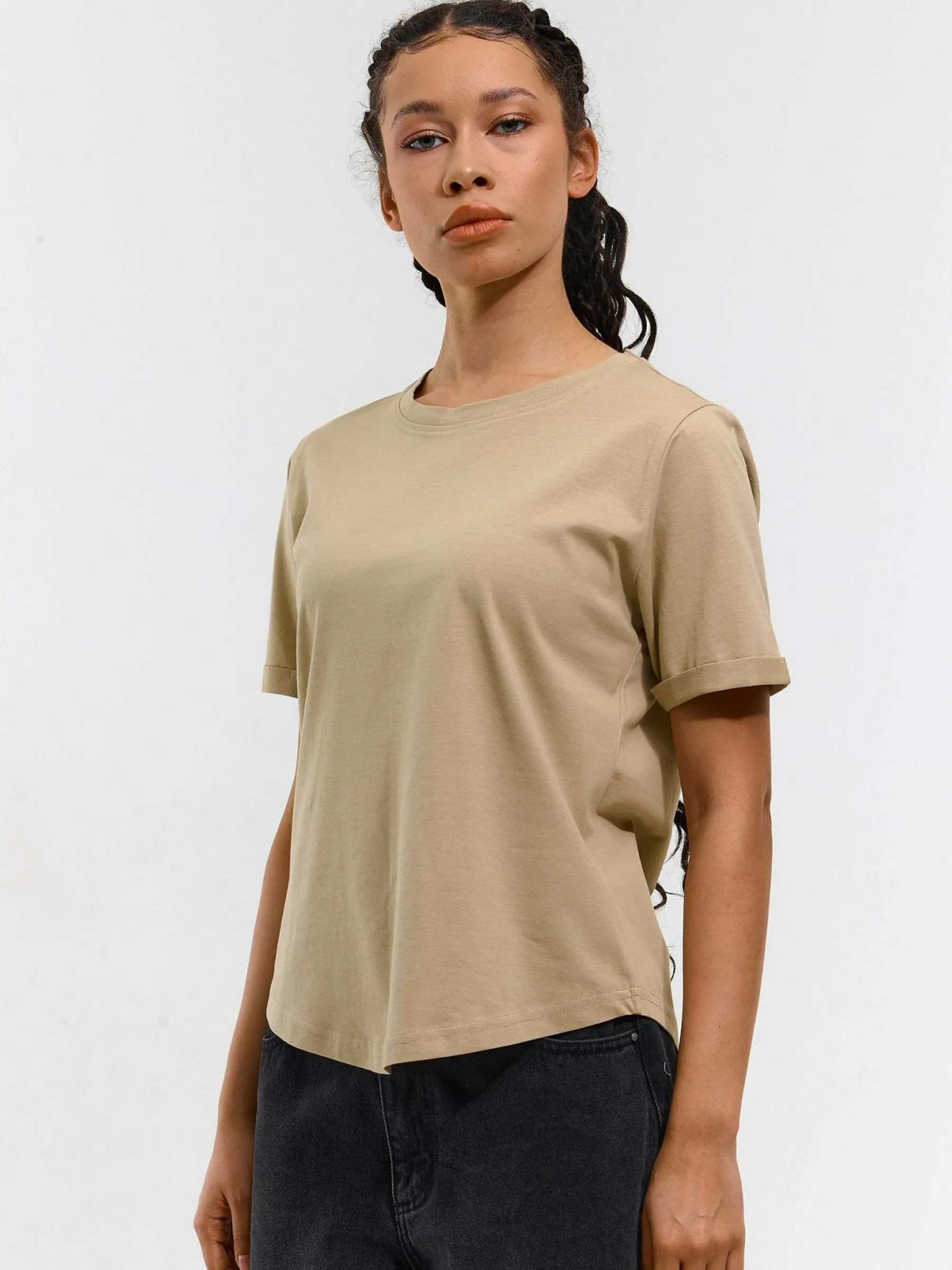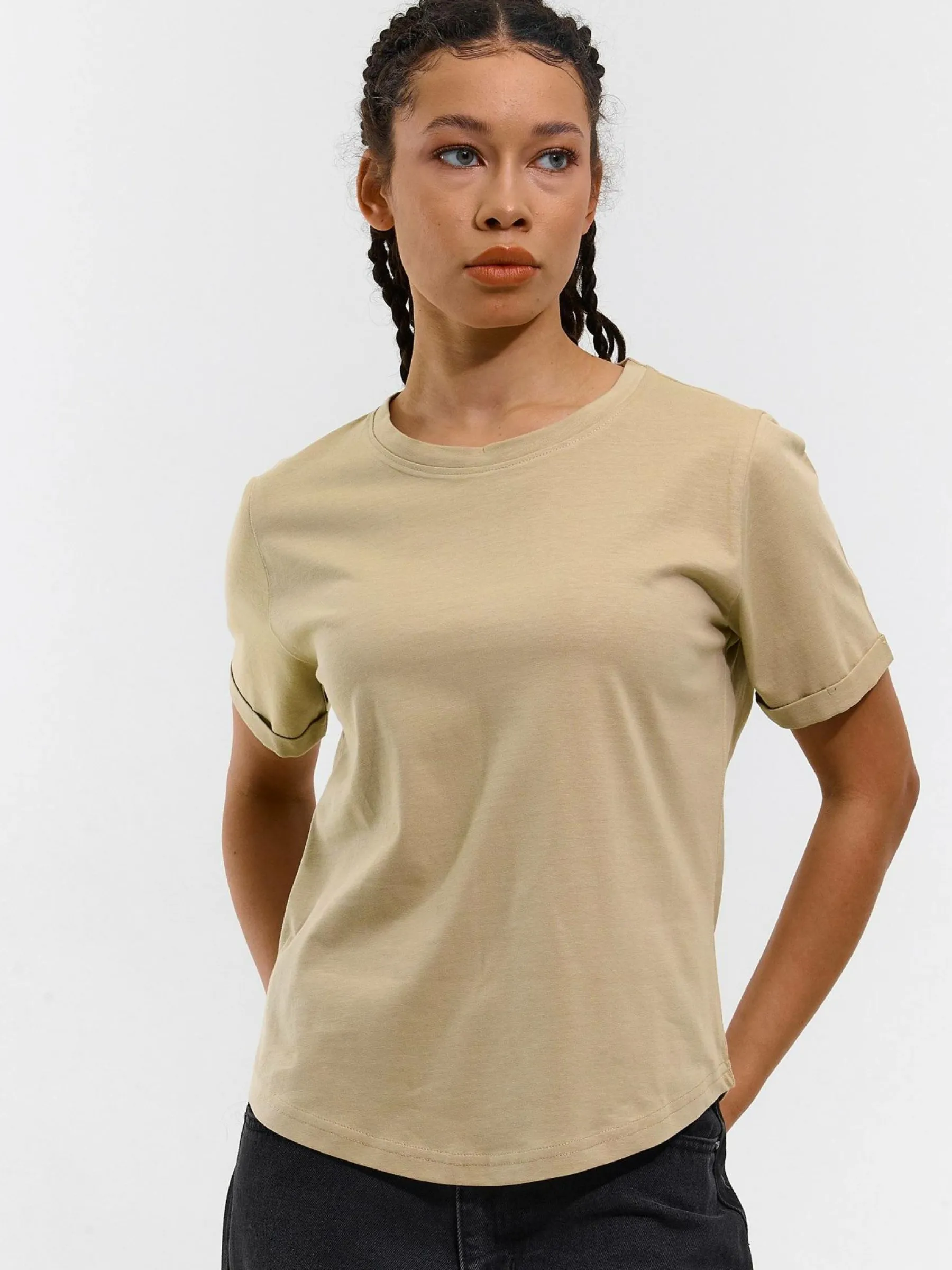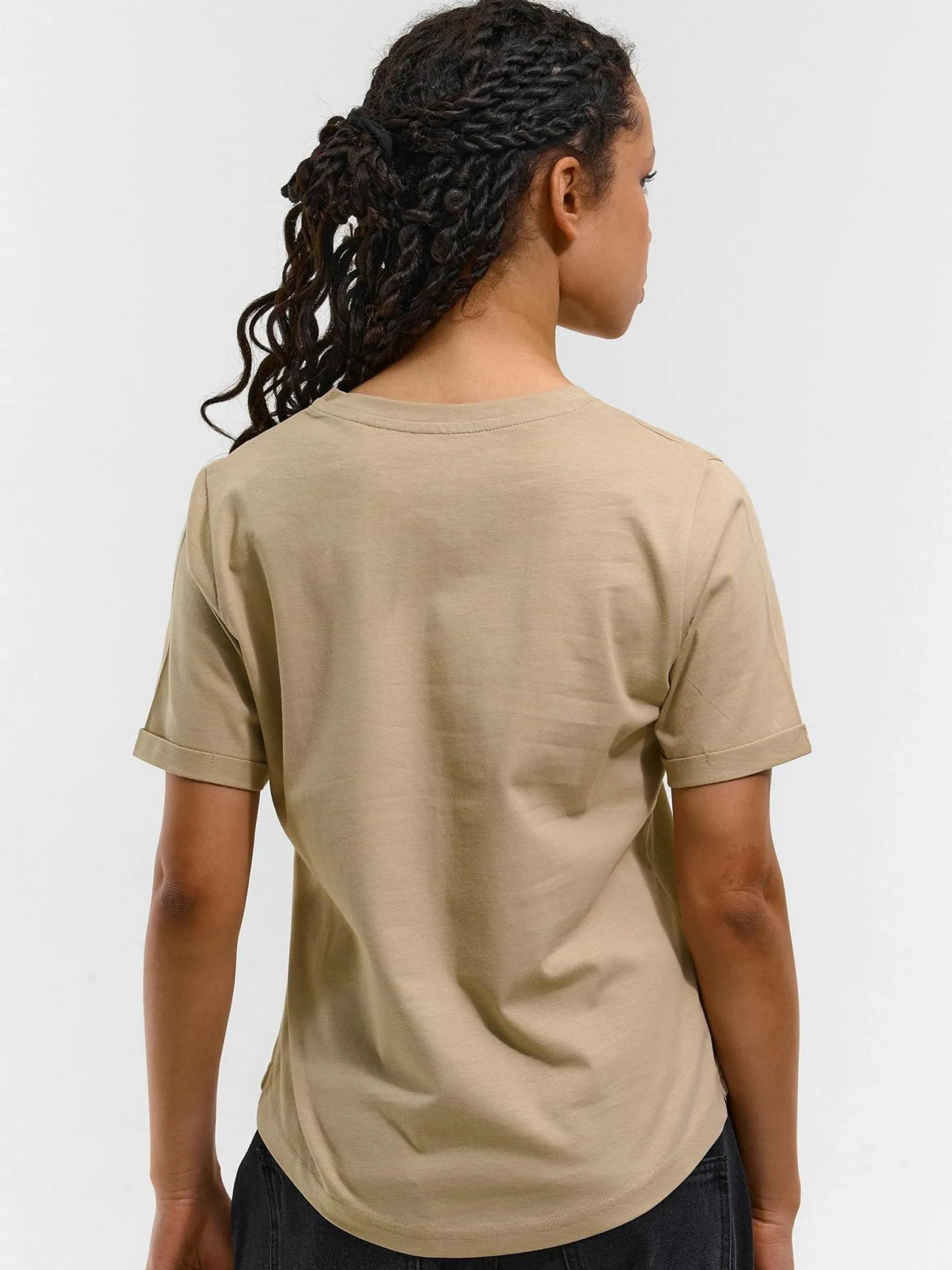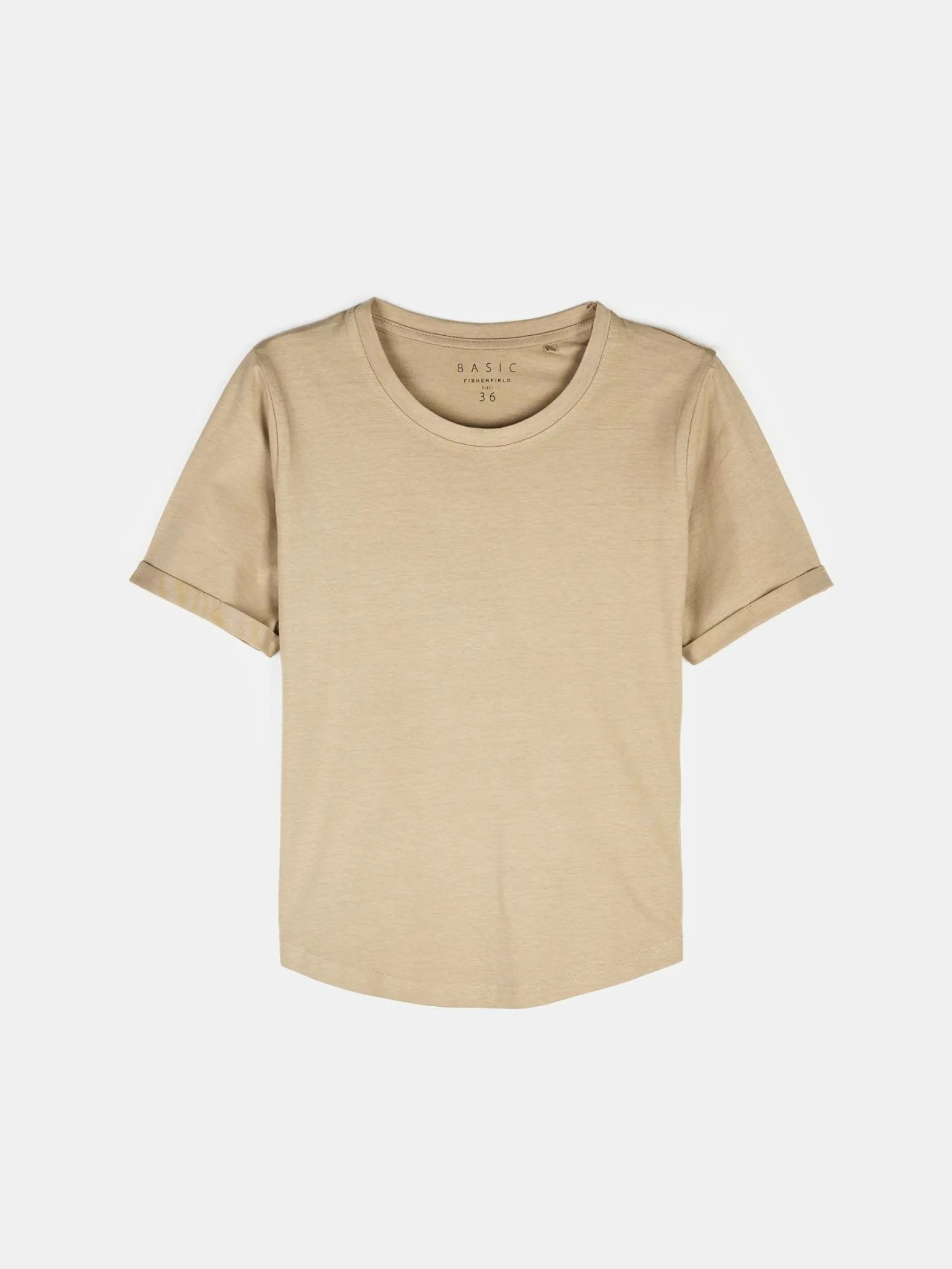 Kolor: beżowyKrój: regularTyp: koszulkaRekaw: krótki rękawDługość: krótkiPattern style: pojedynczy kolorDetal: n…