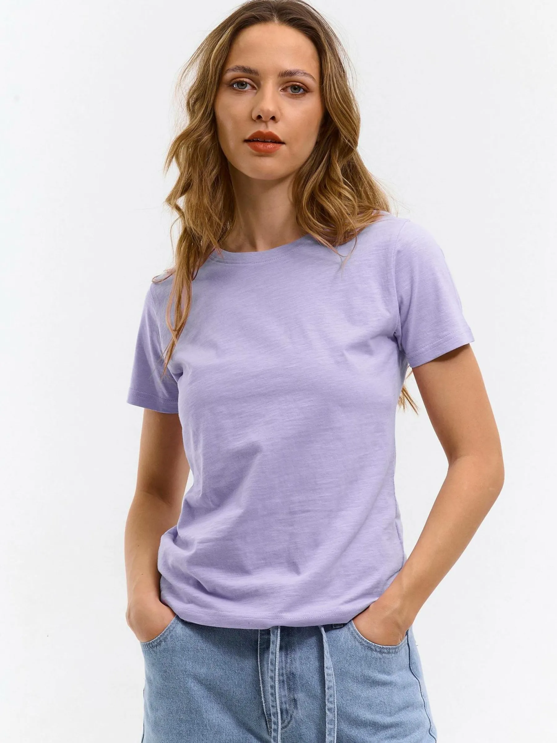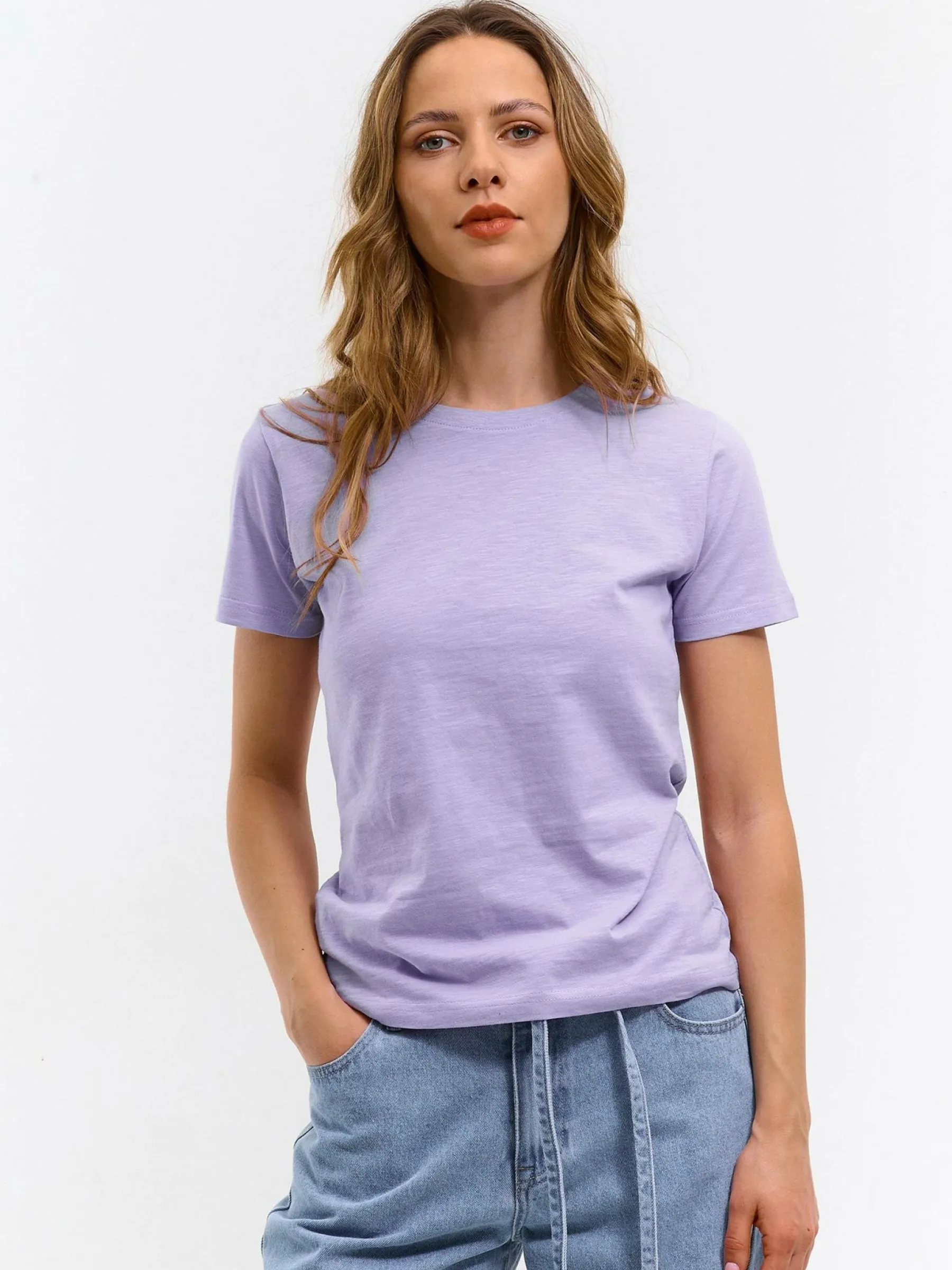 Kolor: purpurowyKrój: podstawowyTyp: koszulkaRekaw: krótki rękawDługość: krótkiPattern style: pojedynczy kolorDet…