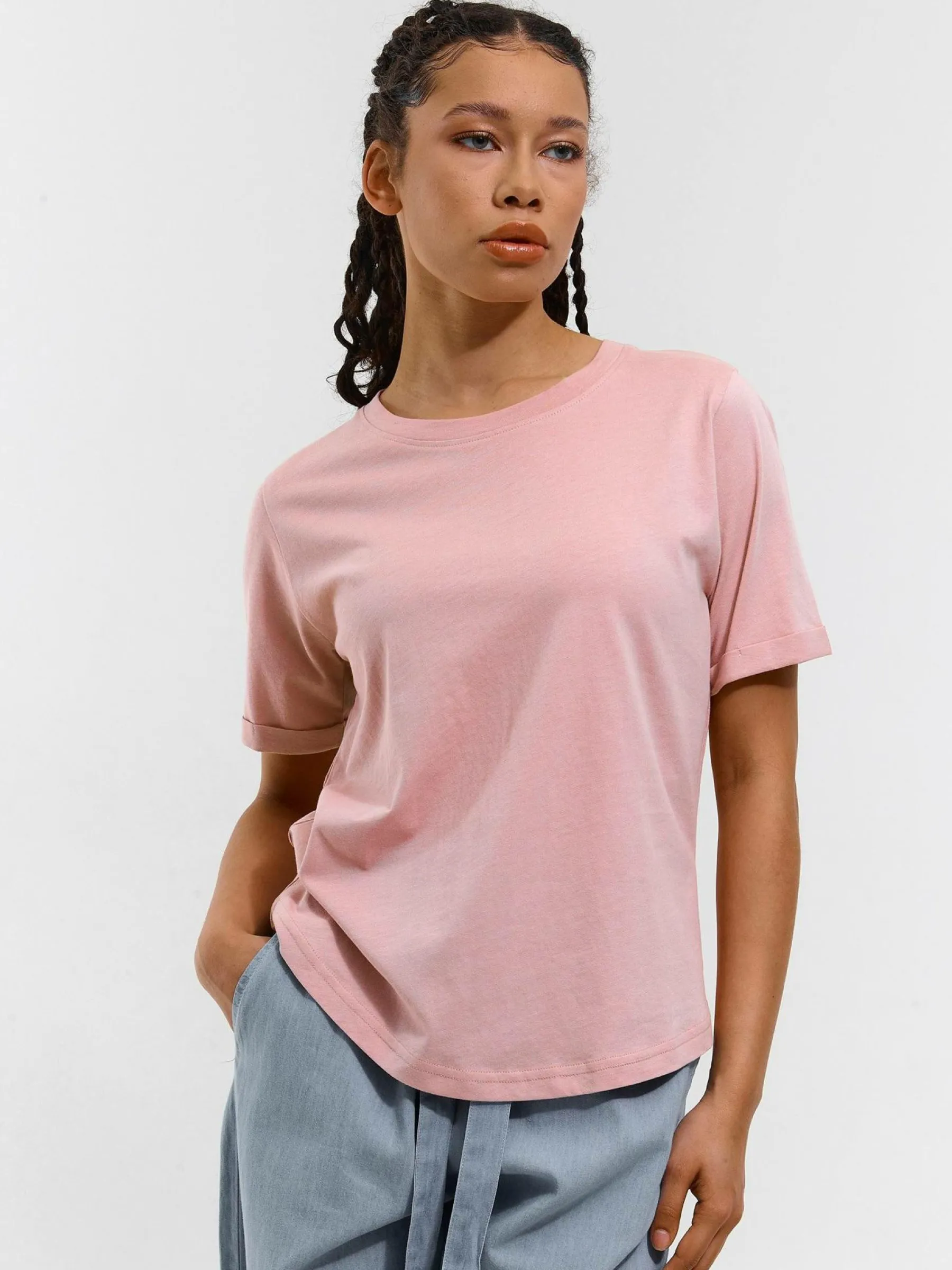 Kolor: różowyKrój: regularTyp: koszulkaRekaw: krótki rękawDługość: krótkiPattern style: pojedynczy kolorDetal: …