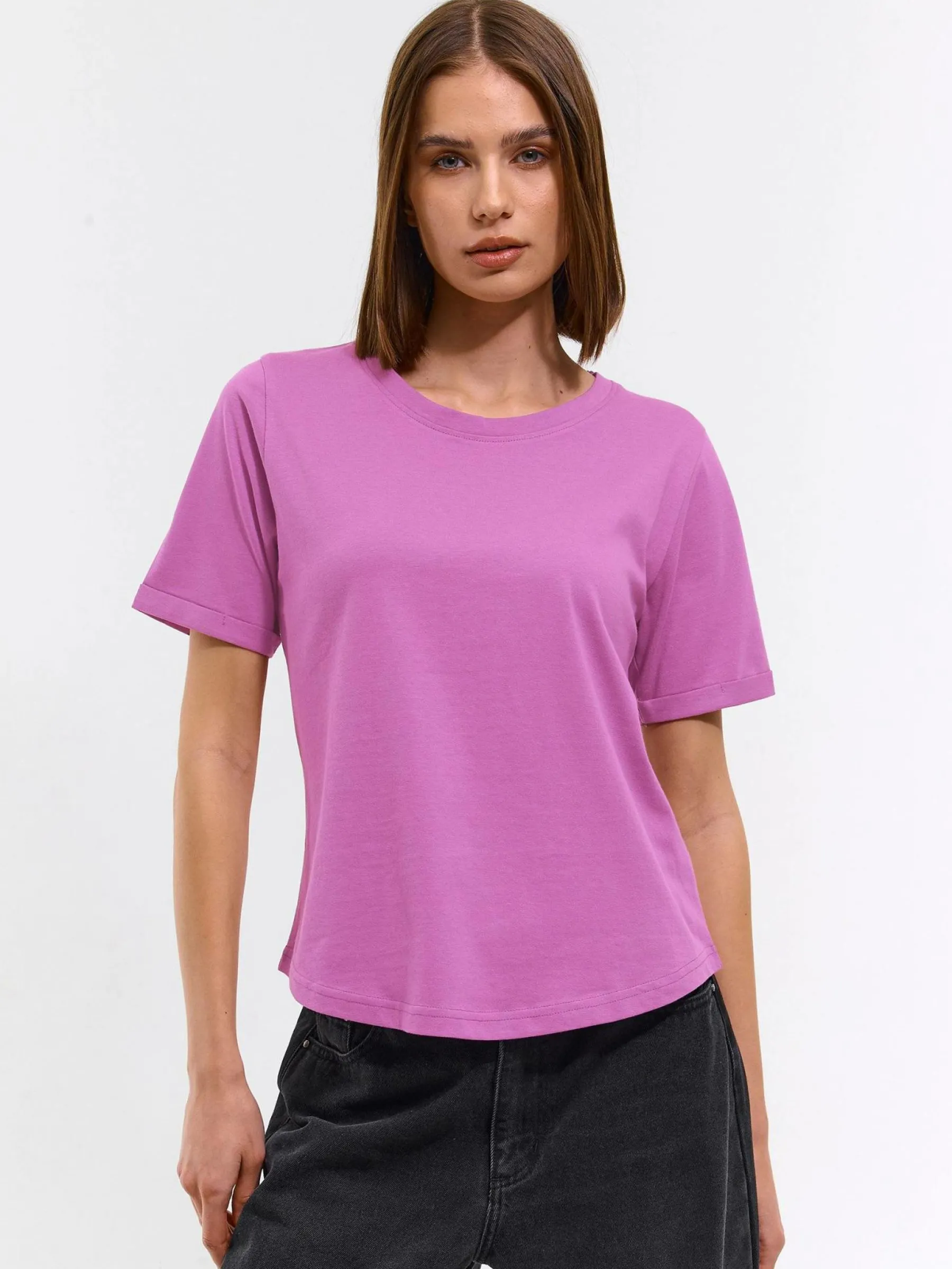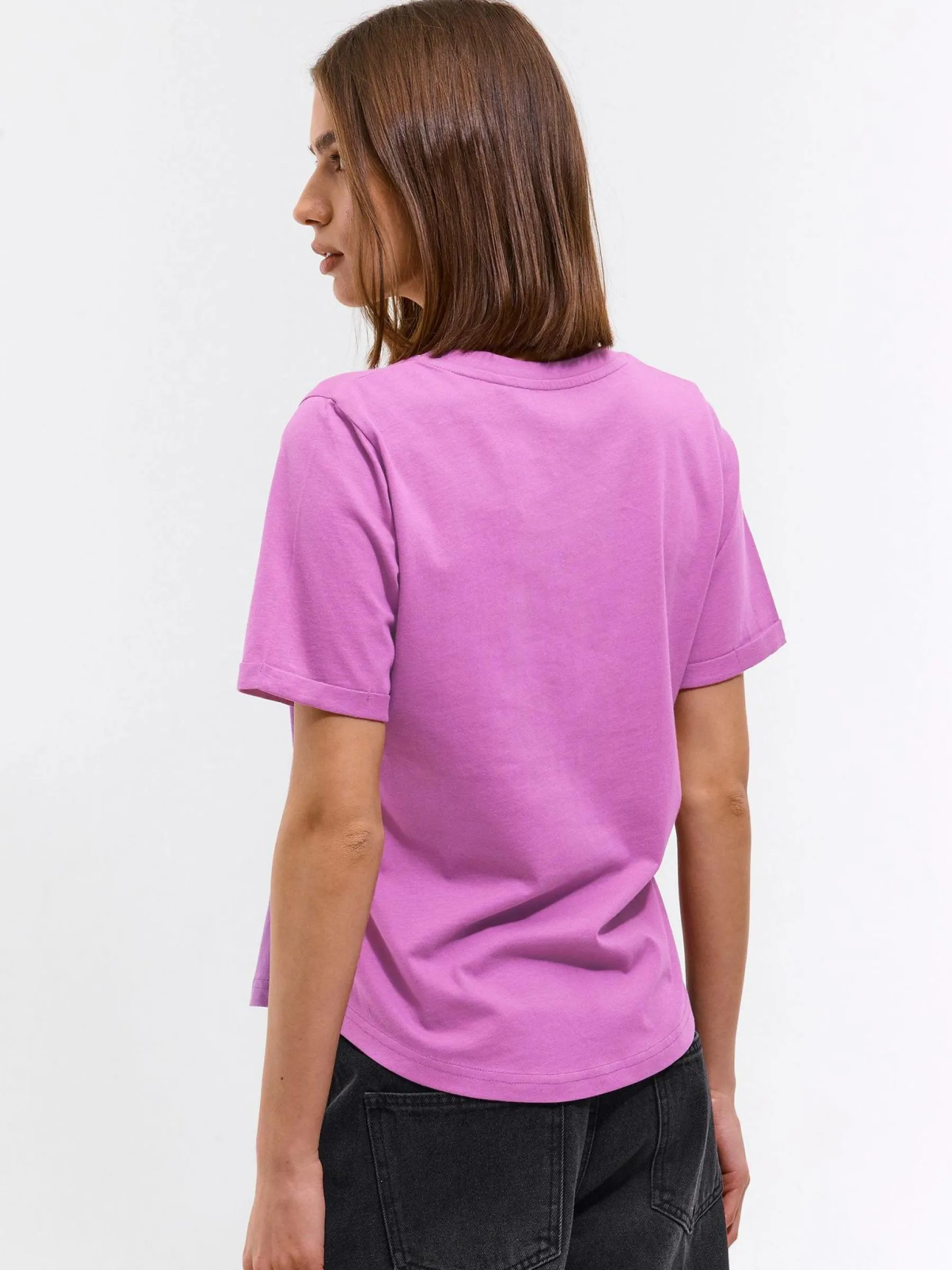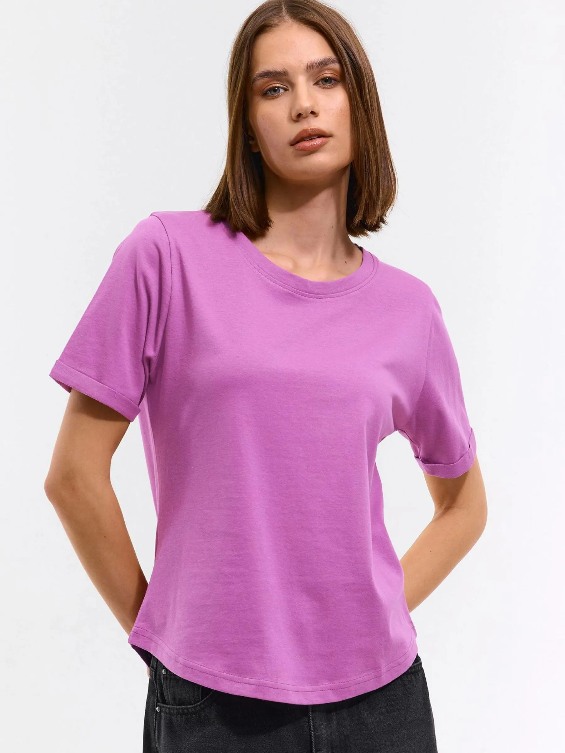 Kolor: purpurowyKrój: regularTyp: koszulkaRekaw: krótki rękawDługość: krótkiPattern style: pojedynczy kolorDetal:…