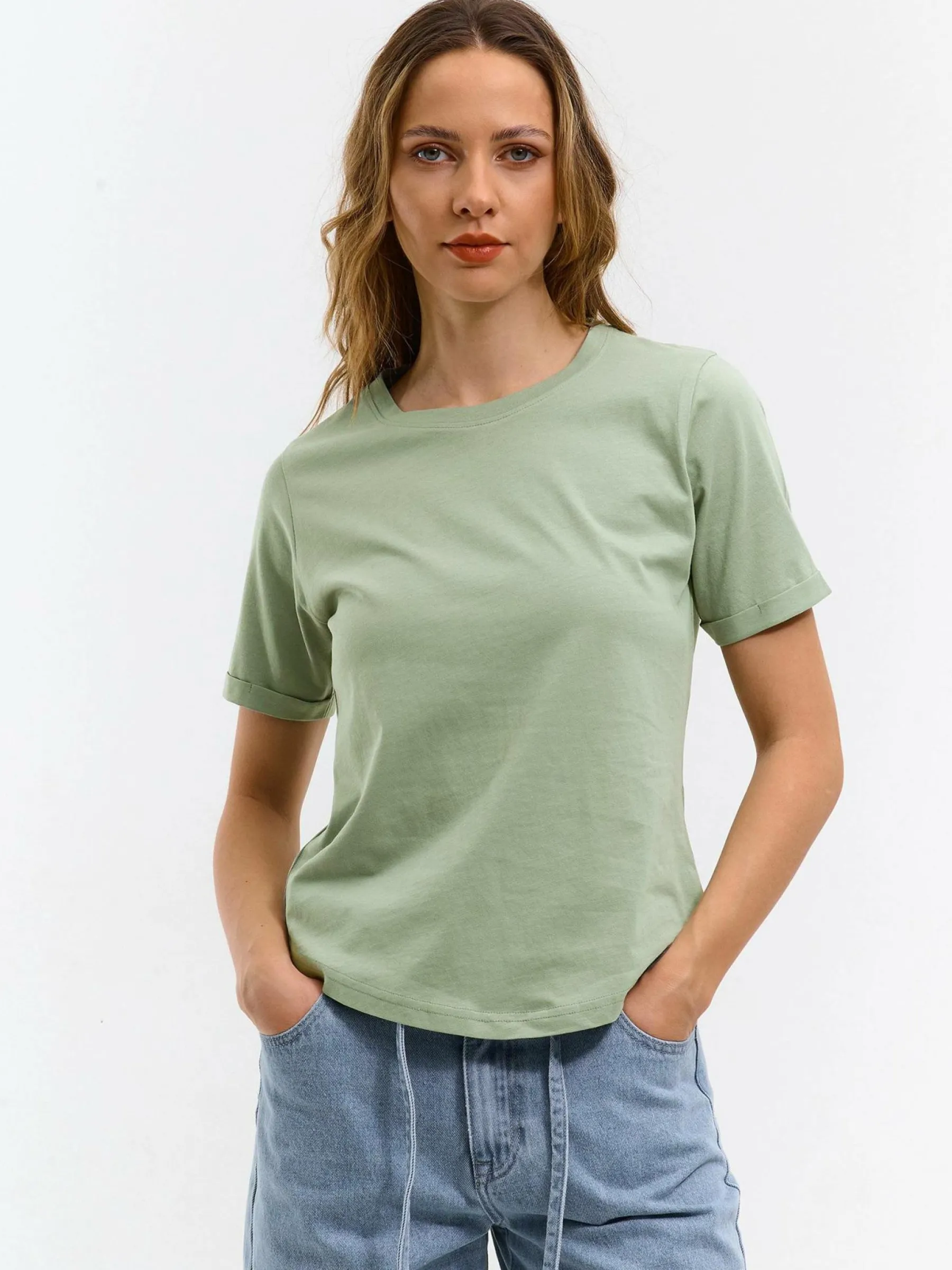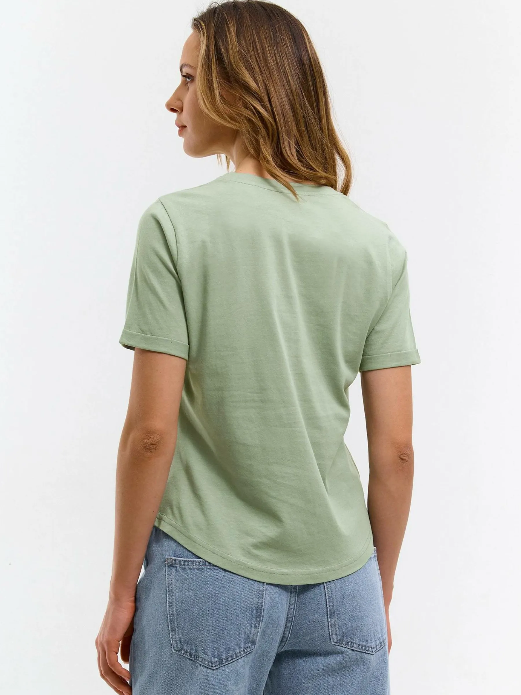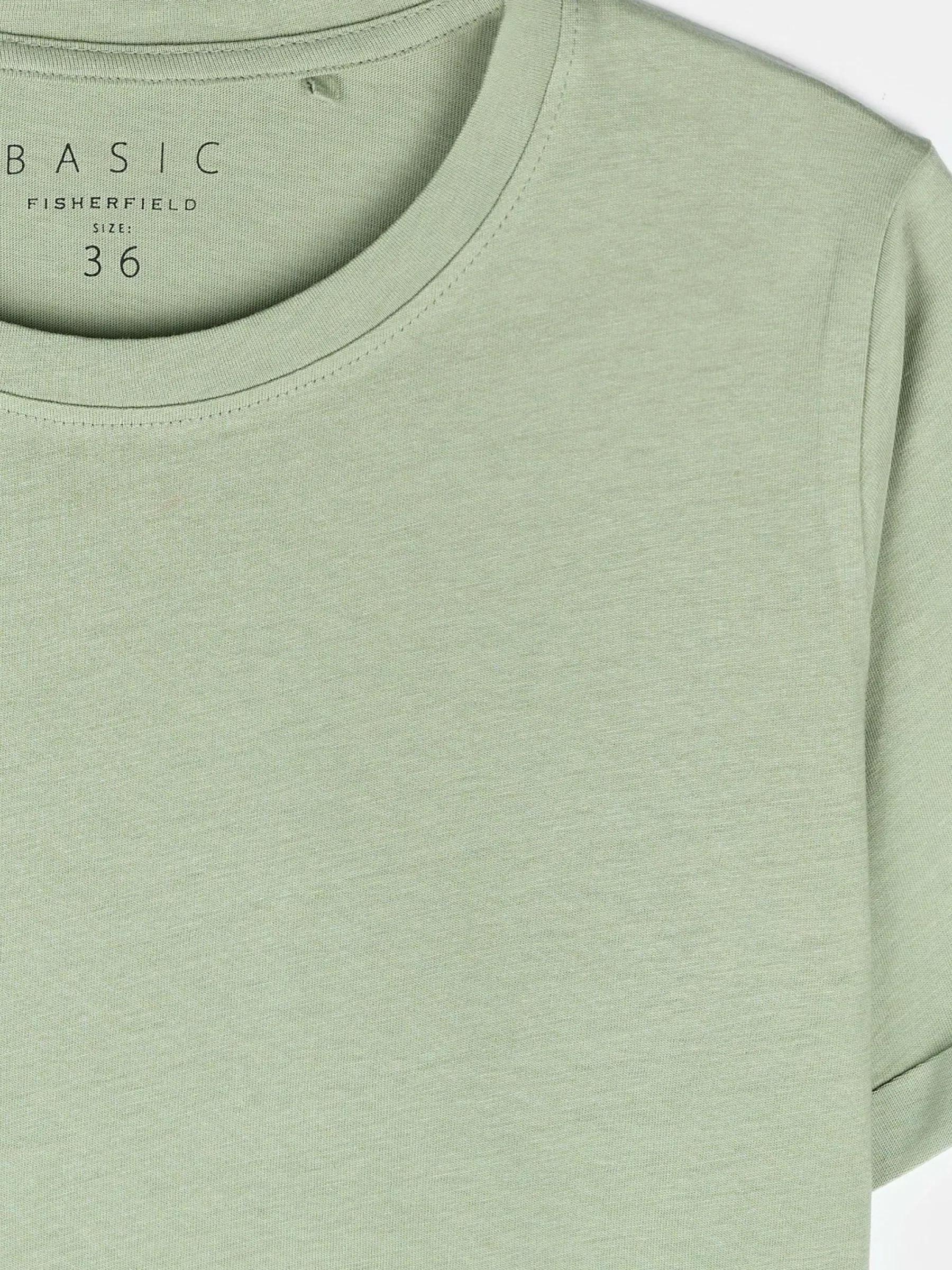 Kolor: zielonyKrój: regularTyp: koszulkaRekaw: krótki rękawDługość: krótkiPattern style: pojedynczy kolorDetal: n…