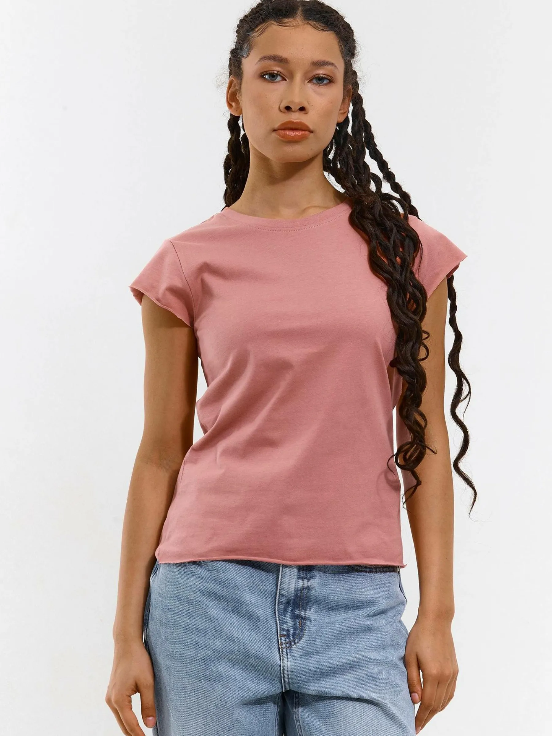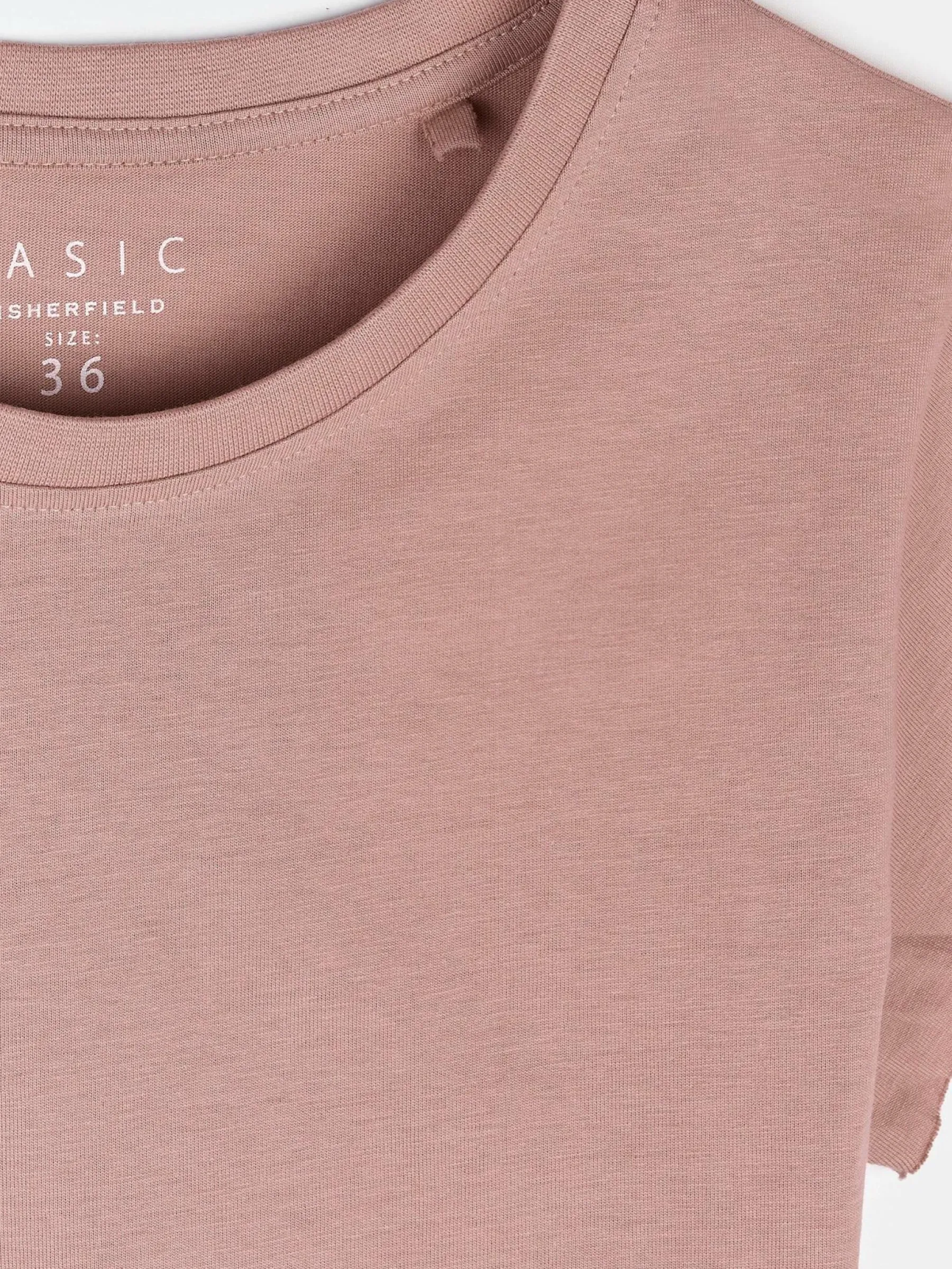 Kolor: różowyKrój: regularTyp: koszulkaRekaw: krótki rękawDługość: krótkiPattern style: pojedynczy kolorDetal: …