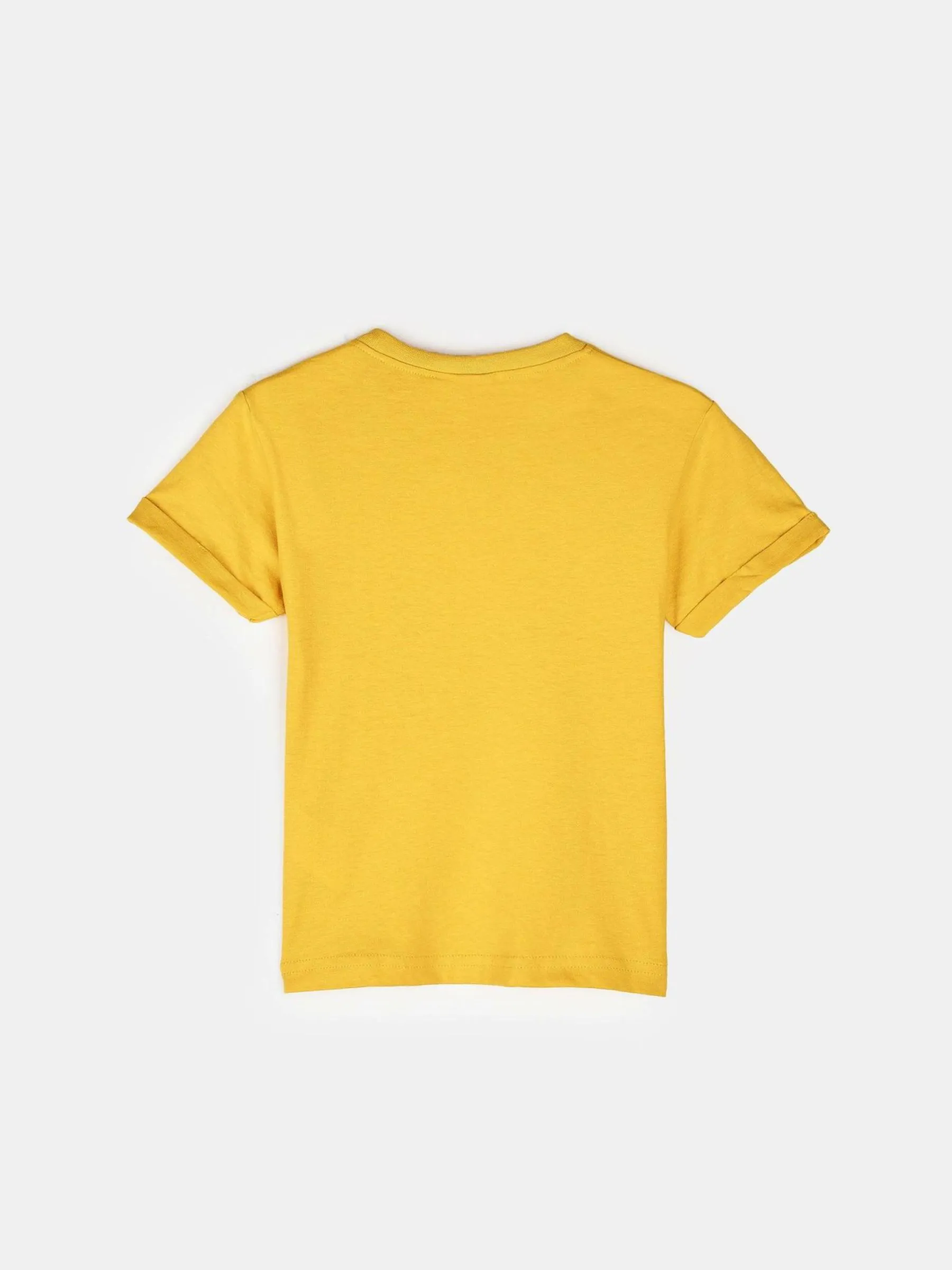 Kolor: żółtyKrój: regularTyp: koszulkaRekaw: krótki rękawDługość: krótkiPattern style: z nadrukiemDetal: nad g…