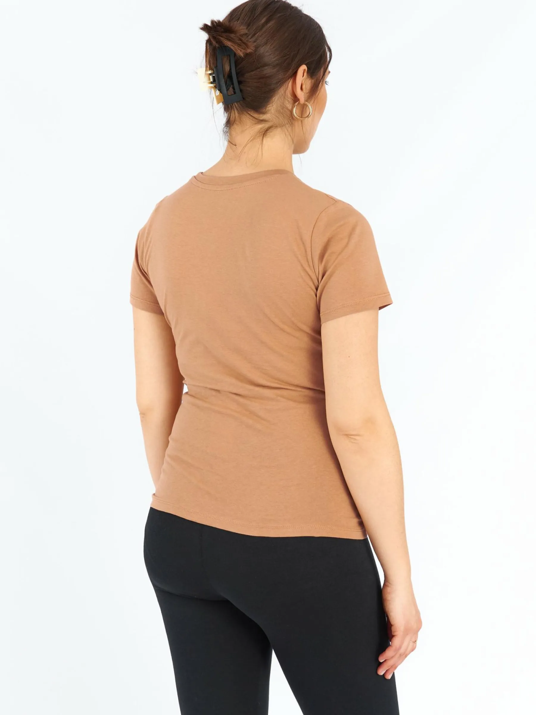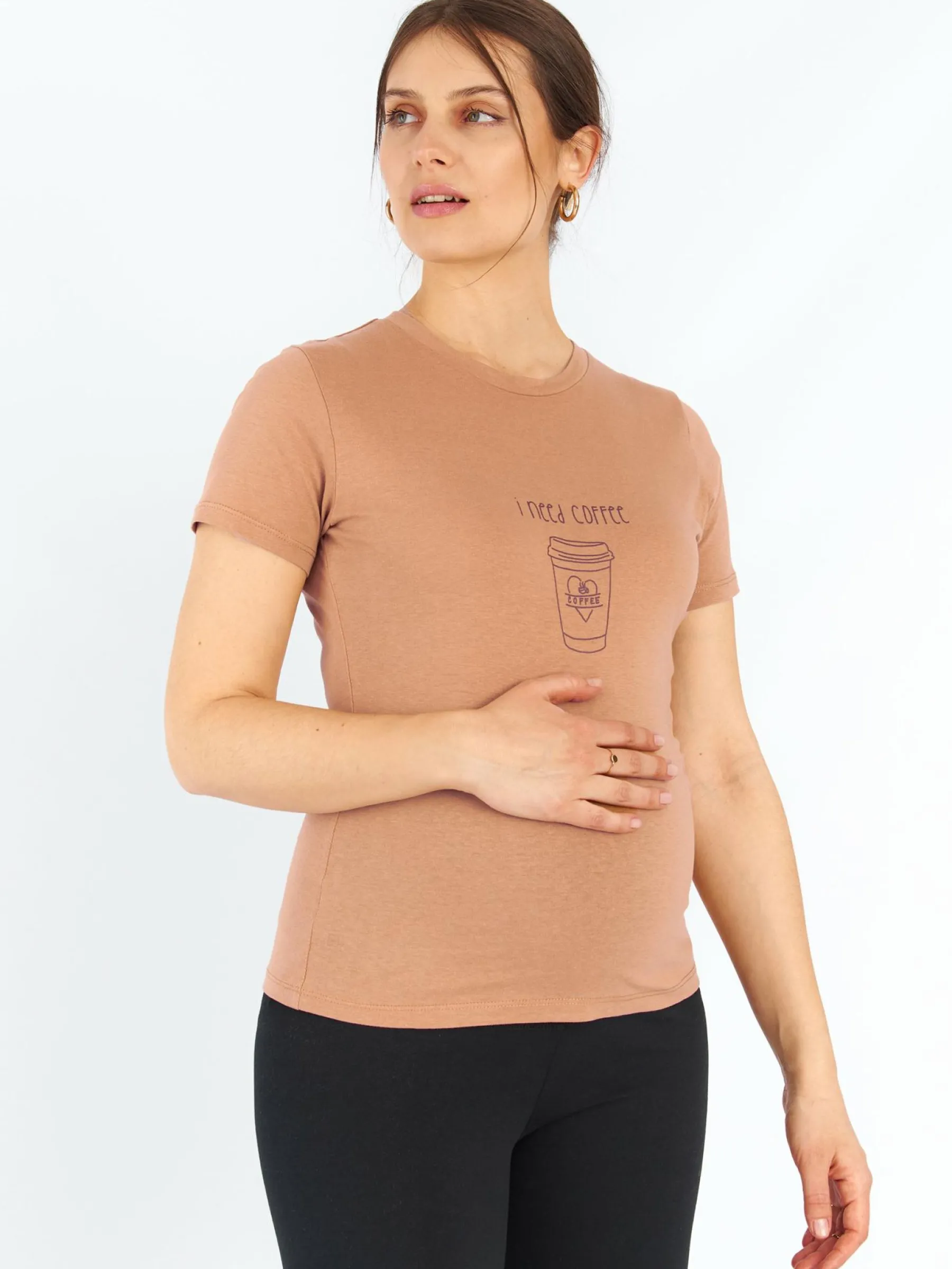 Kolor: beżowy, brązowyKrój: regularTyp: koszulkaRekaw: krótki rękawDługość: krótkiPattern style: z nadrukiemDet…