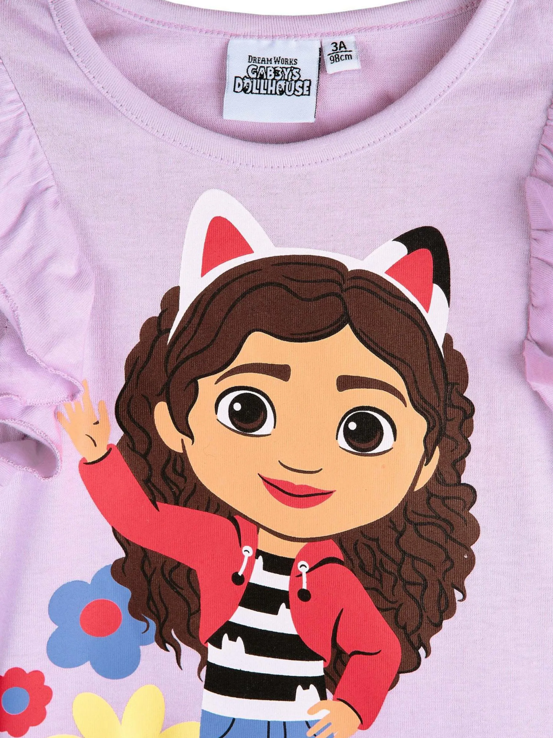 Kolor: purpurowyKrój: z falbanąTyp: koszulkaRekaw: krótki rękawDługość: krótkiPattern style: z nadrukiemDetal: n…