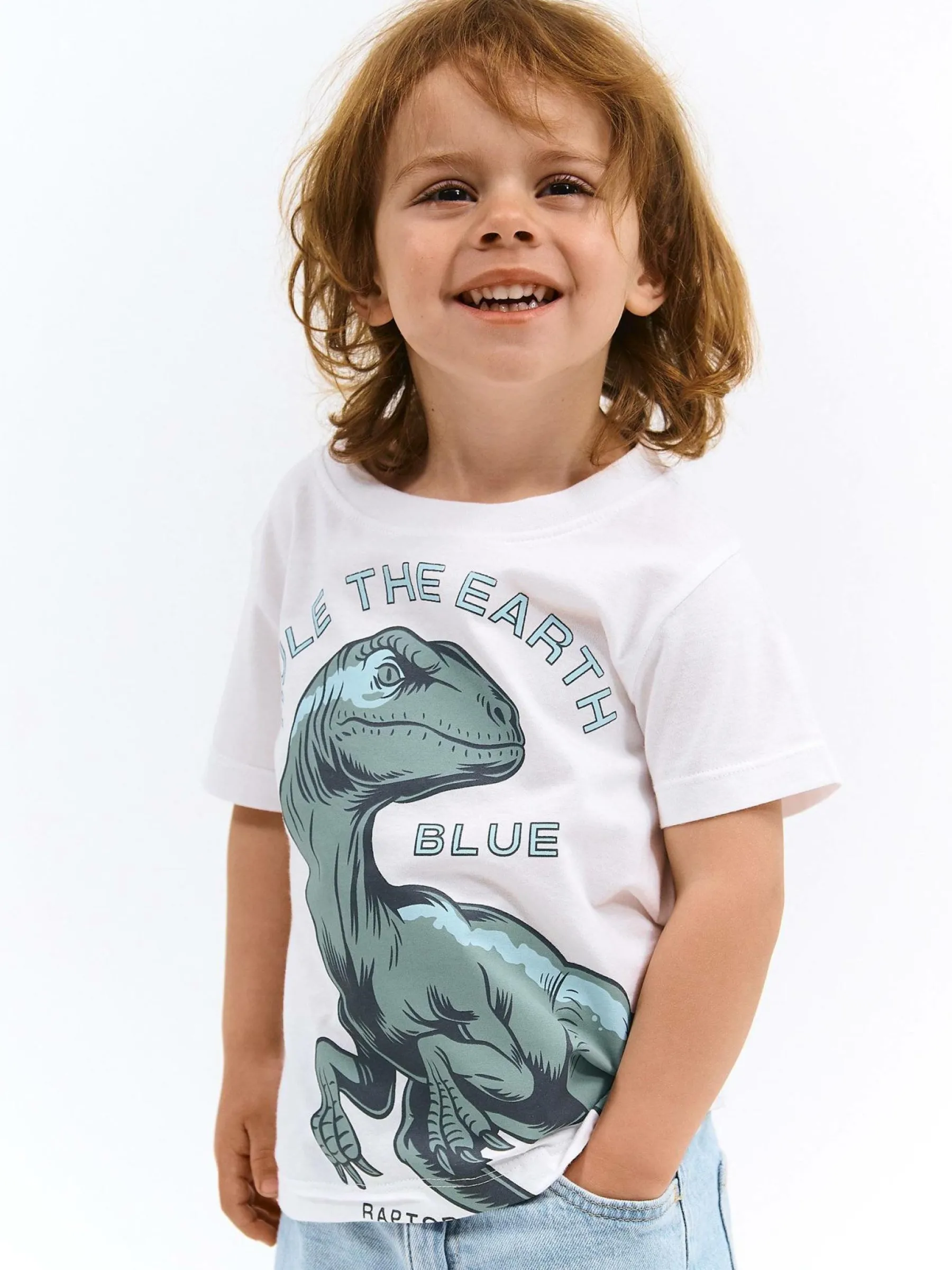 Kolor: białyKrój: regularTyp: koszulkaRekaw: krótki rękawDługość: krótkiPattern style: z nadrukiemDetal: nad gł…
