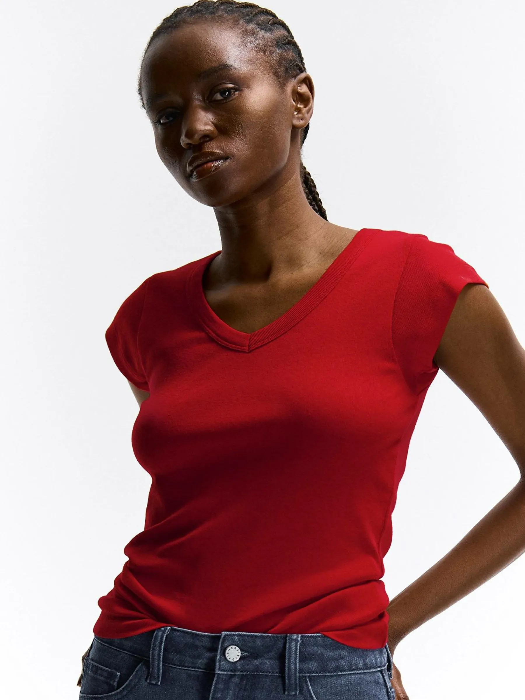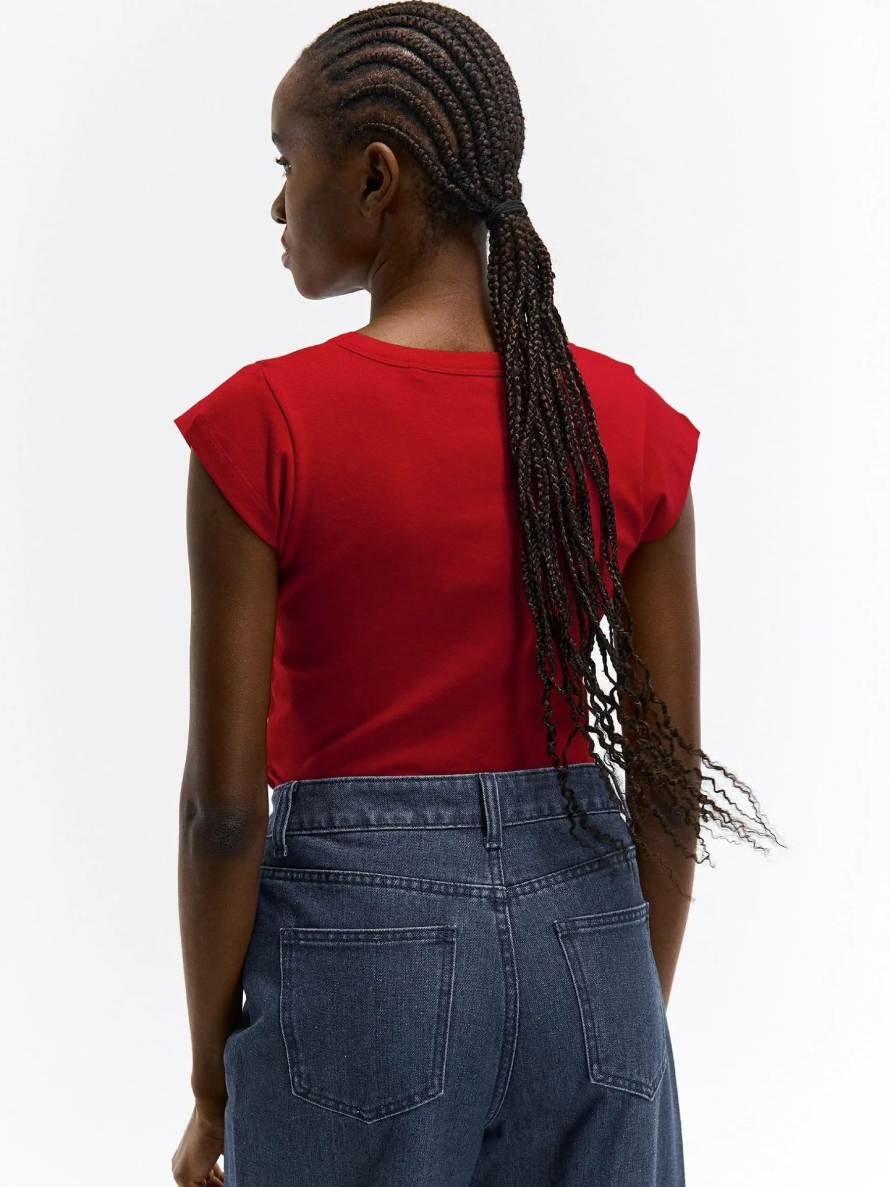 Kolor: czerwonyKrój: regularTyp: koszulkaRekaw: krótki rękawDługość: krótkiPattern style: pojedynczy kolorDetal: …