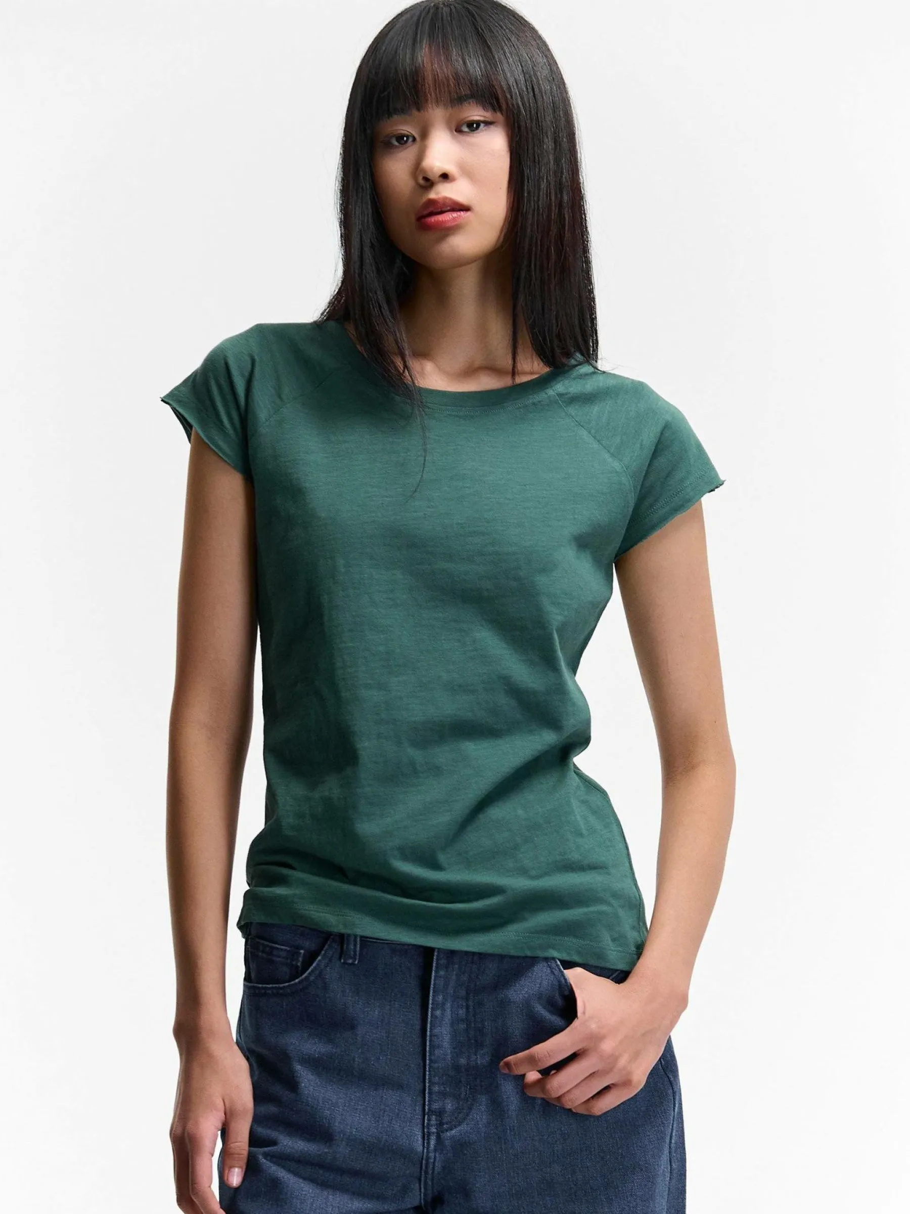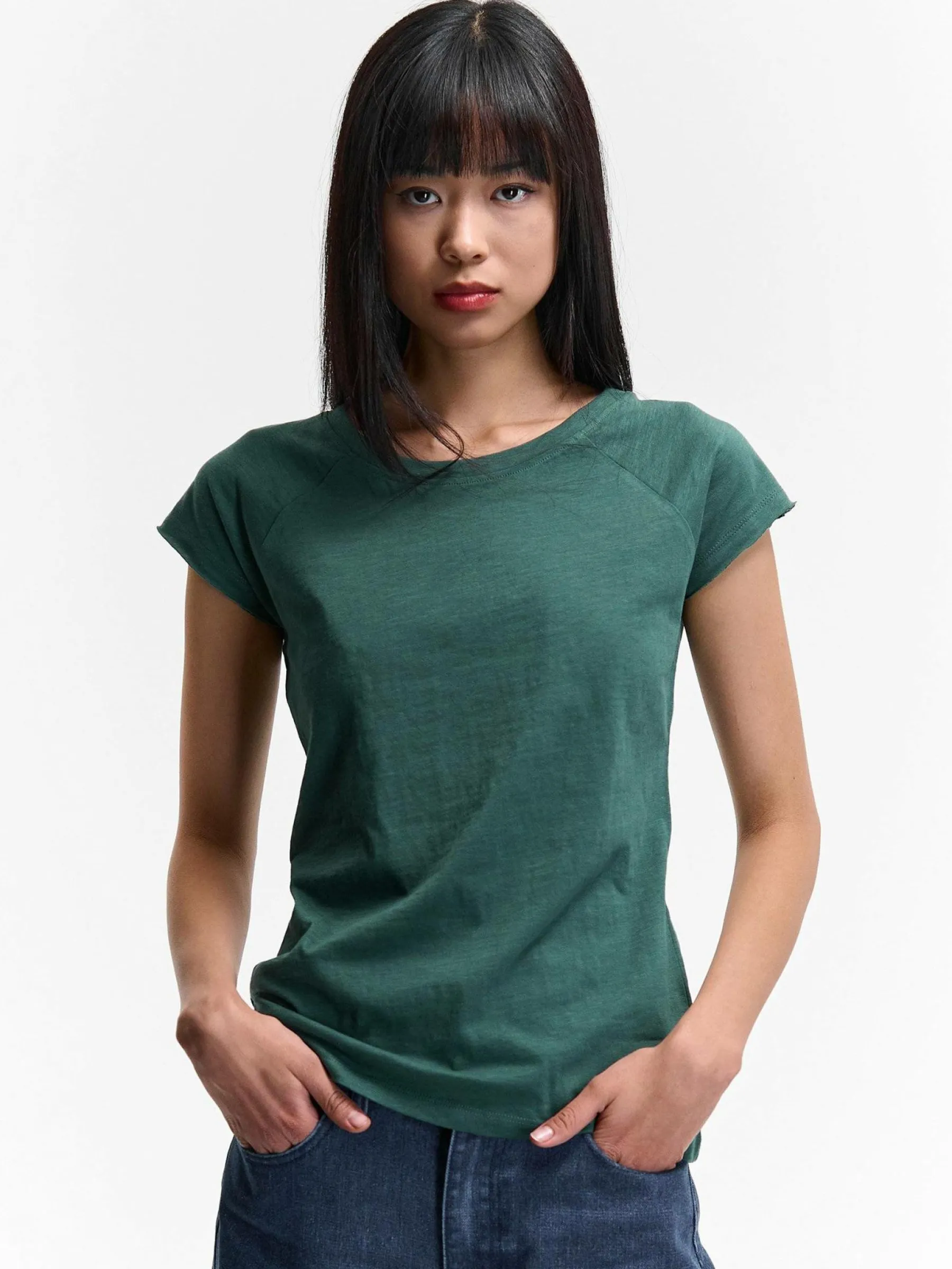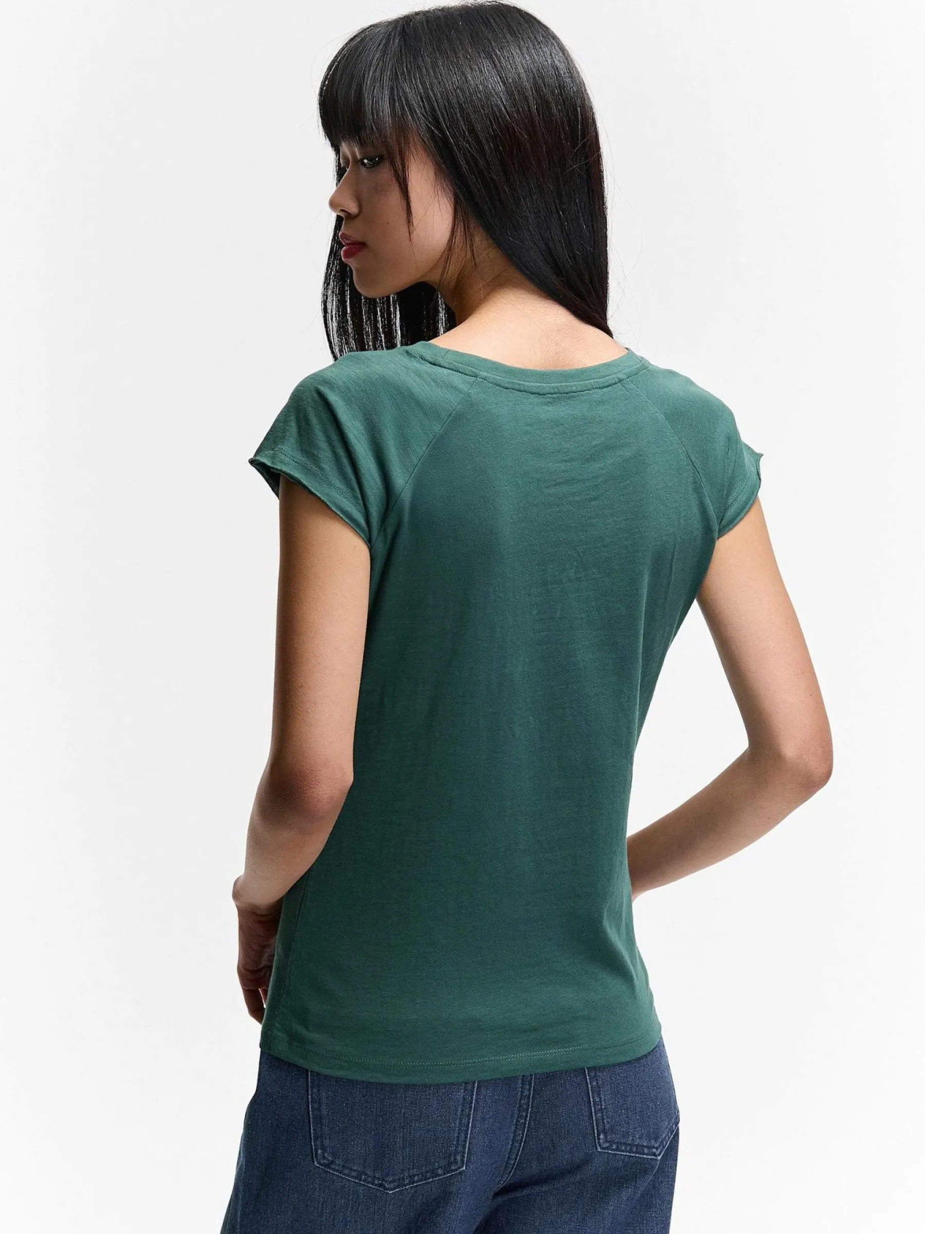 Kolor: zielonyKrój: regularTyp: koszulkaRekaw: krótki rękawDługość: krótkiPattern style: pojedynczy kolorDetal: n…