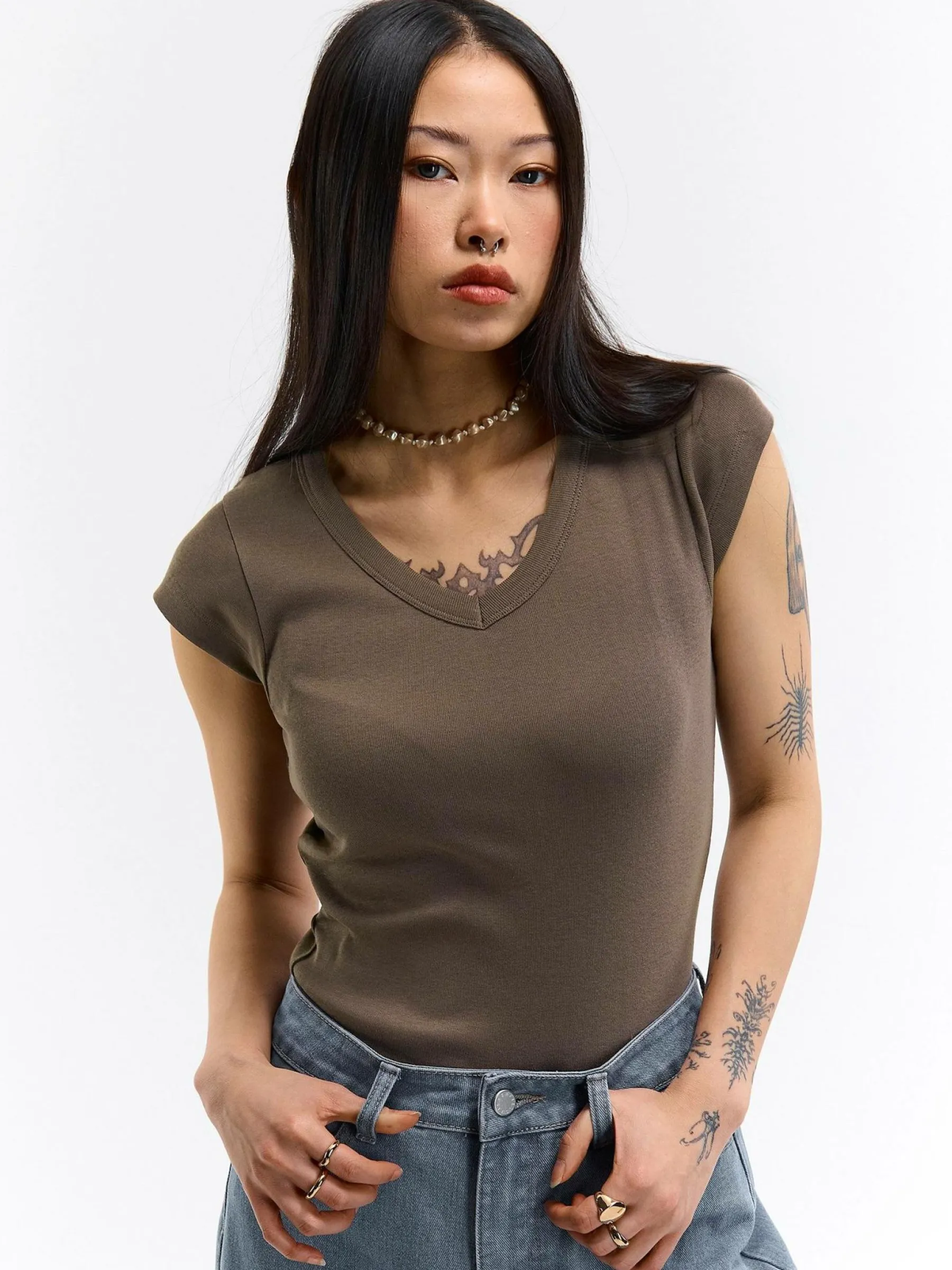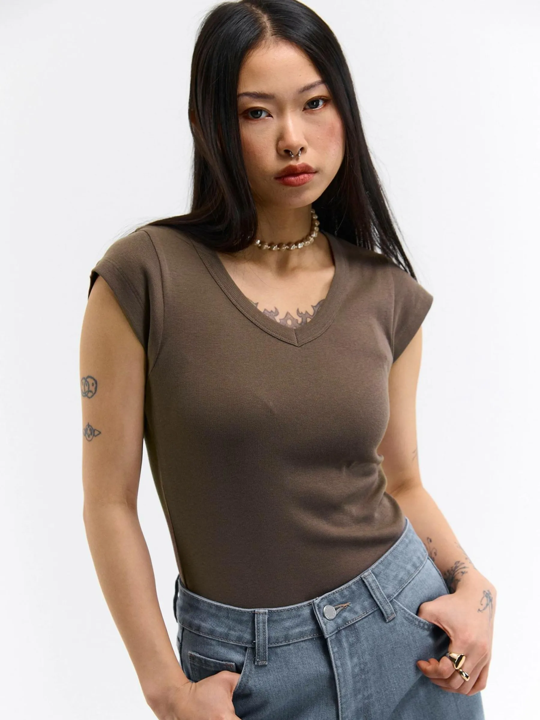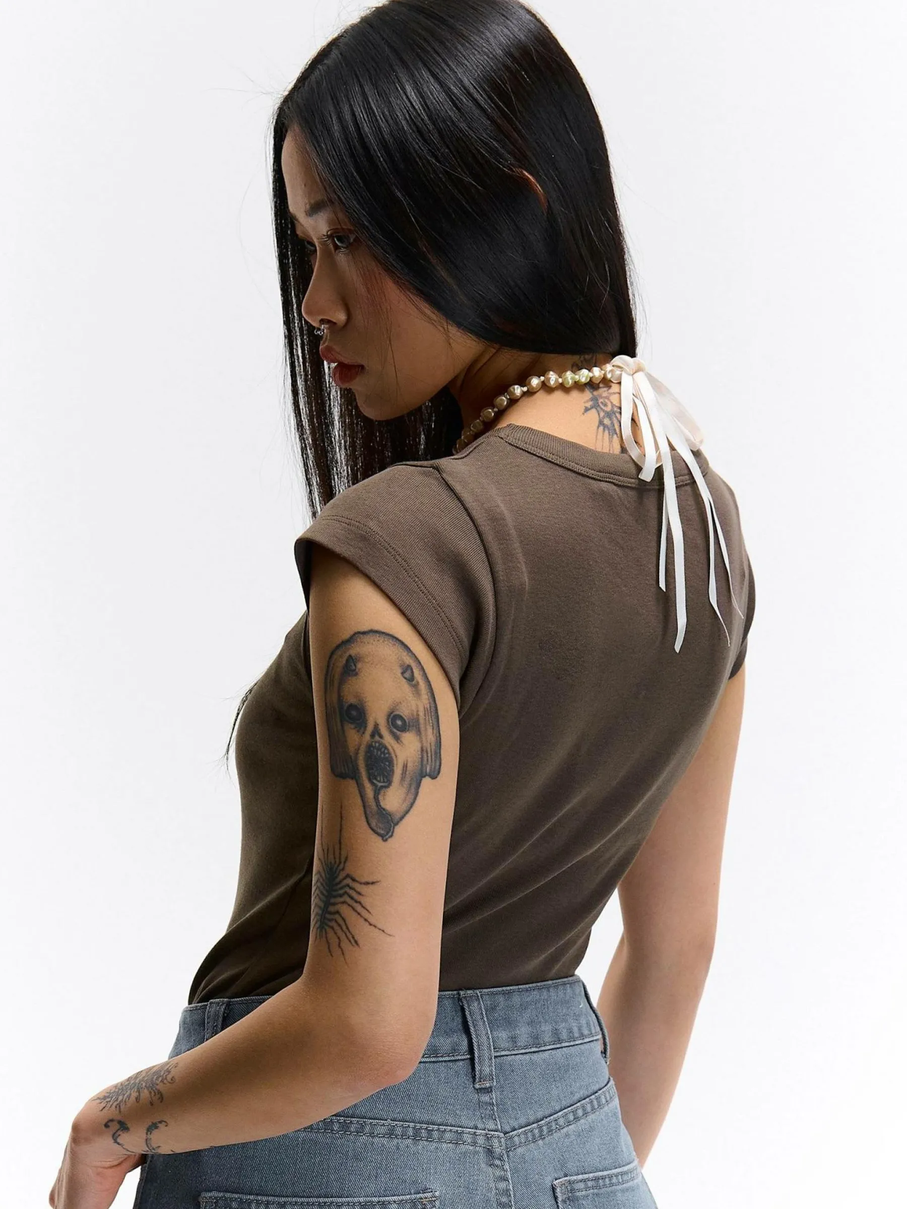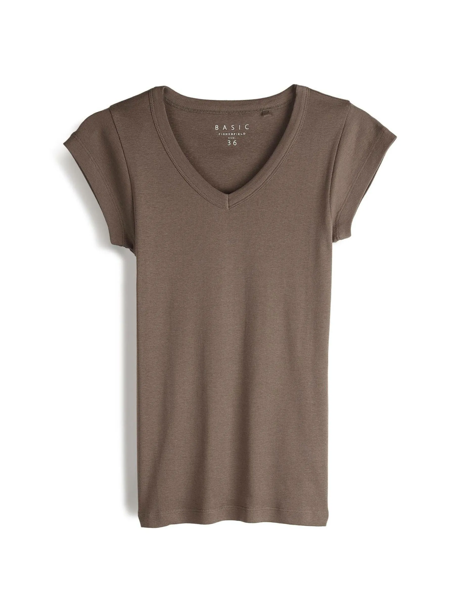 Kolor: brązowyKrój: regularTyp: koszulkaRekaw: krótki rękawDługość: krótkiPattern style: pojedynczy kolorDetal: …