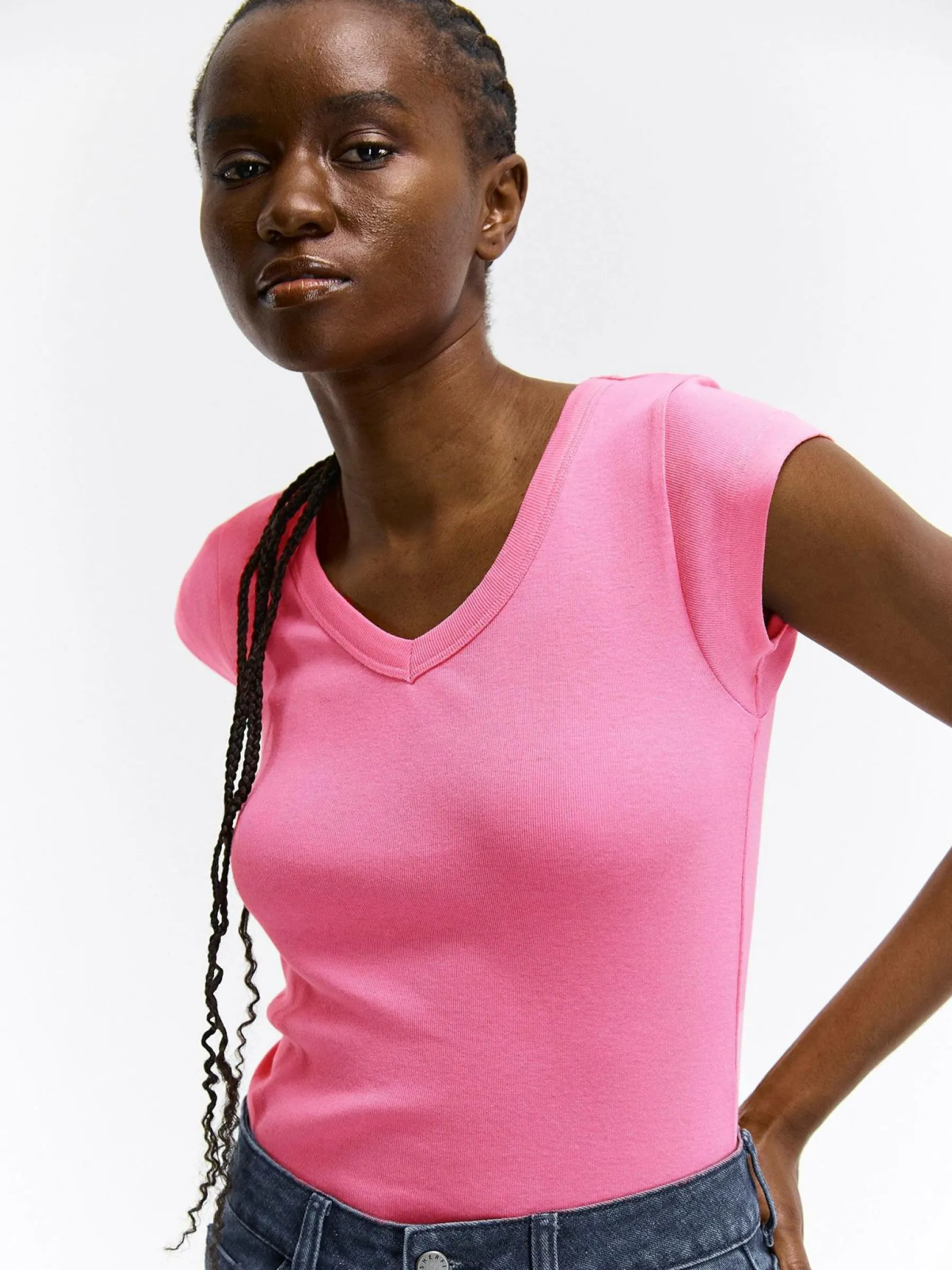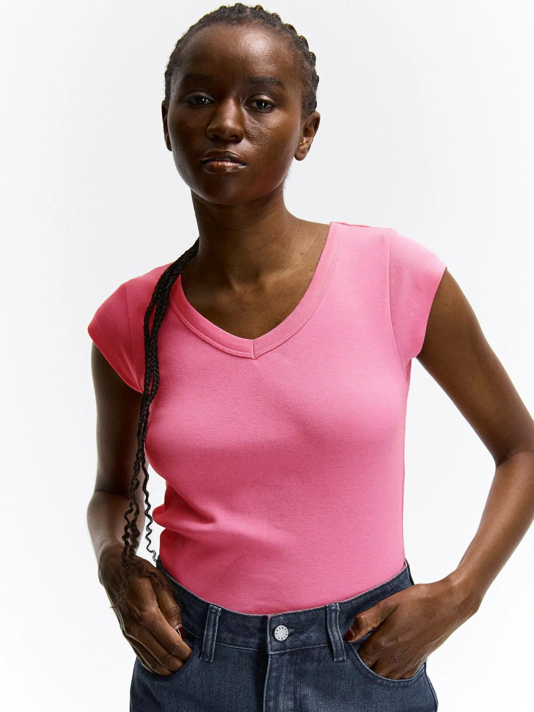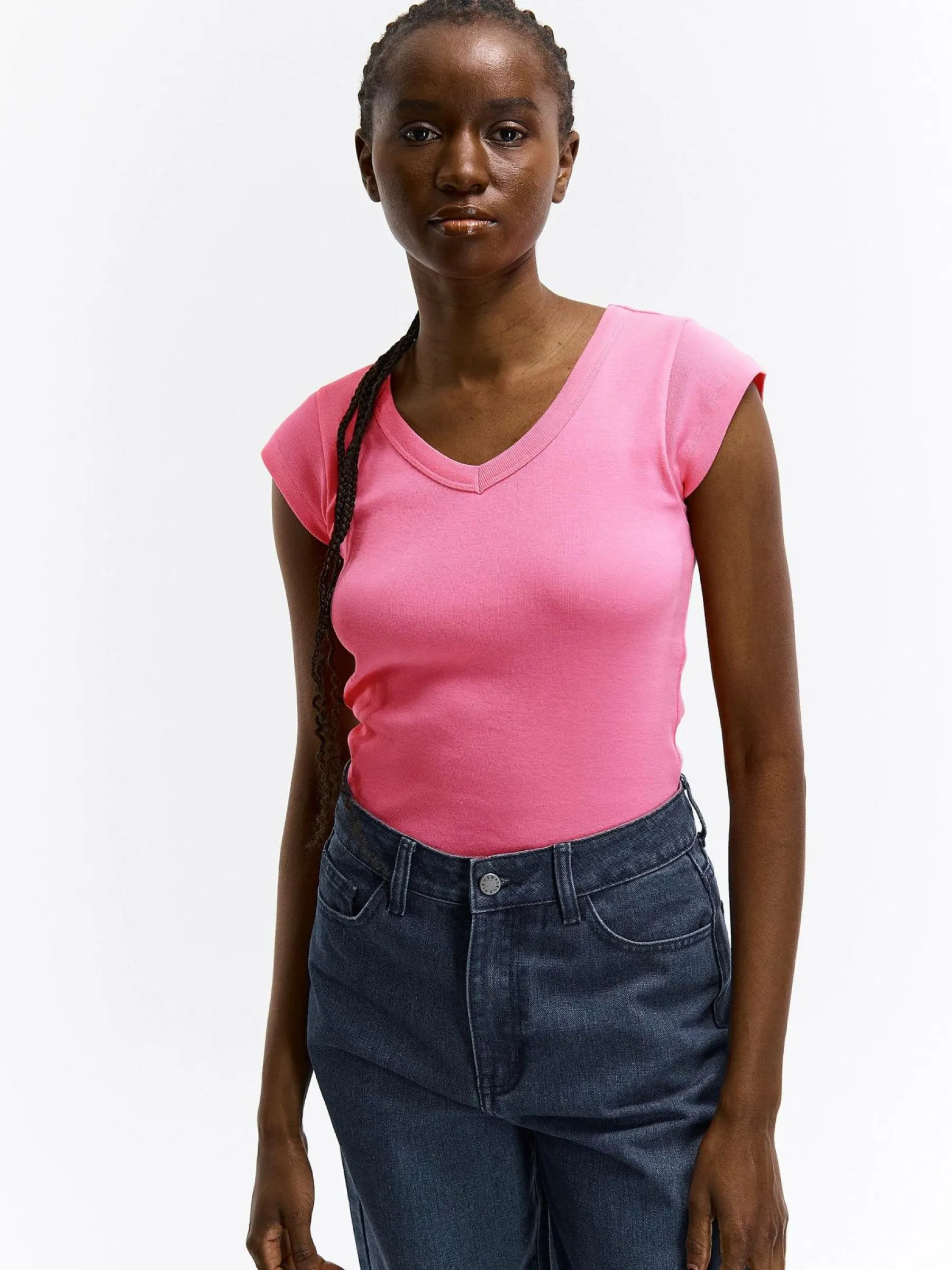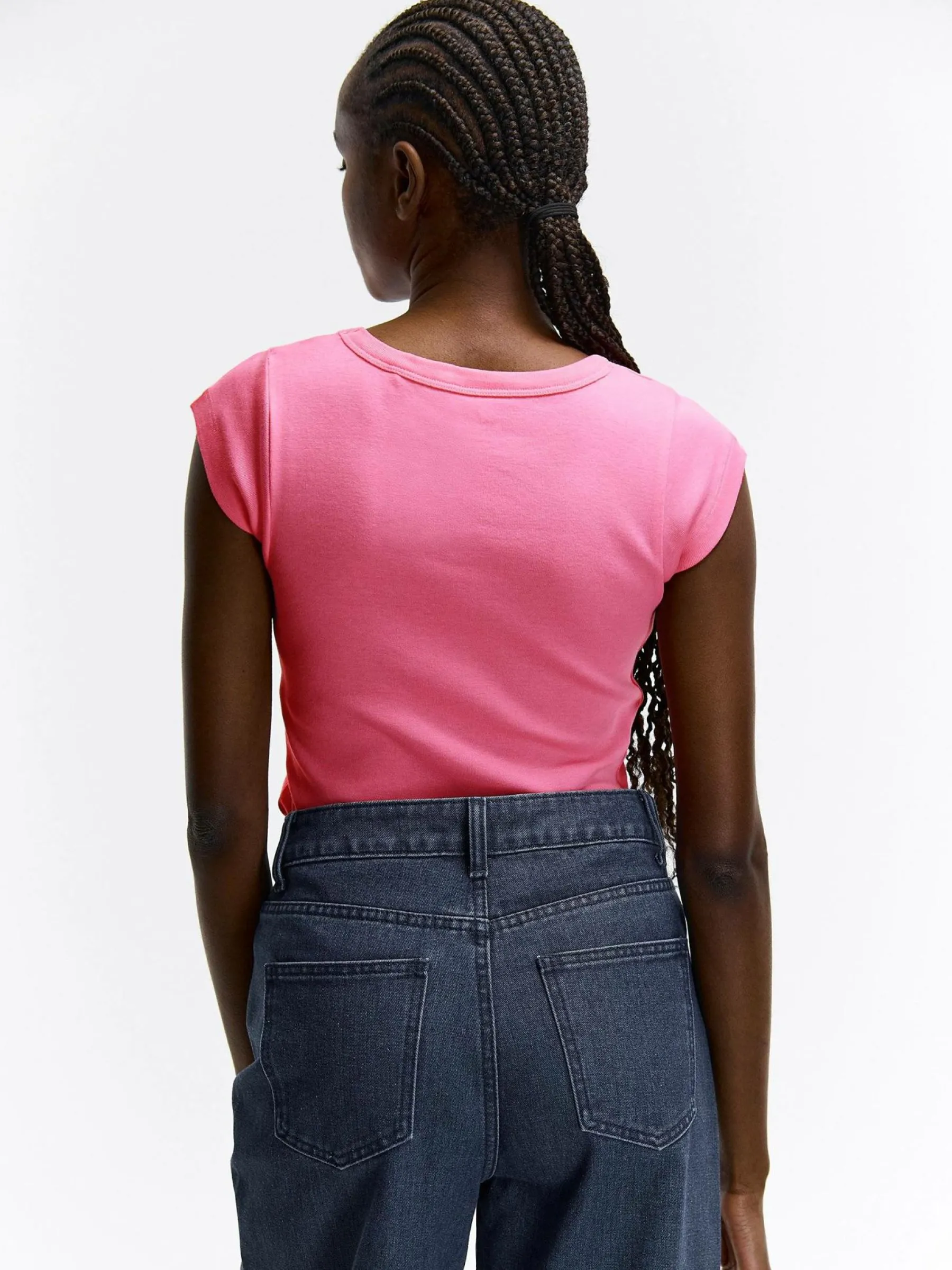 Kolor: różowyKrój: regularTyp: koszulkaRekaw: krótki rękawDługość: krótkiPattern style: pojedynczy kolorDetal: …