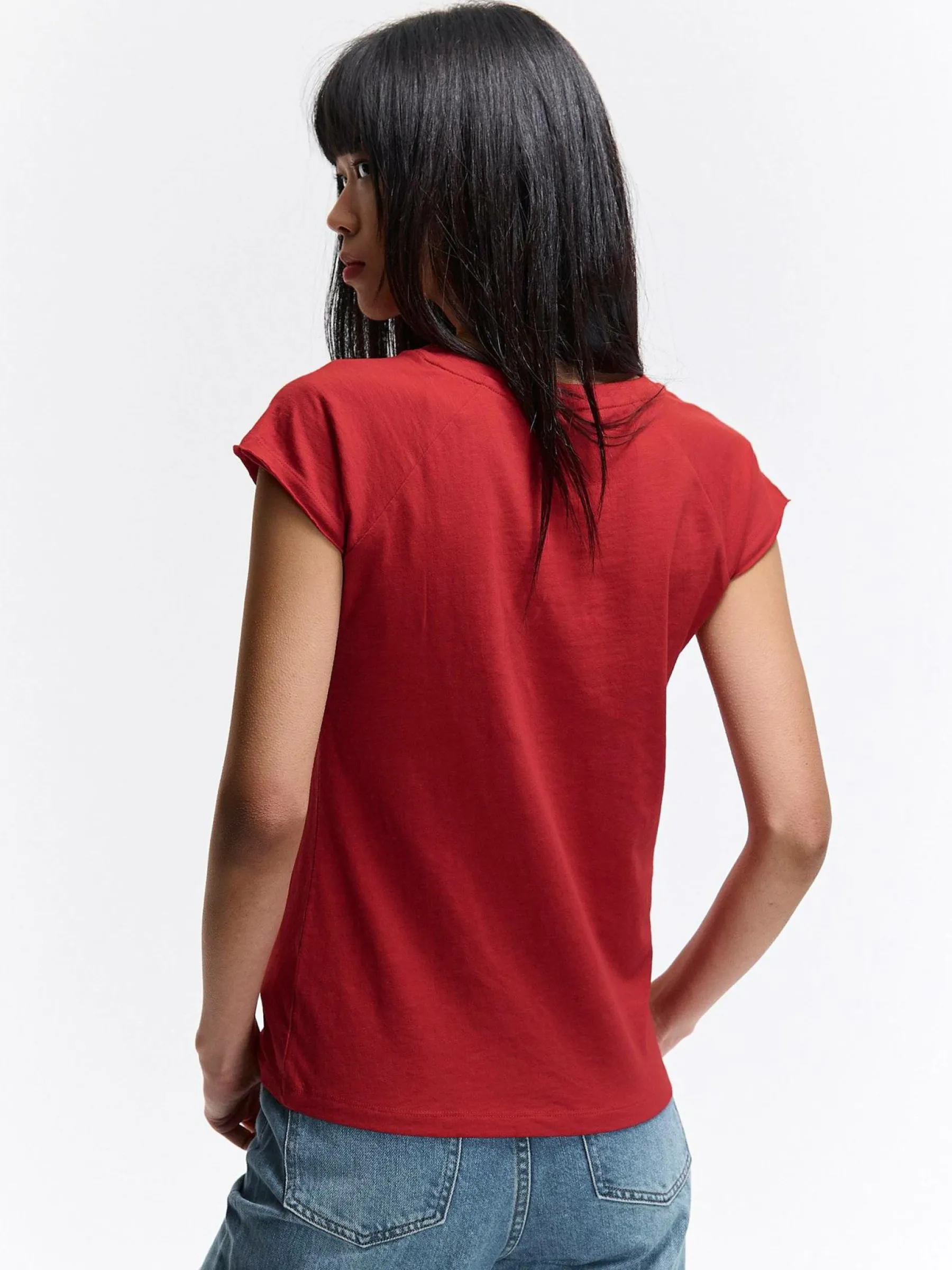 Kolor: czerwonyKrój: regularTyp: koszulkaRekaw: krótki rękawDługość: krótkiPattern style: pojedynczy kolorDetal: …