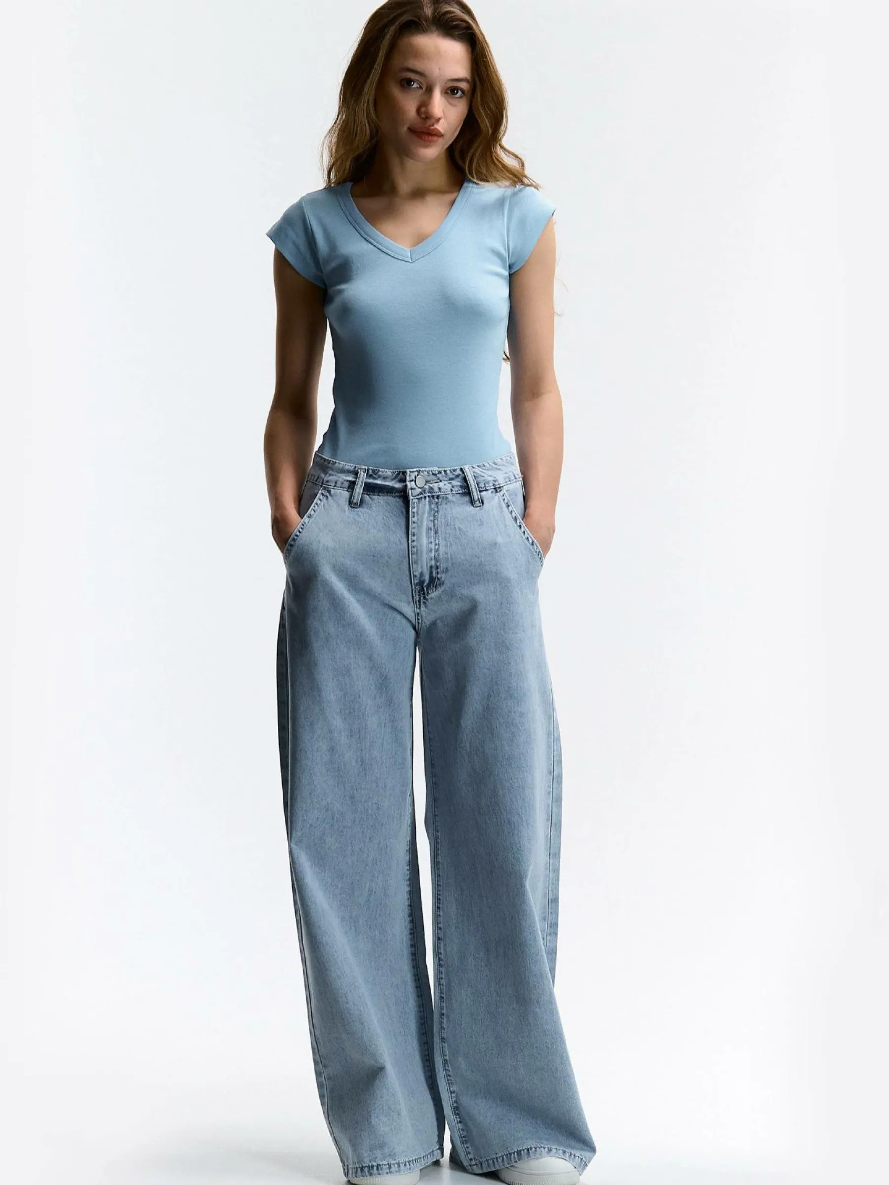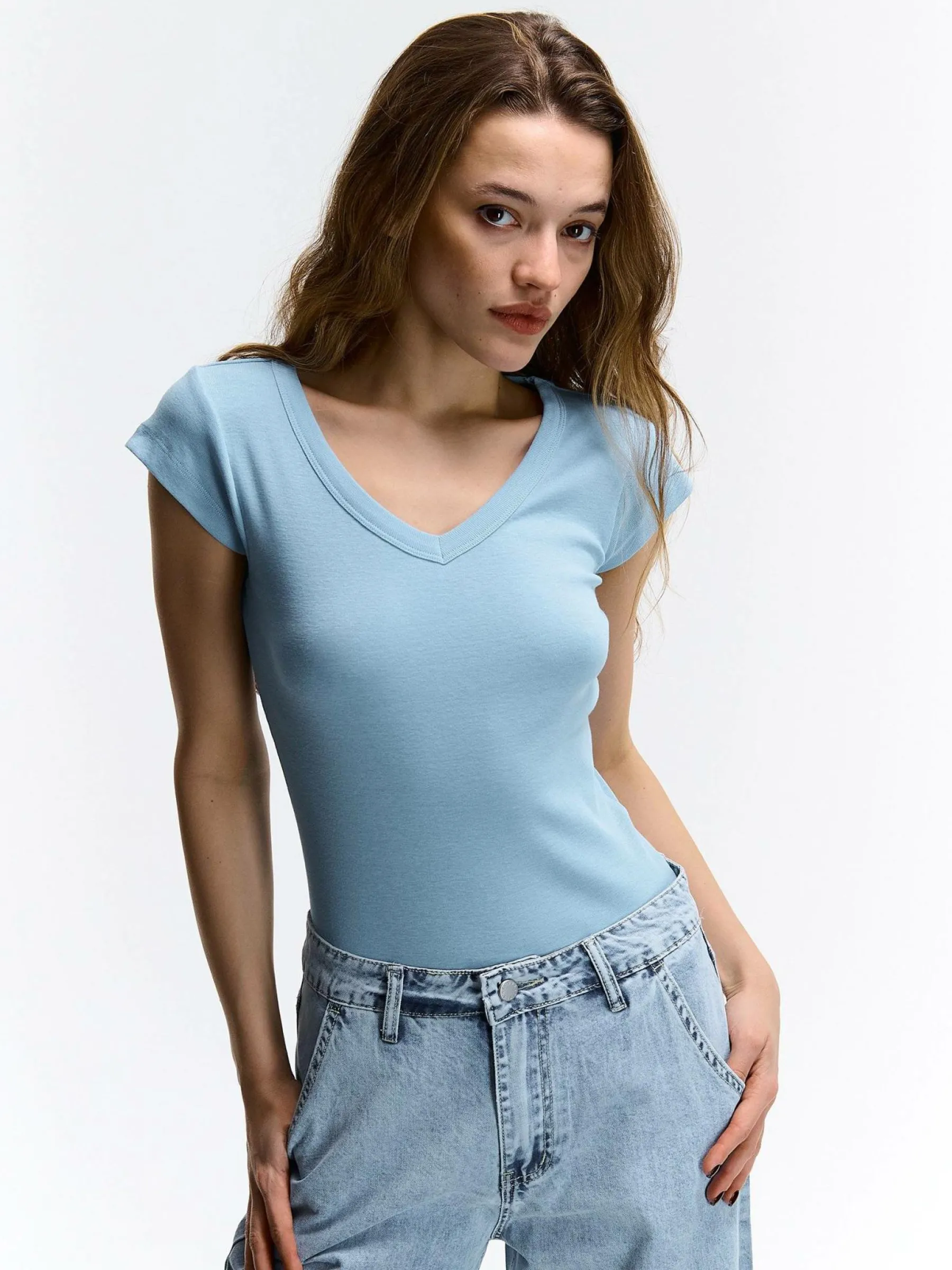 Kolor: niebieskiKrój: regularTyp: koszulkaRekaw: krótki rękawDługość: krótkiPattern style: pojedynczy kolorDetal:…