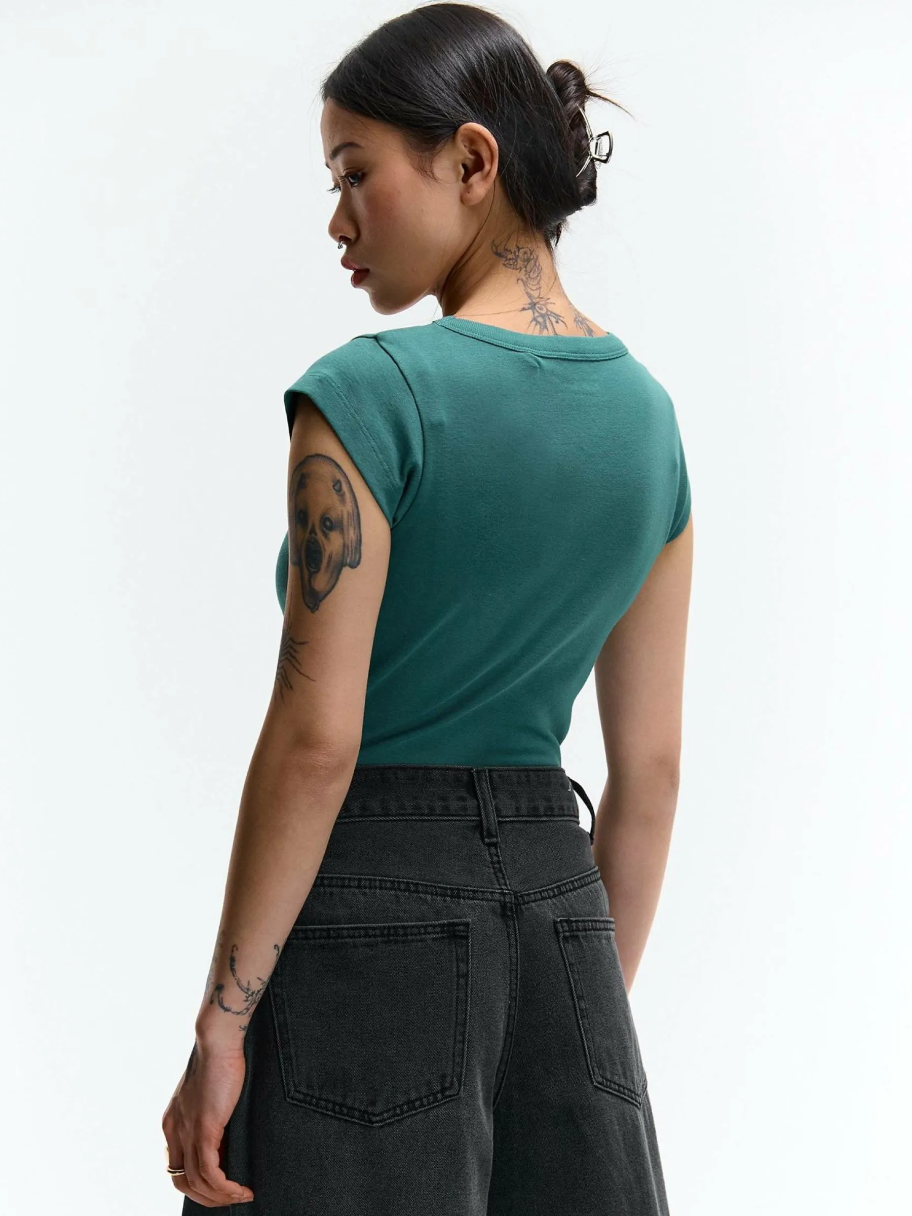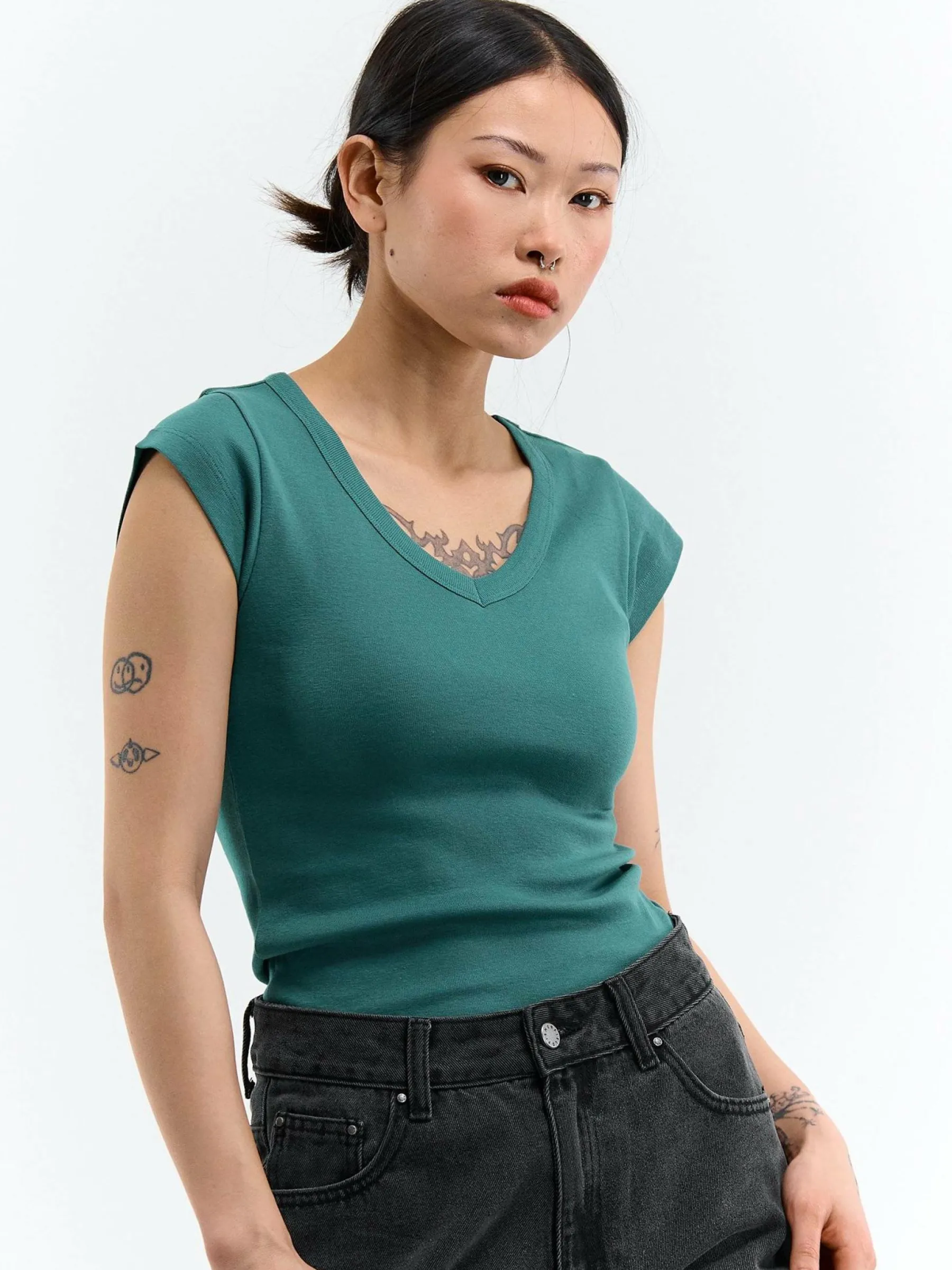 Zdjęcia z modelką mogą nie odpowiadać rzeczywistemu kolorowi produktu.Kolor: zielonyKrój: regularTyp: koszulkaRekaw…