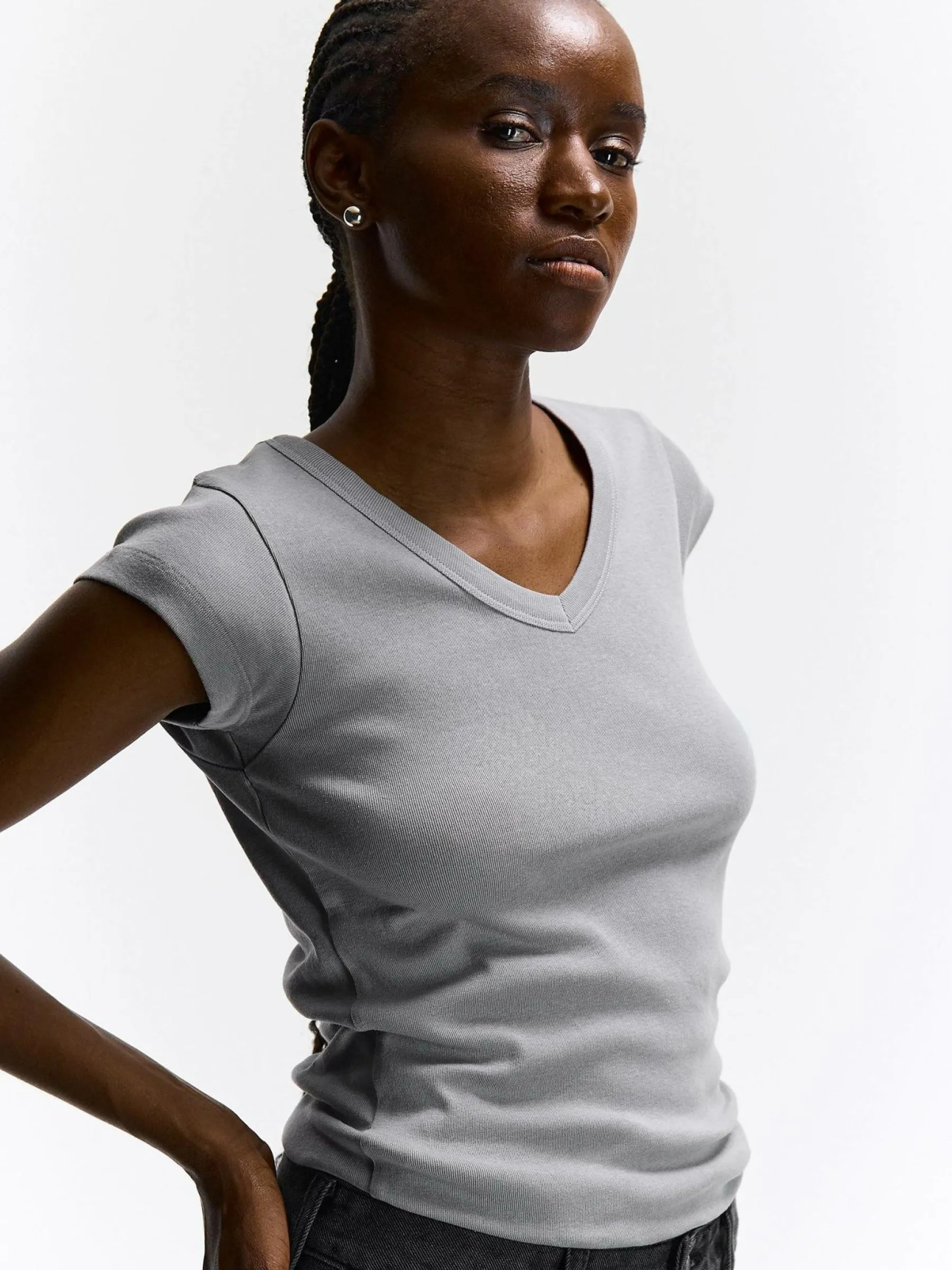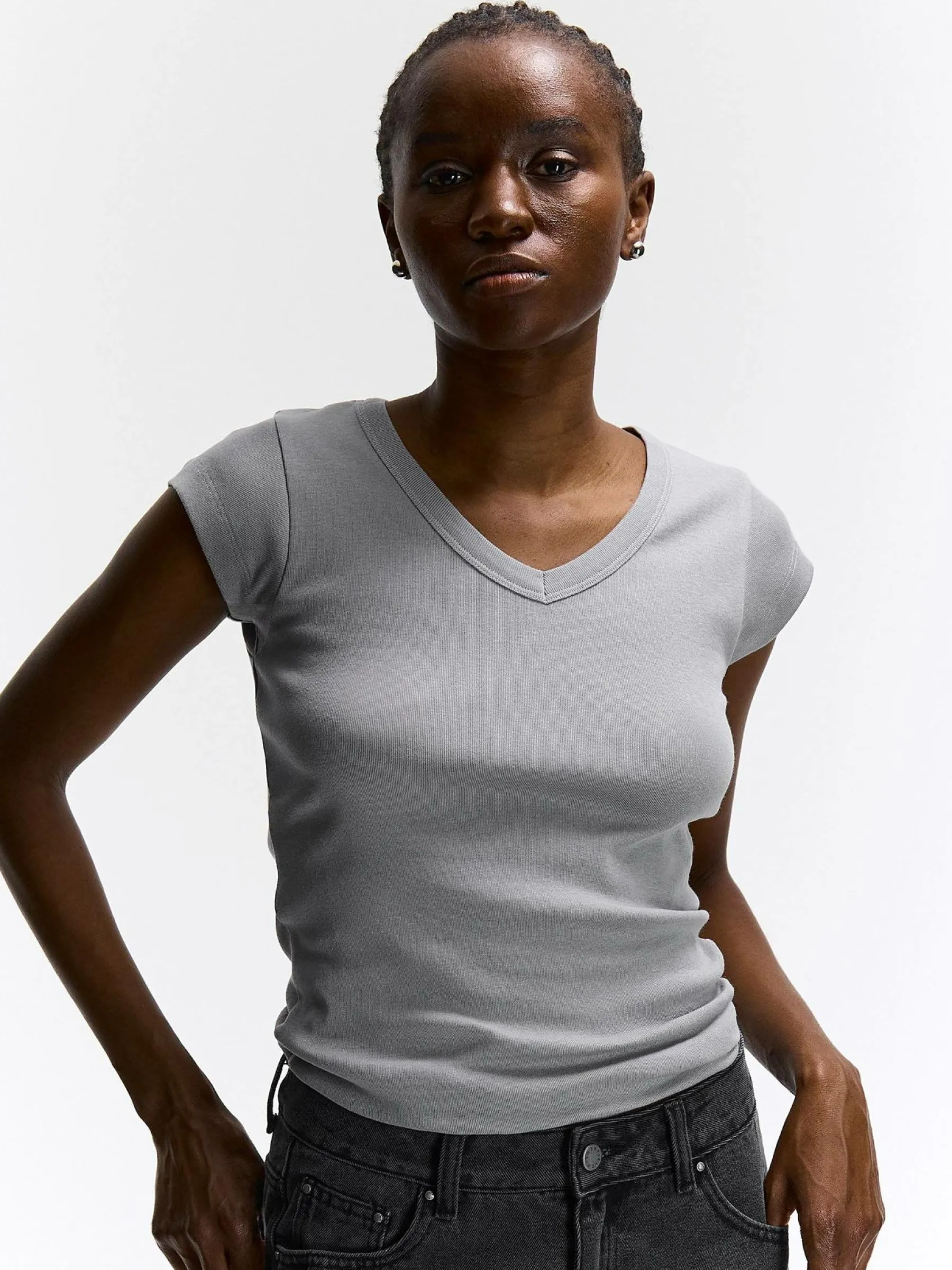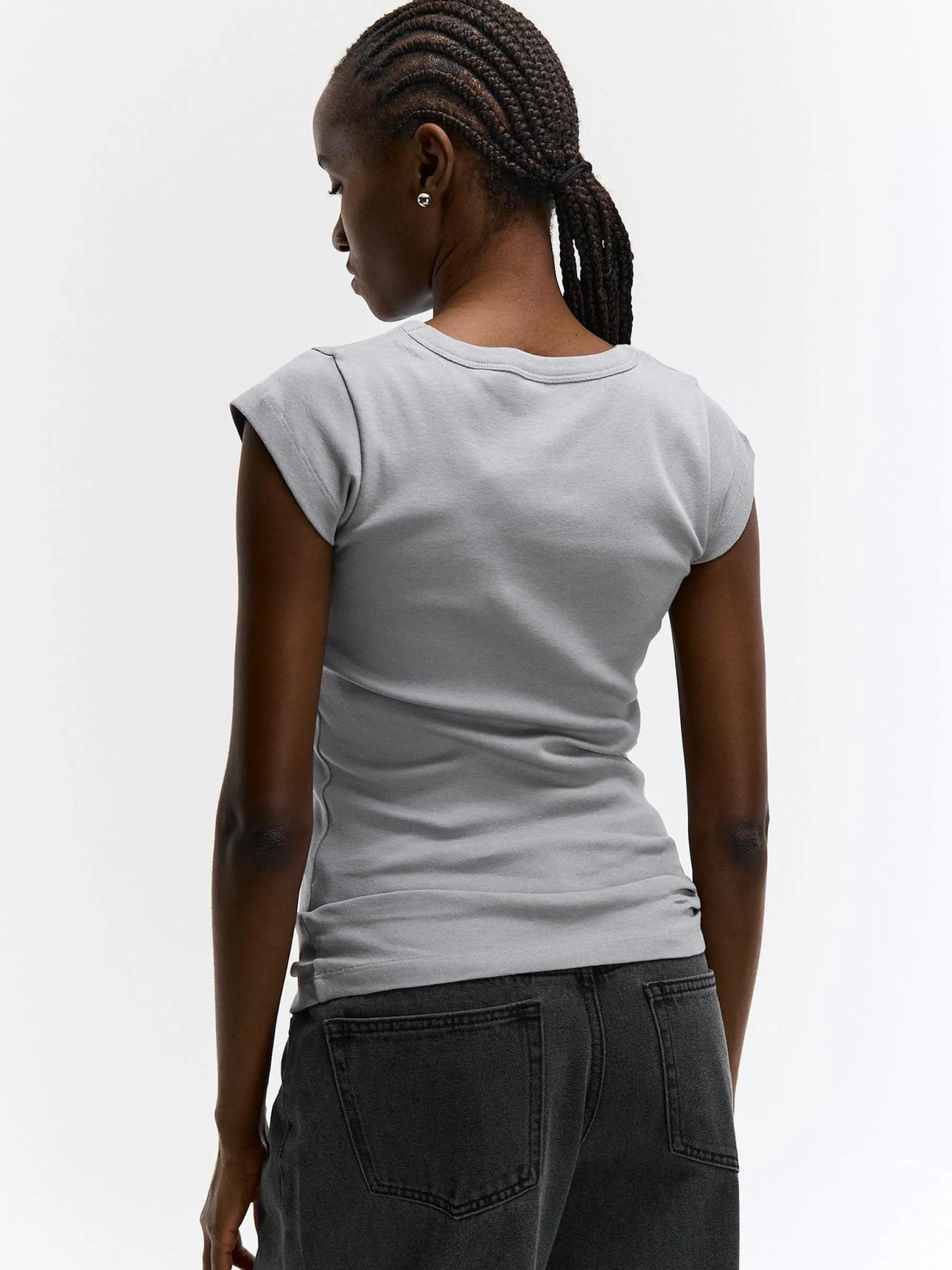 Kolor: szaryKrój: regularTyp: koszulkaRekaw: krótki rękawDługość: krótkiPattern style: pojedynczy kolorDetal: nad…
