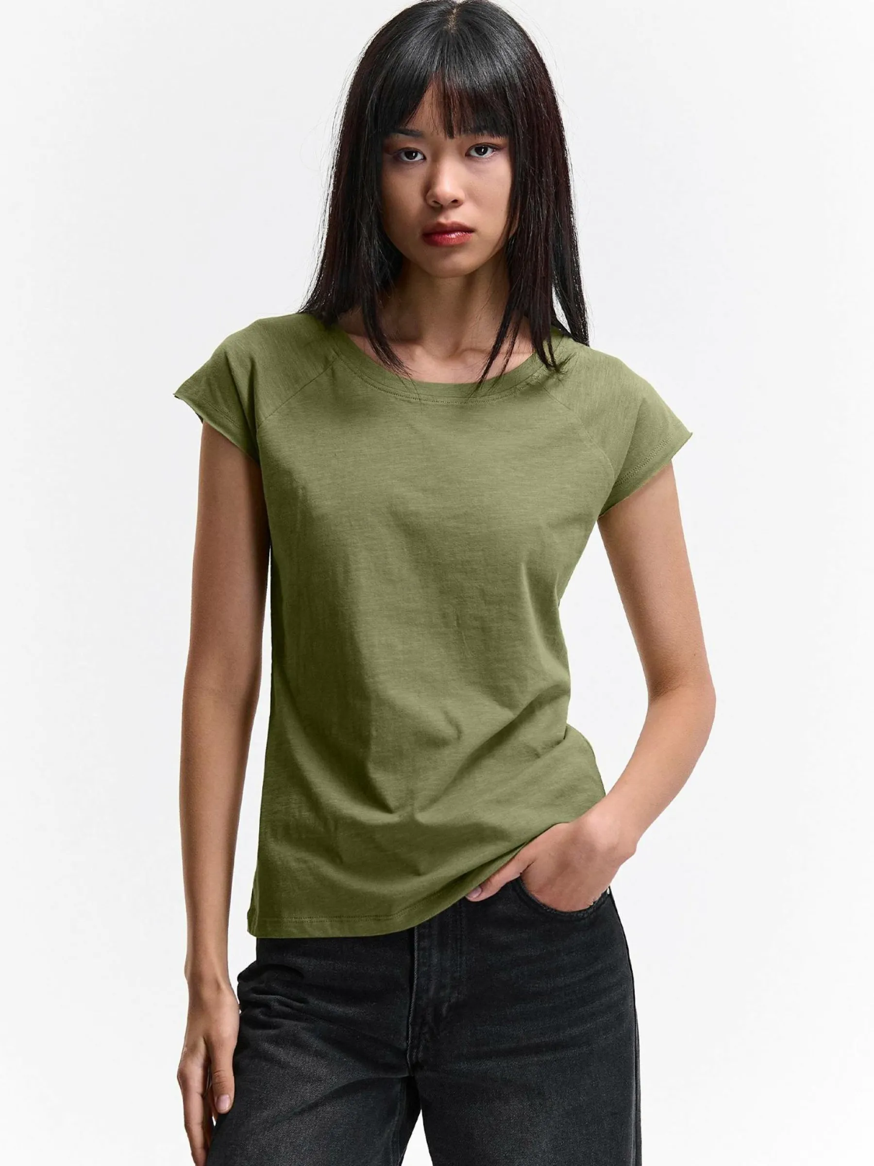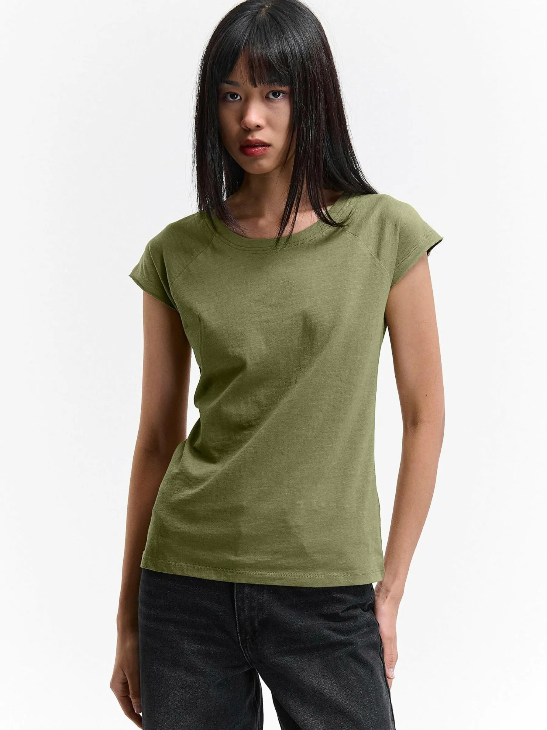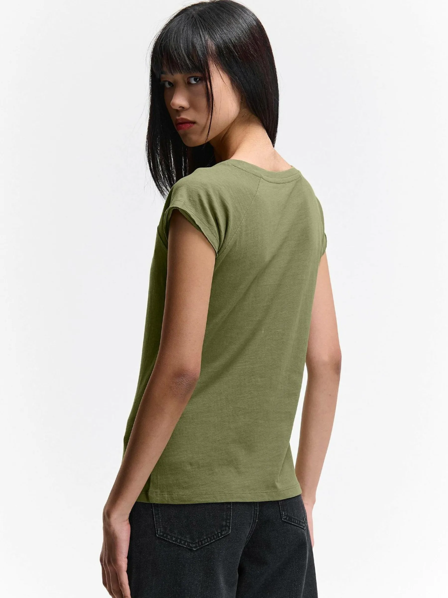 Kolor: khakiKrój: regularTyp: koszulkaRekaw: krótki rękawDługość: krótkiPattern style: pojedynczy kolorDetal: nad…
