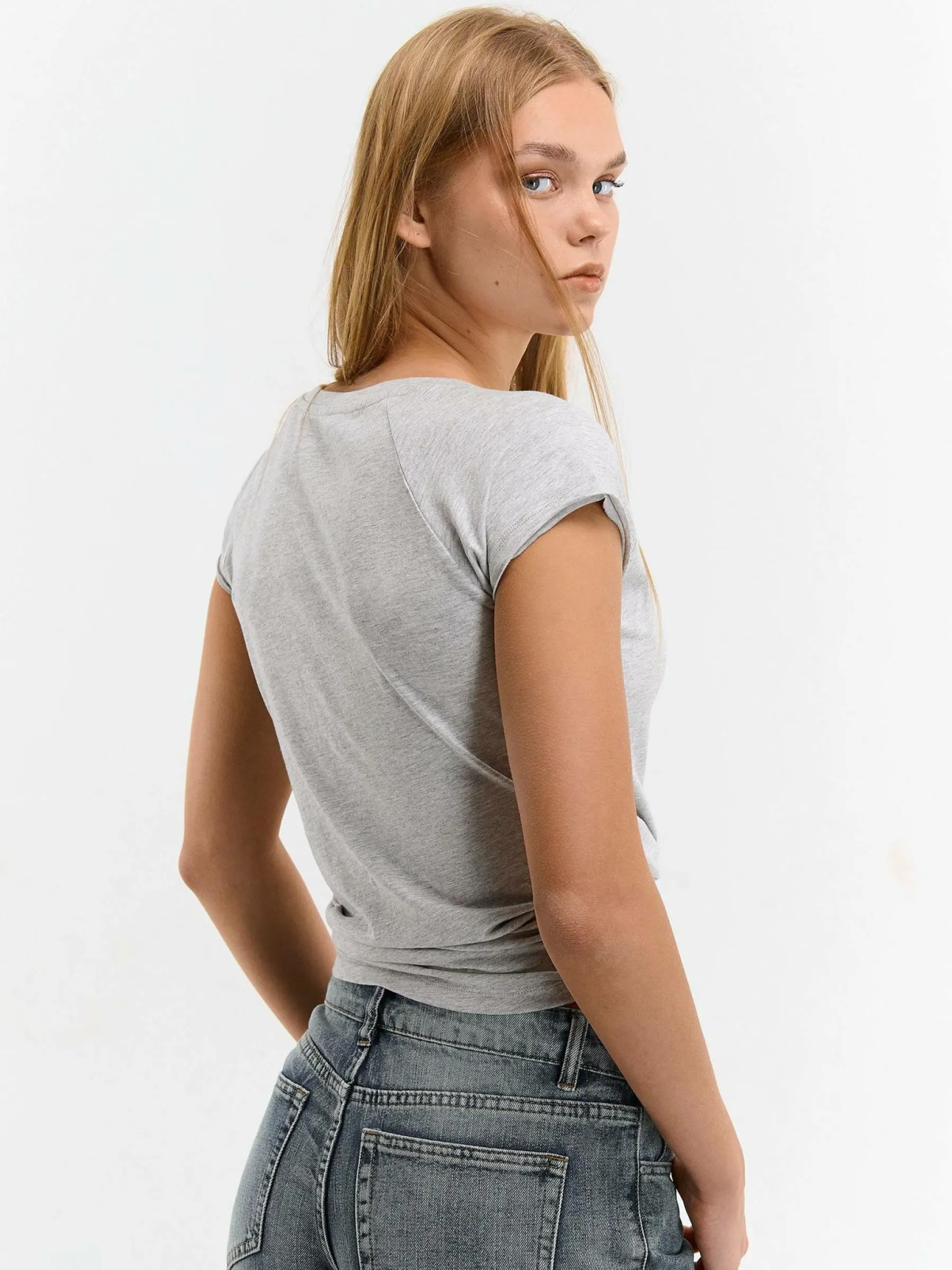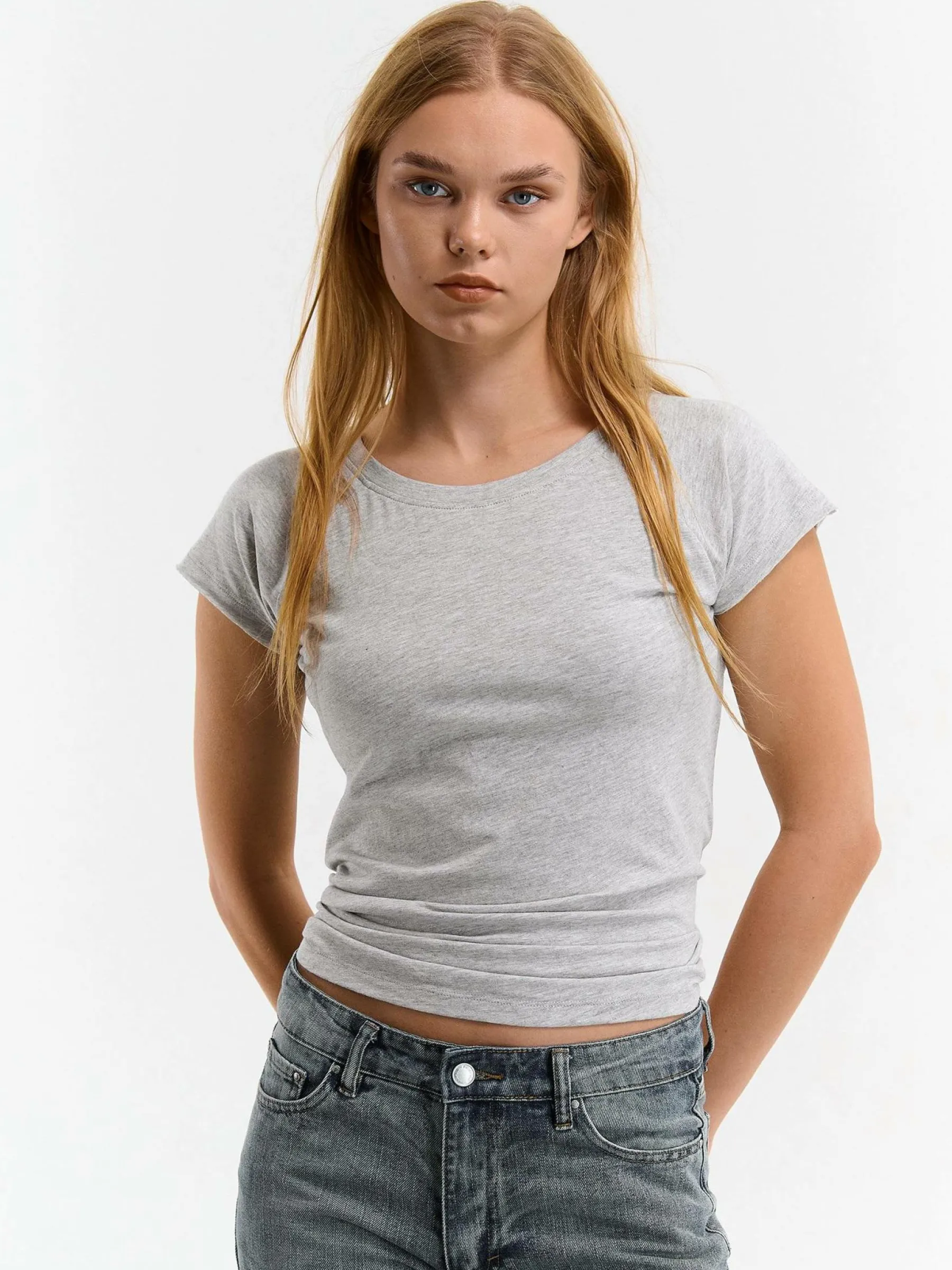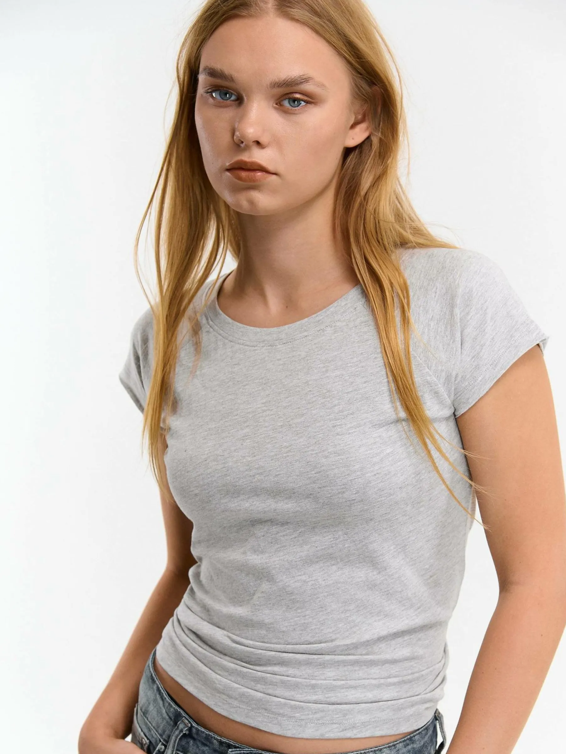 Kolor: szaryKrój: regularTyp: koszulkaRekaw: krótki rękawDługość: krótkiPattern style: pojedynczy kolorDetal: nad…
