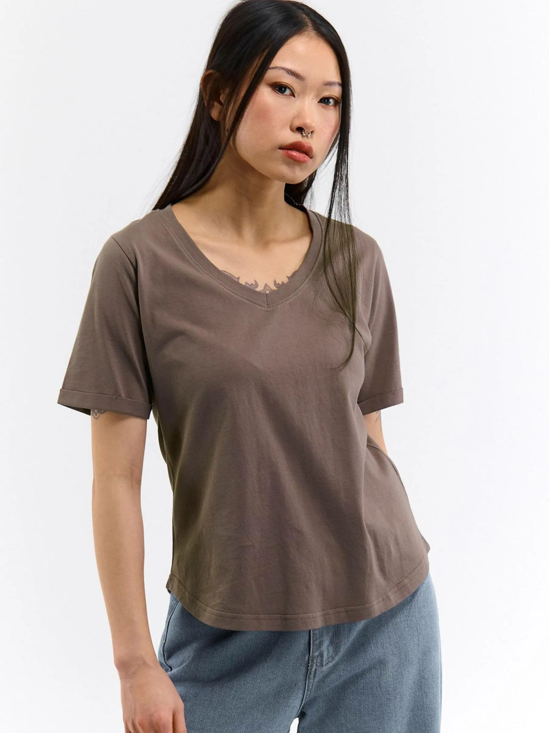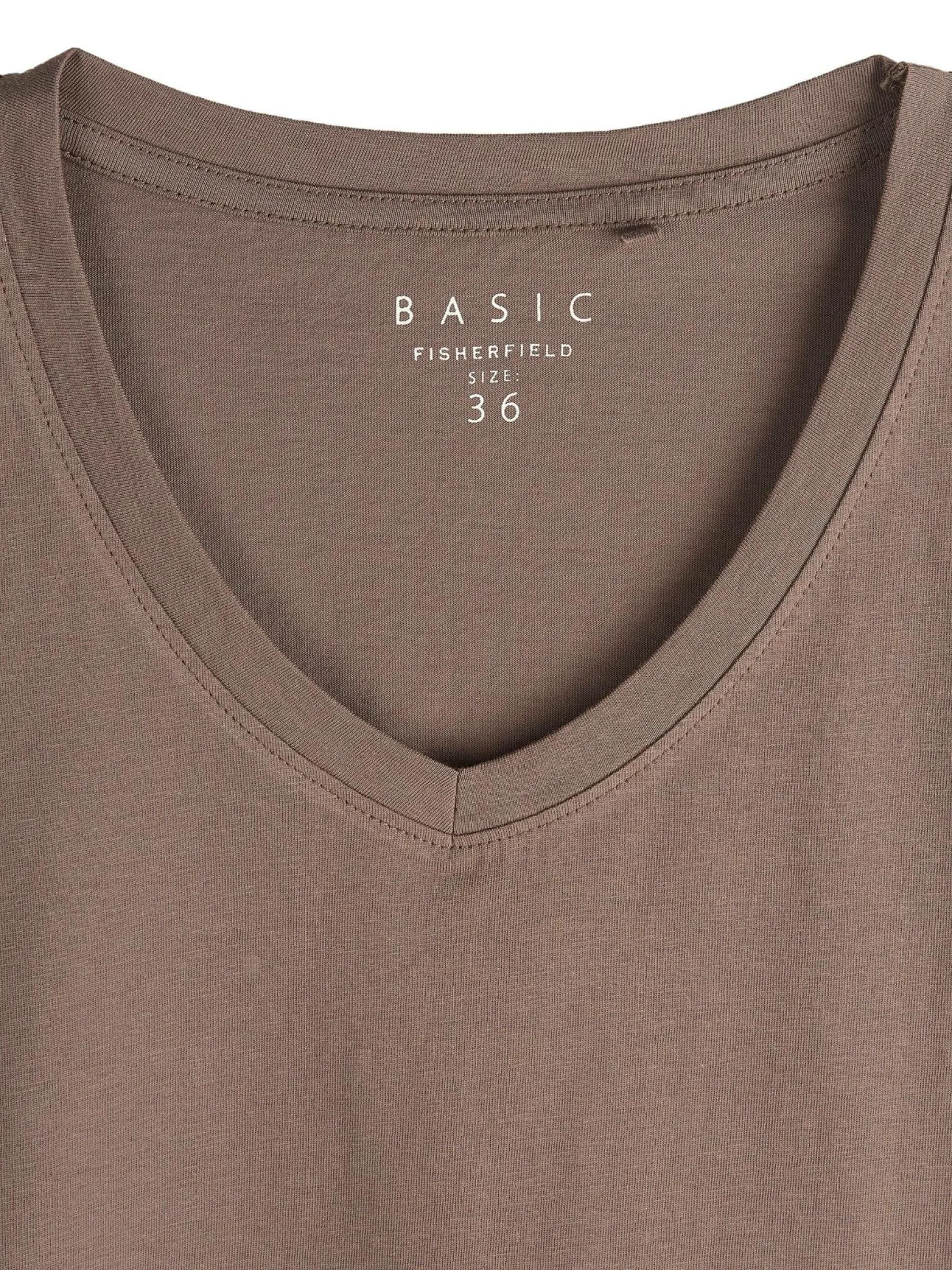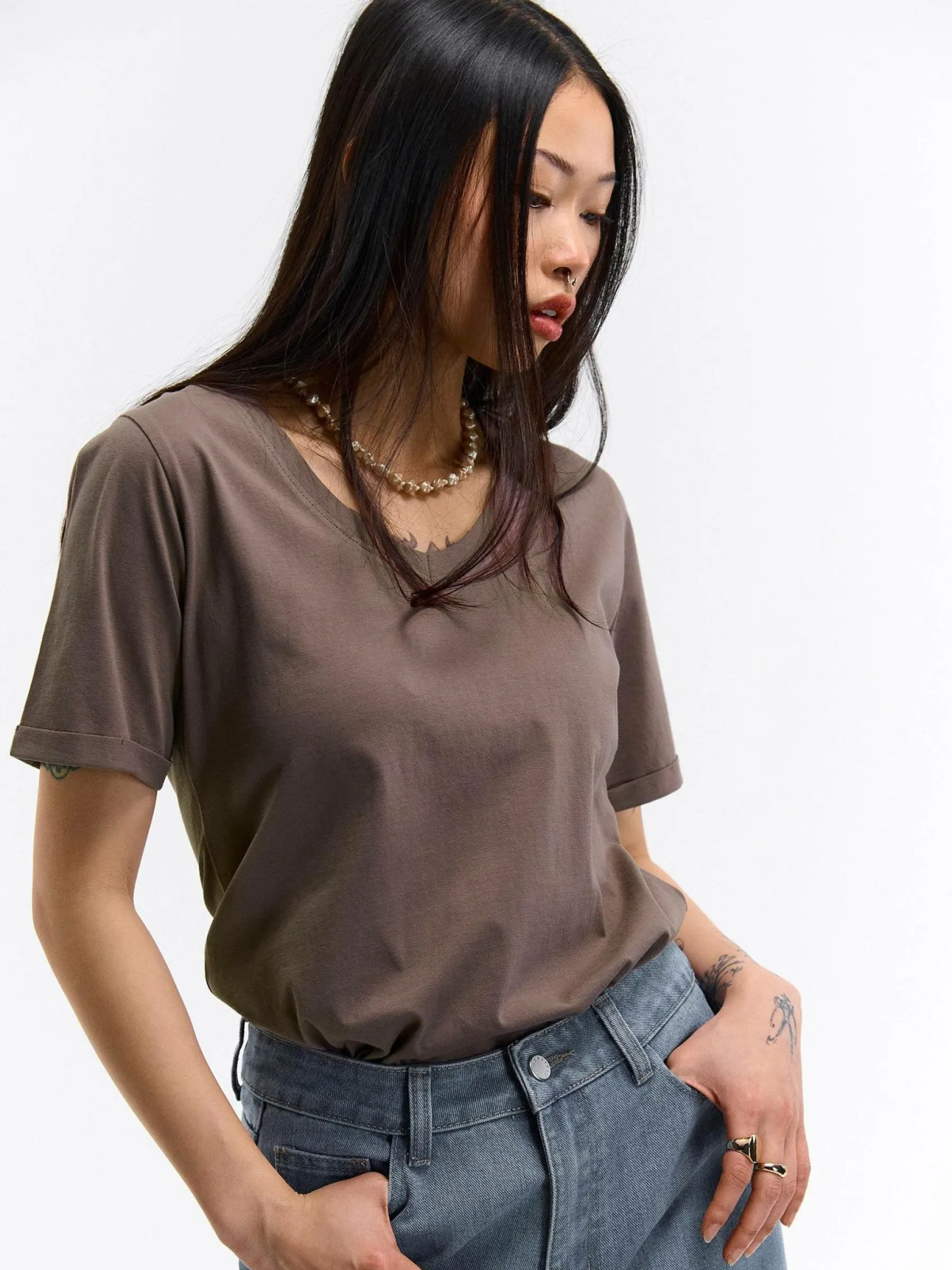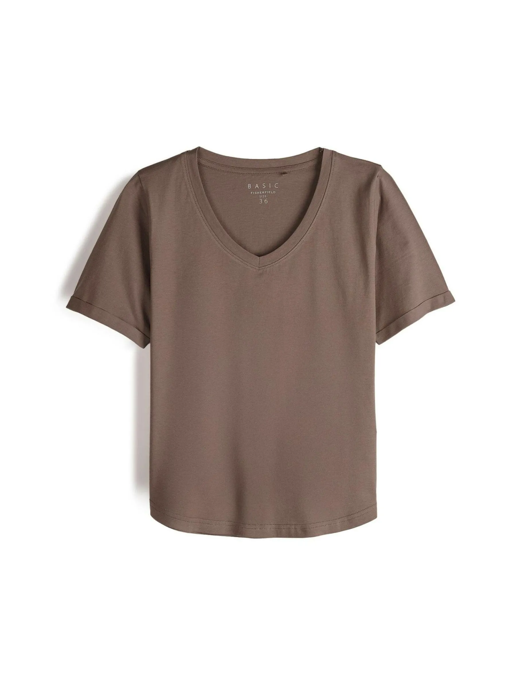 Kolor: brązowyKrój: regularTyp: koszulkaRekaw: krótki rękawDługość: krótkiPattern style: pojedynczy kolorDetal: …