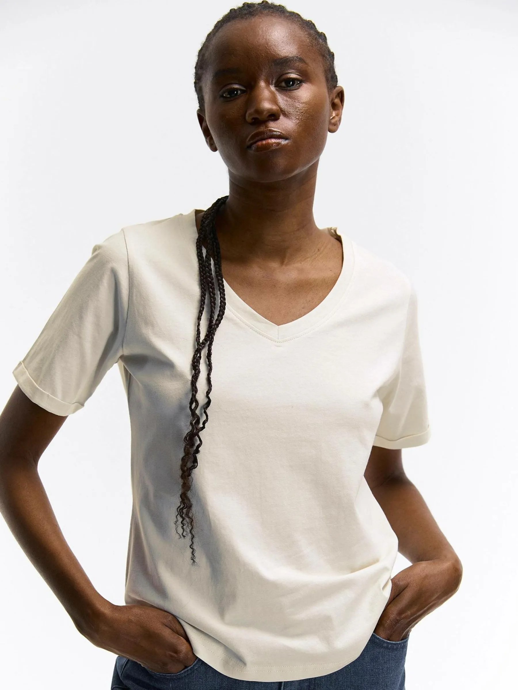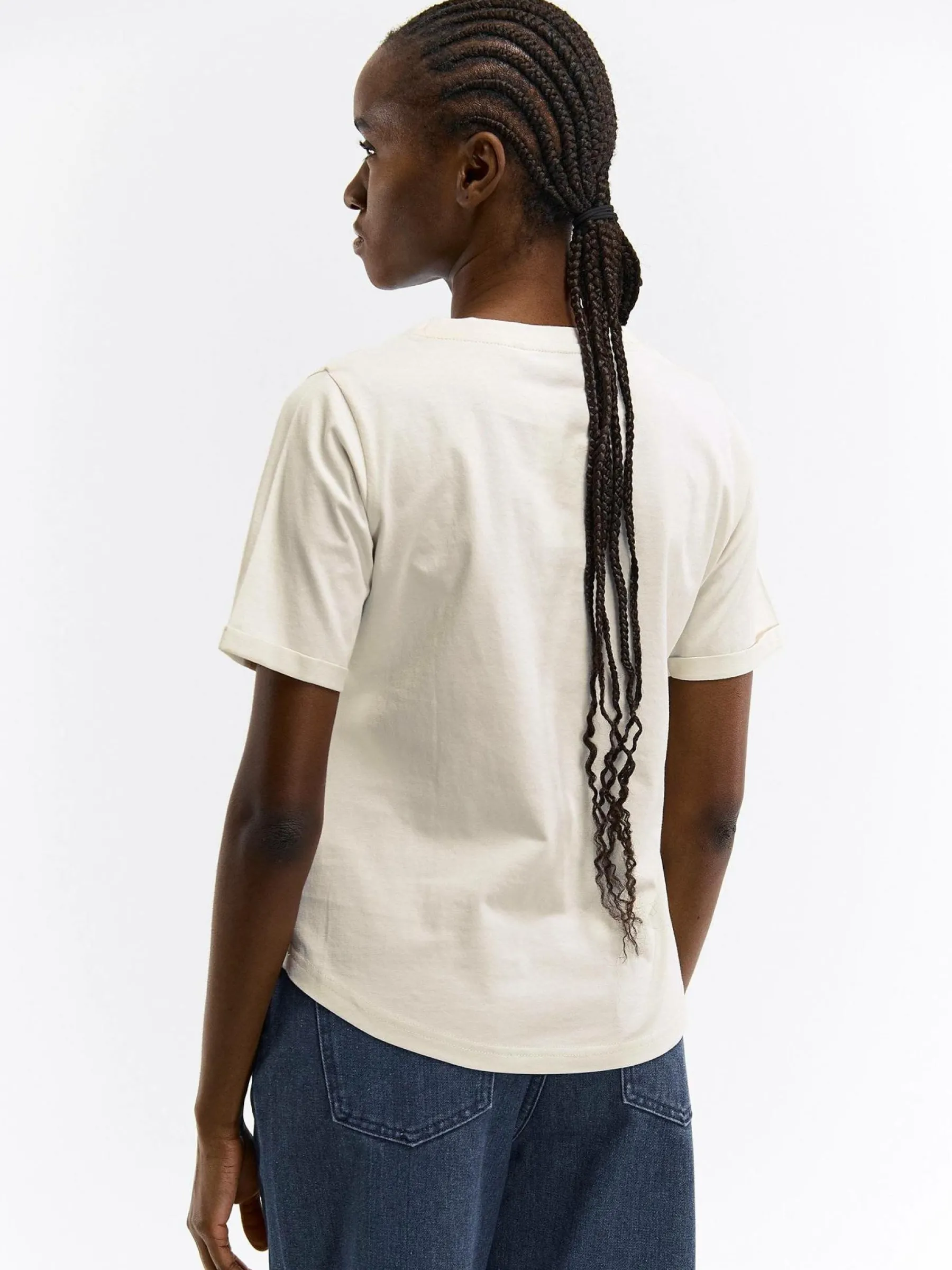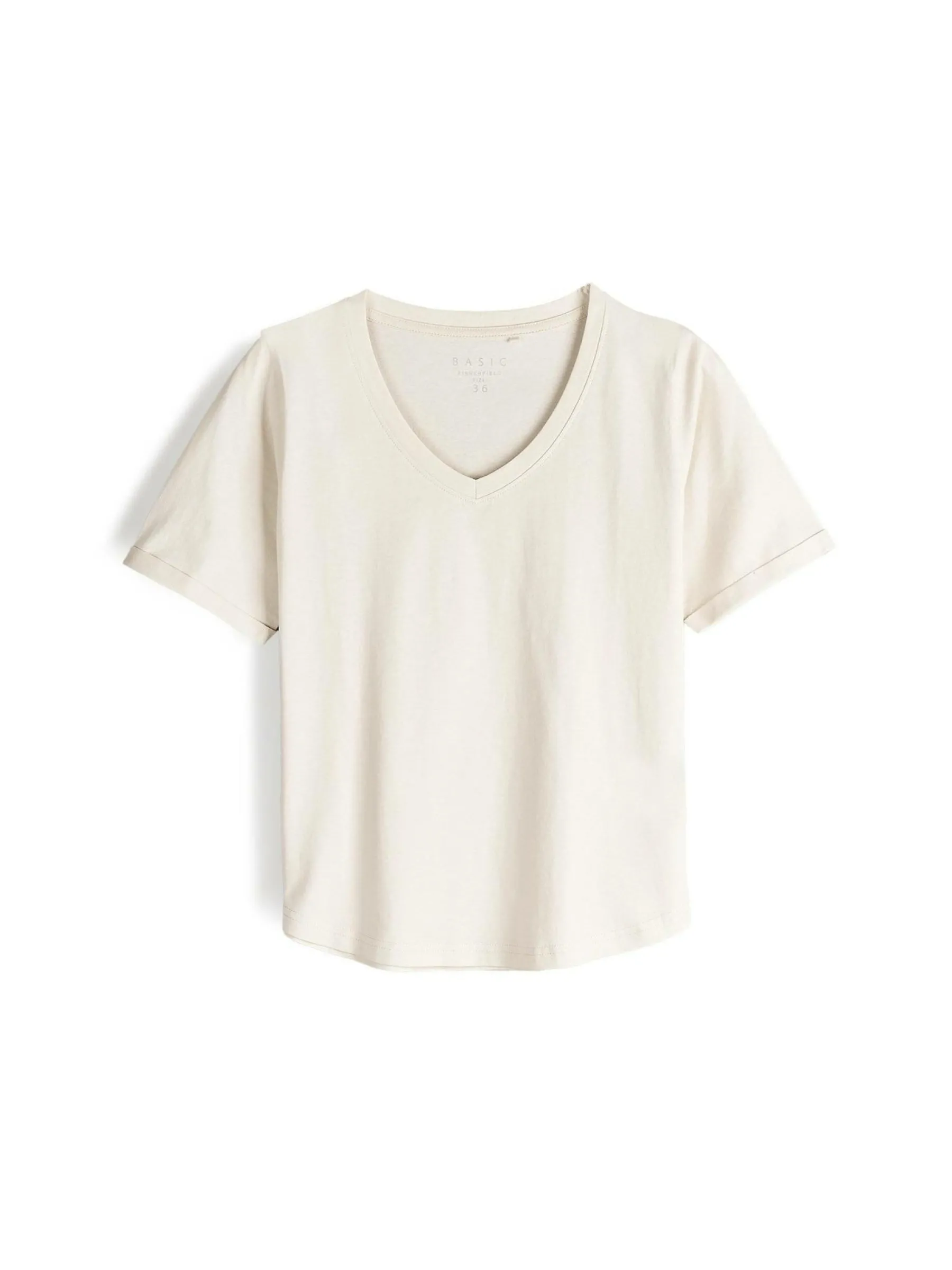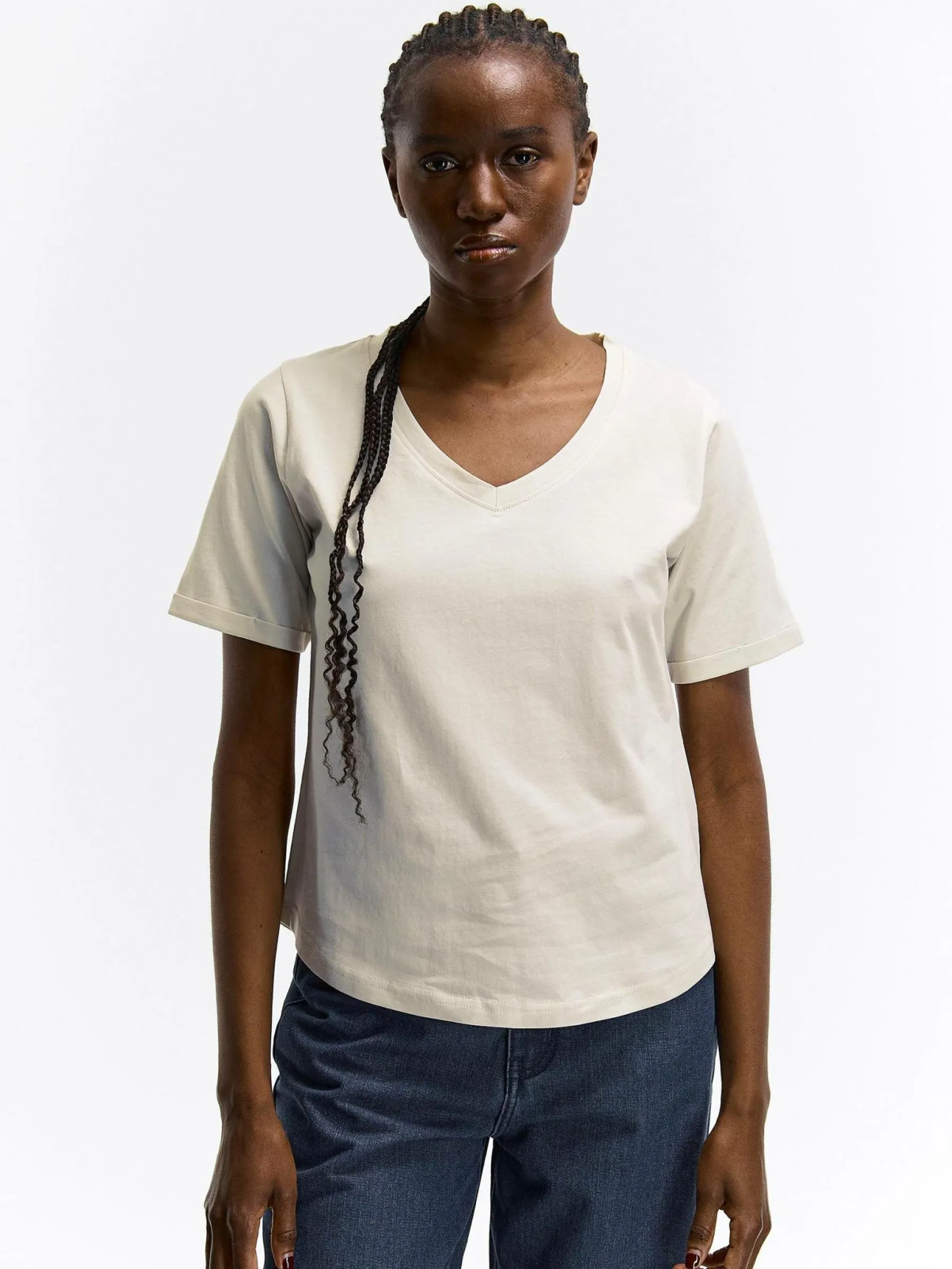 Kolor: beżowyKrój: regularTyp: koszulkaRekaw: krótki rękawDługość: krótkiPattern style: pojedynczy kolorDetal: n…