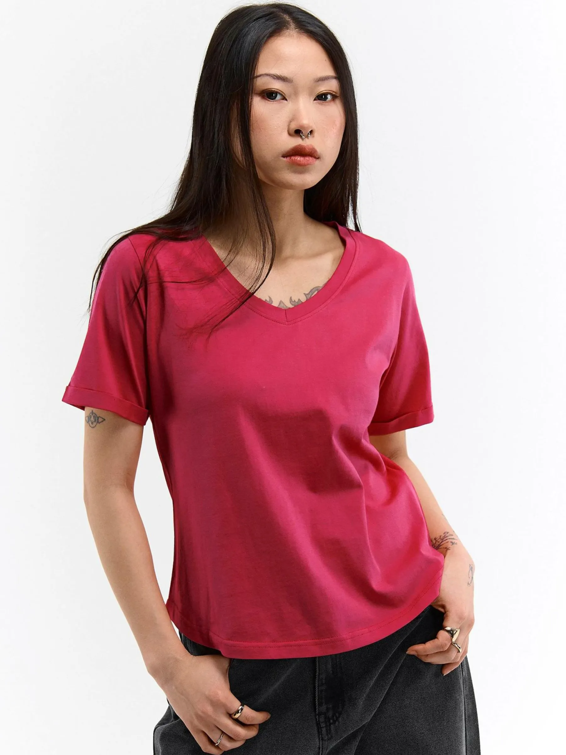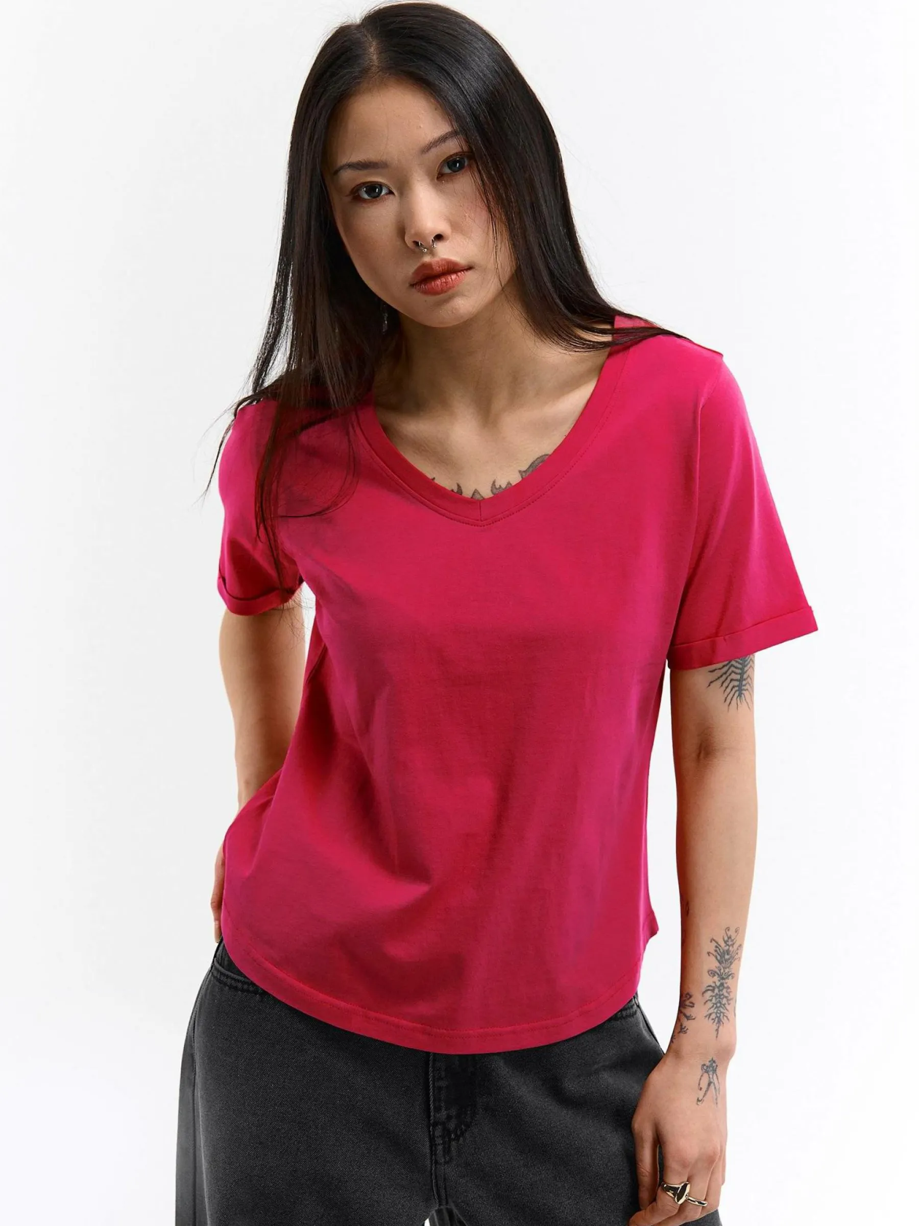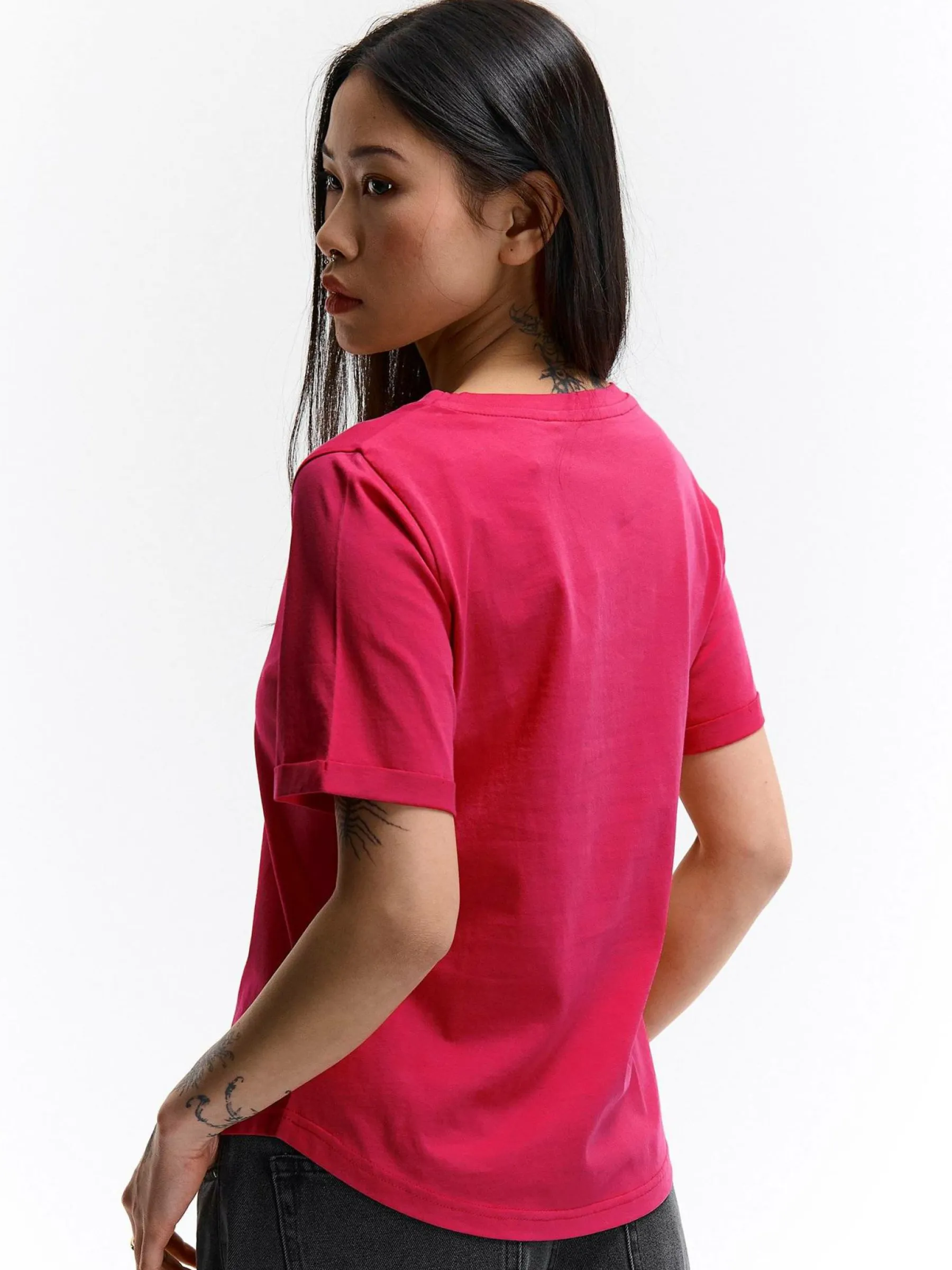 Kolor: czerwonyKrój: regularTyp: koszulkaRekaw: krótki rękawDługość: krótkiPattern style: pojedynczy kolorDetal: …
