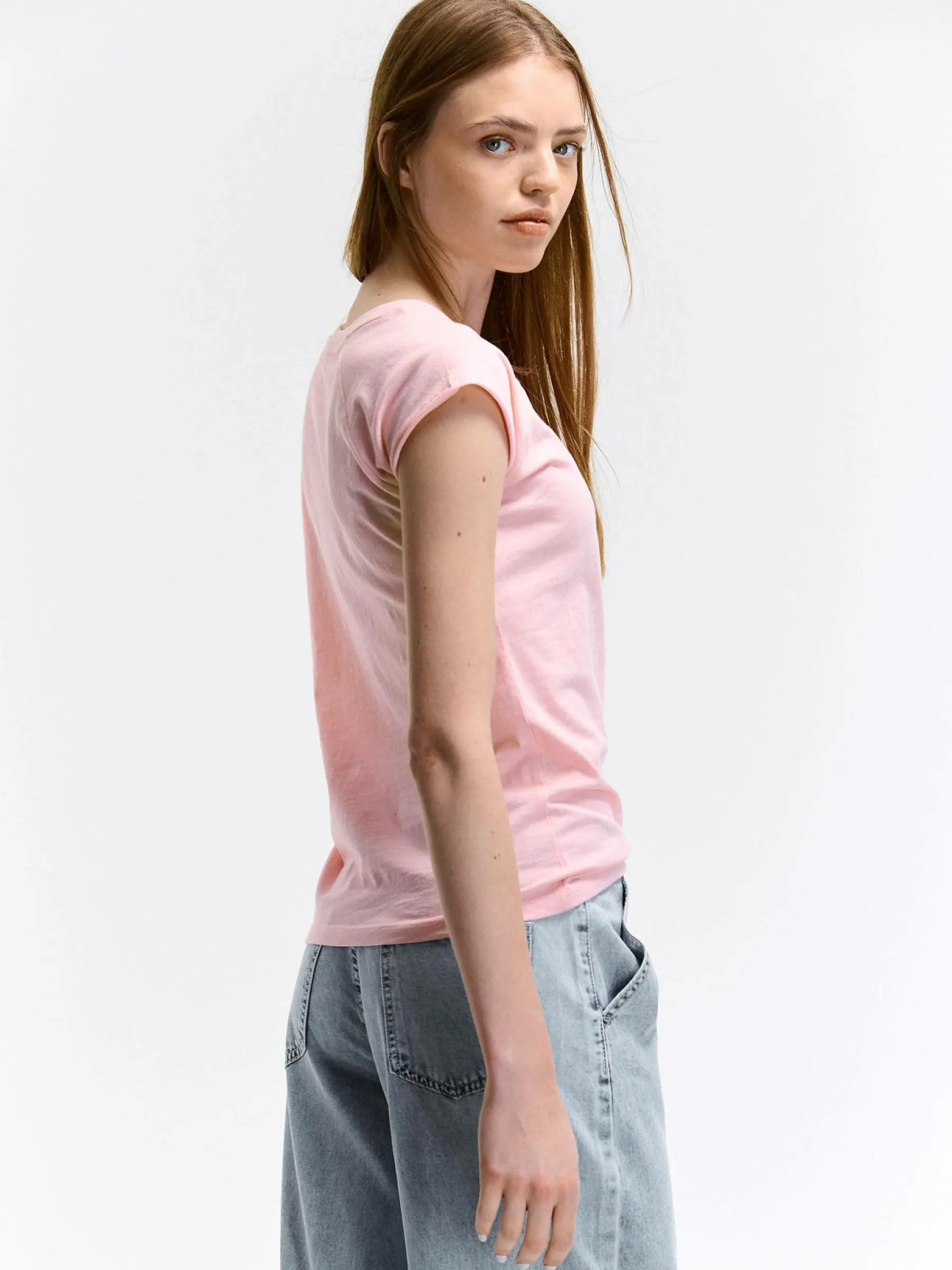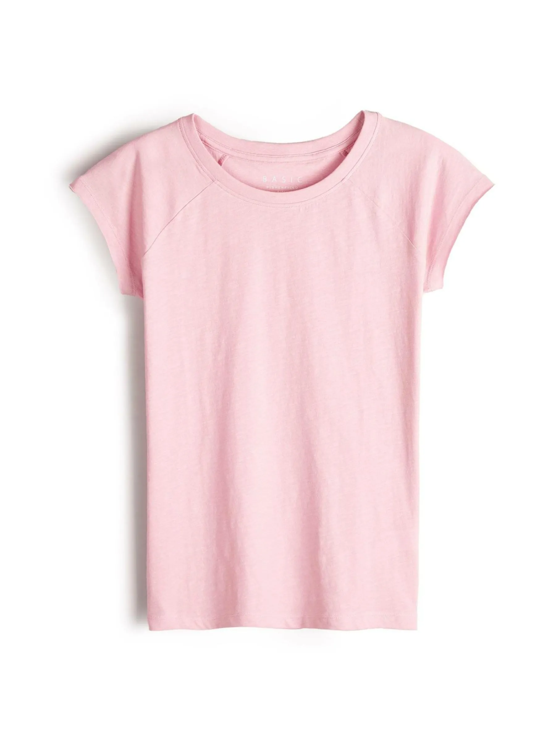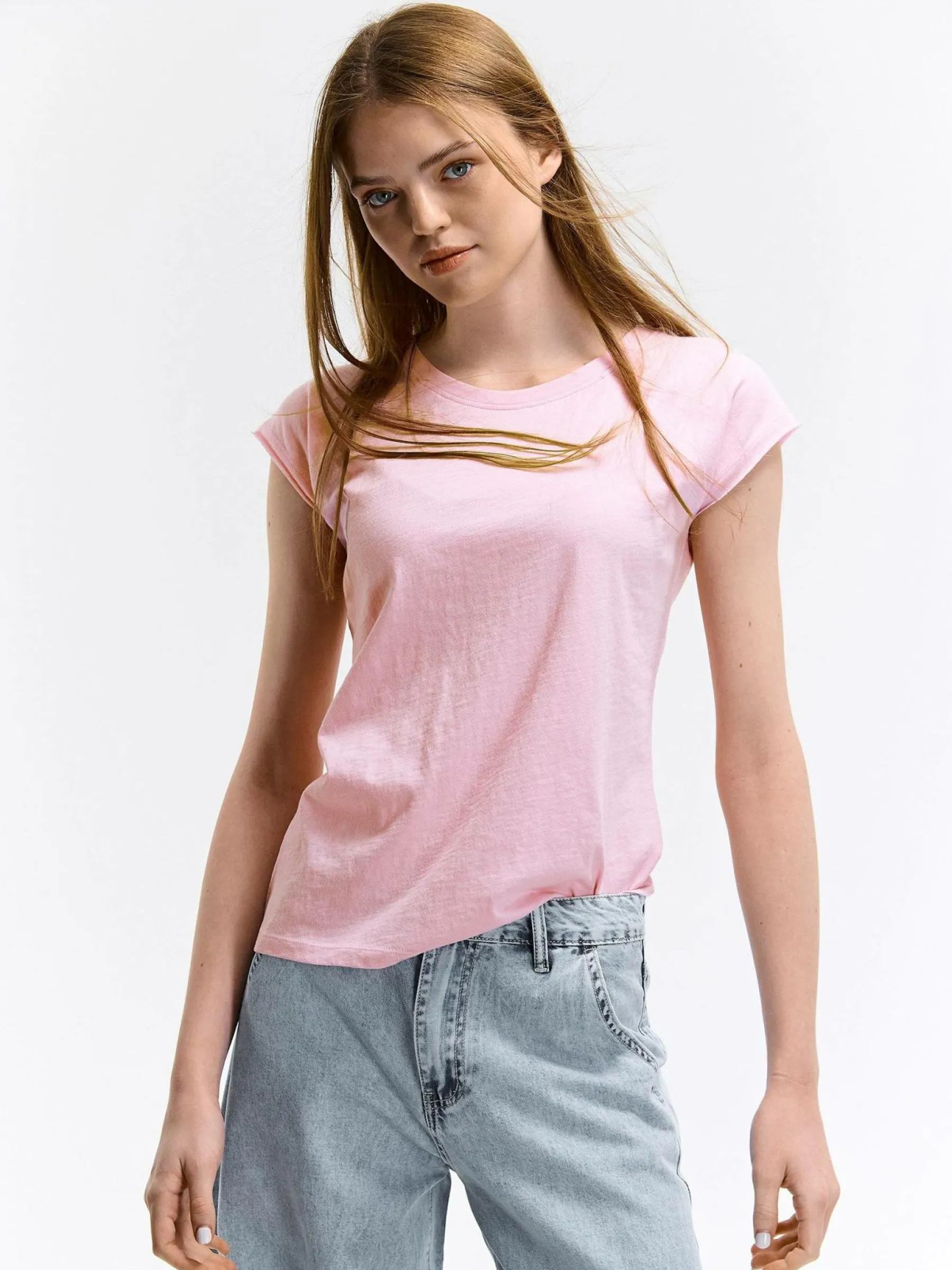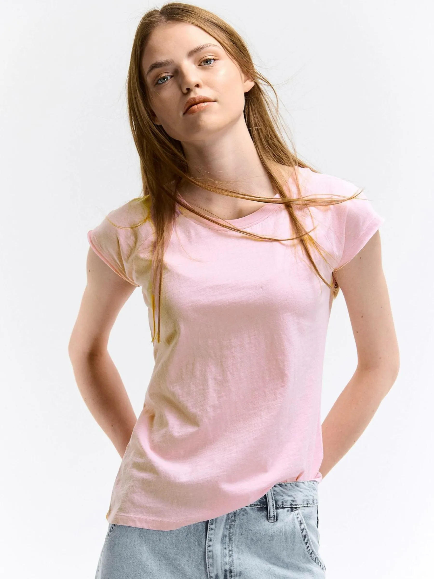 Kolor: różowyKrój: regularTyp: koszulkaRekaw: krótki rękawDługość: krótkiPattern style: pojedynczy kolorDetal: …