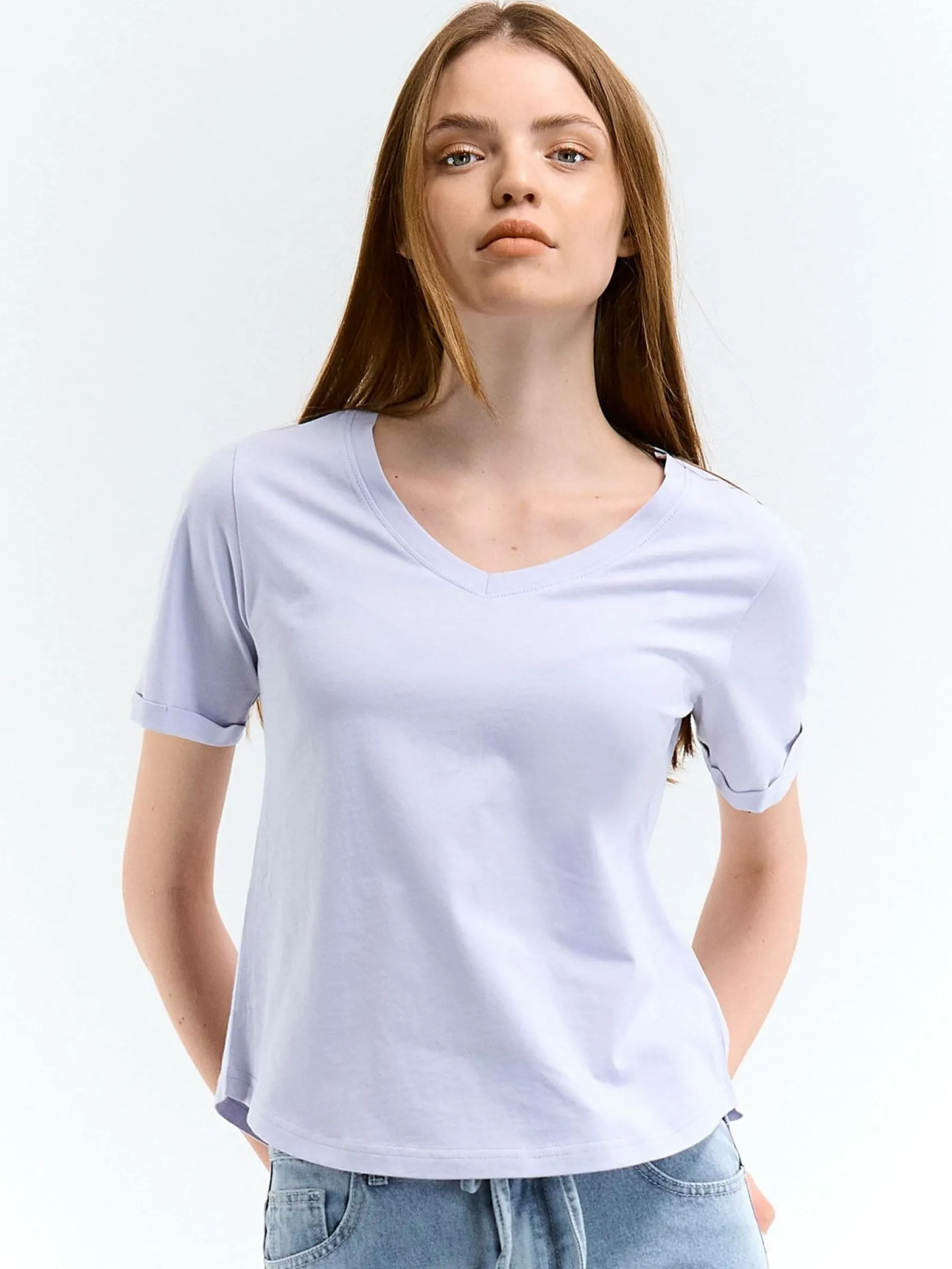 Kolor: purpurowyKrój: regularTyp: koszulkaRekaw: krótki rękawDługość: krótkiPattern style: pojedynczy kolorDetal:…