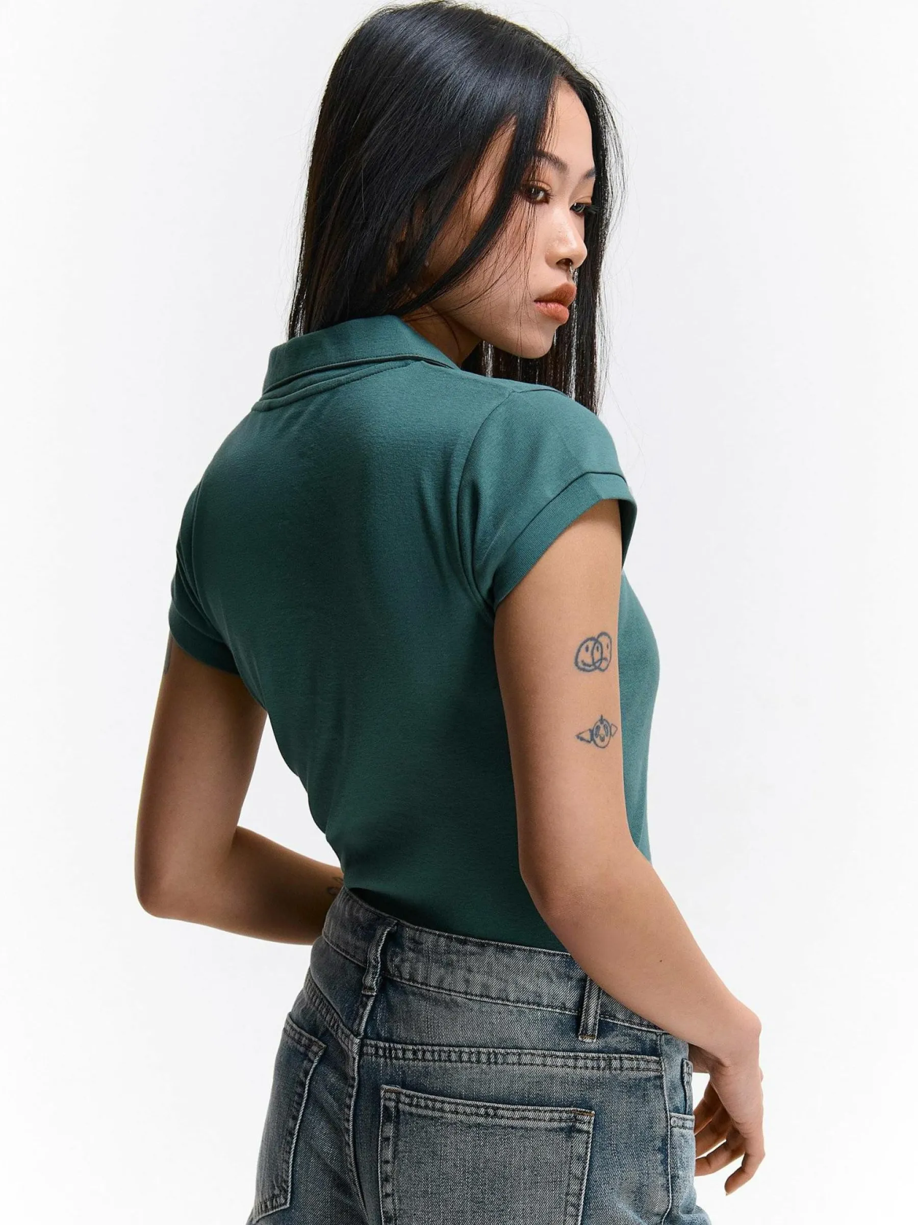 Kolor: zielonyKrój: poloTyp: koszulkaRekaw: krótki rękawDługość: krótkiPattern style: pojedynczy kolorDetal: nad …