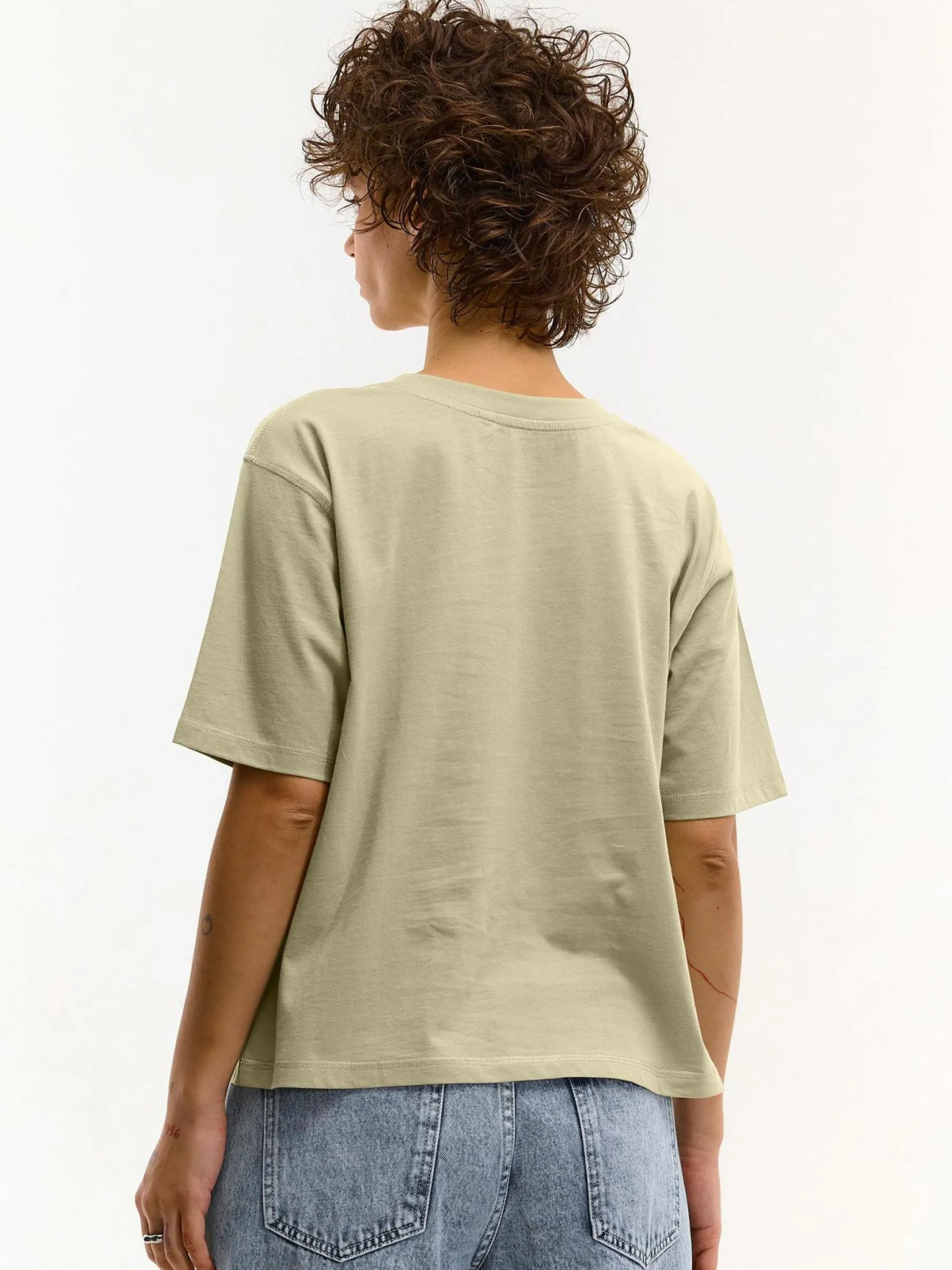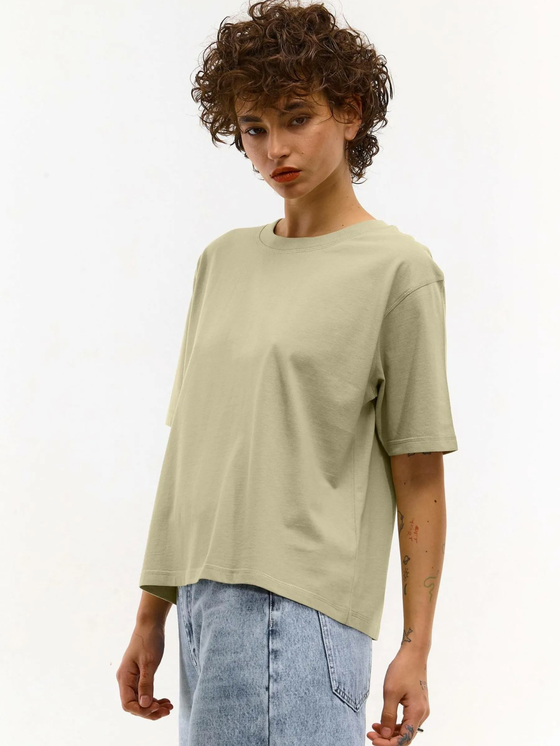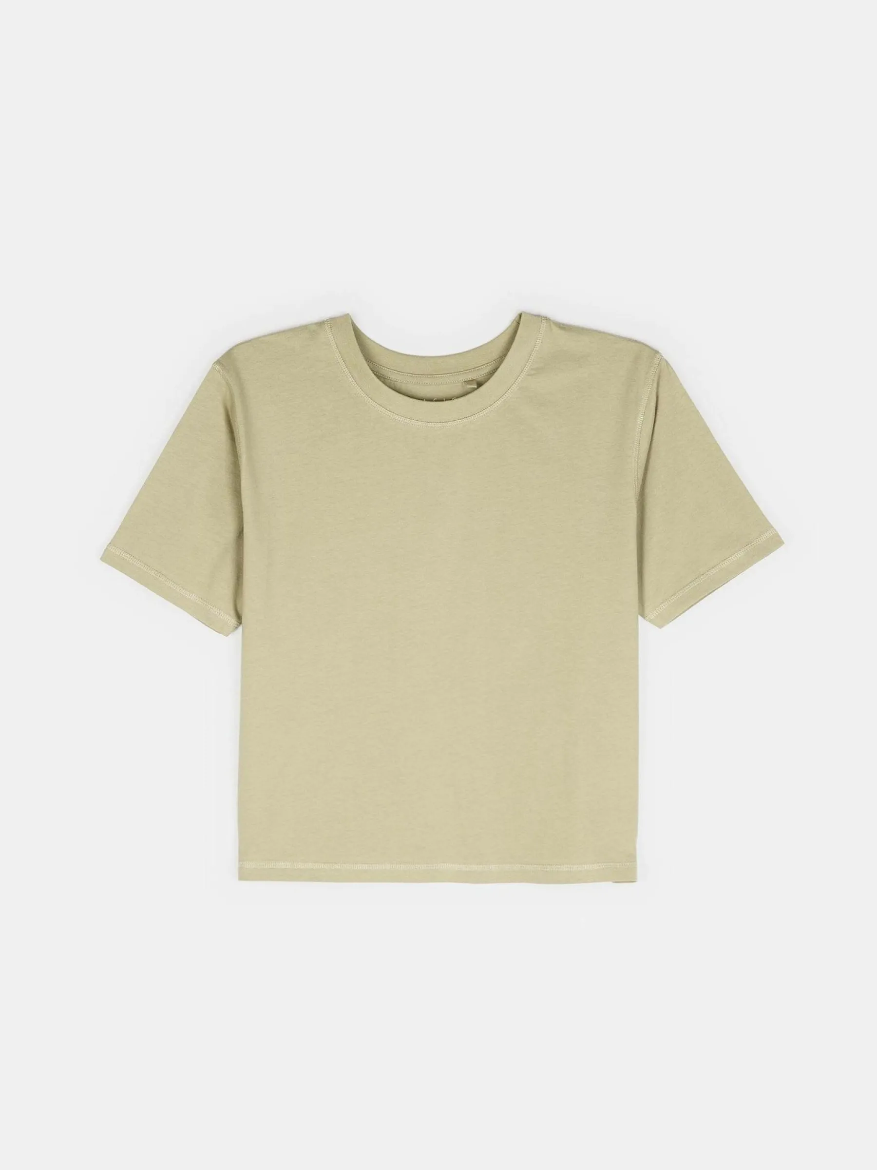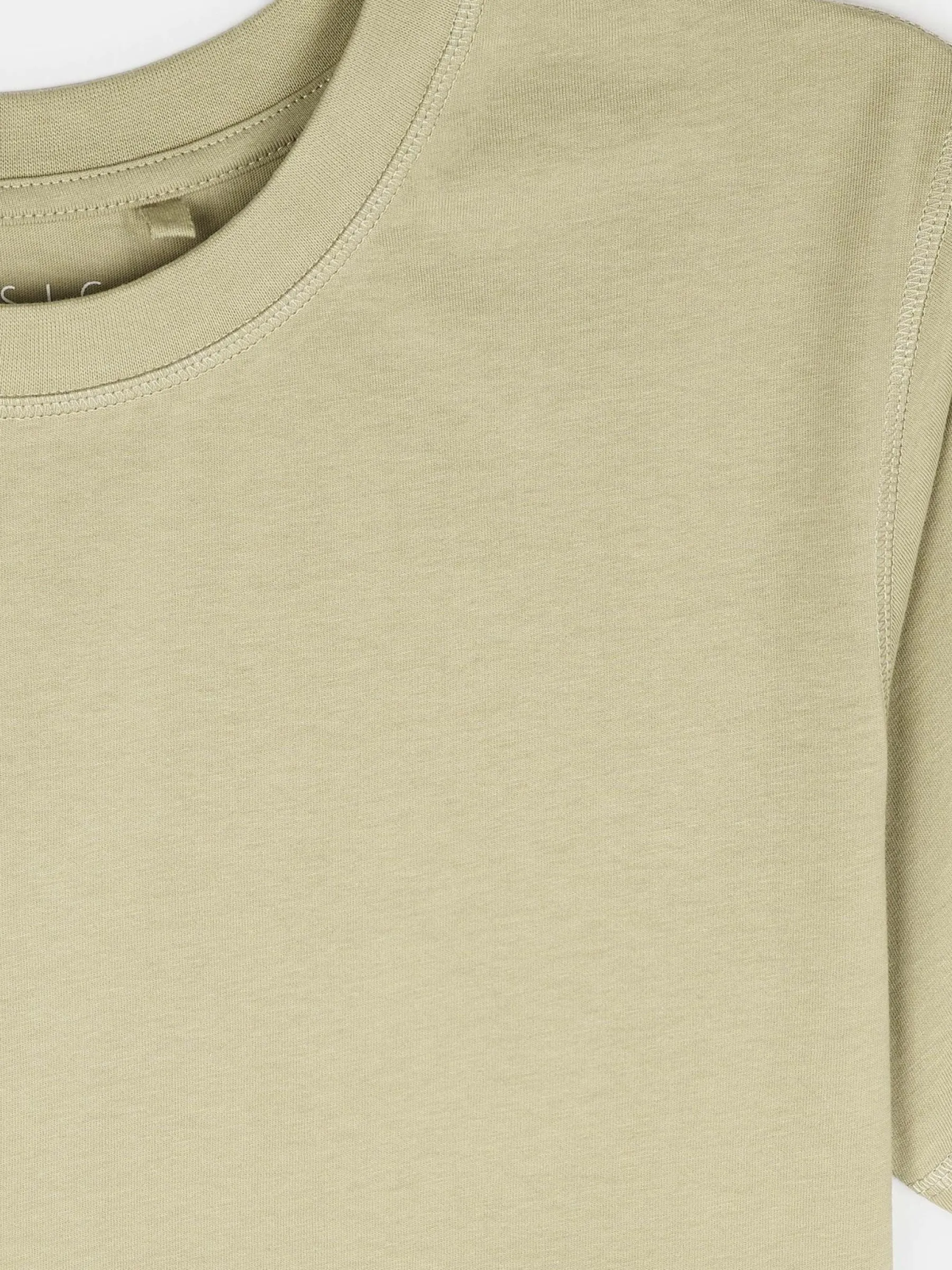 Kolor: zielonyKrój: oversizedTyp: koszulkaRekaw: krótki rękawDługość: krótkiPattern style: pojedynczy kolorDetal:…