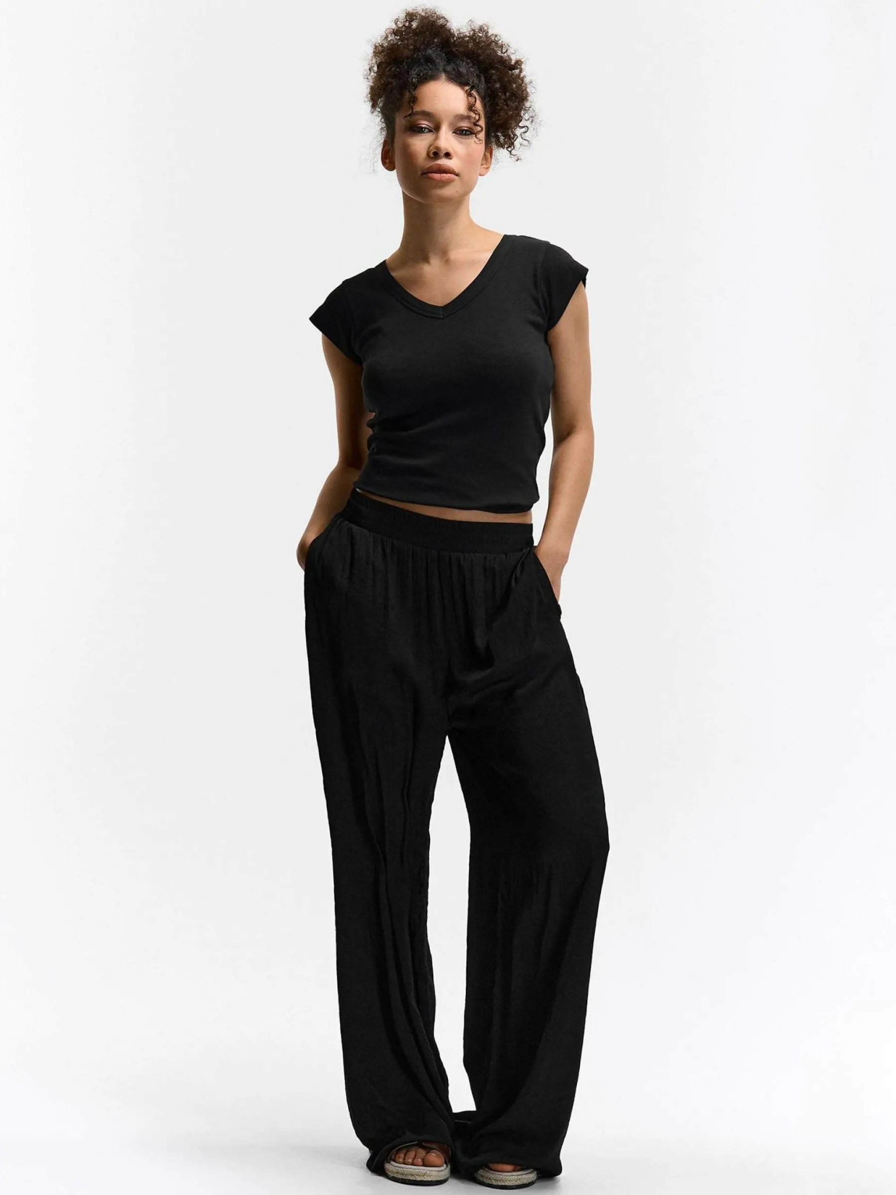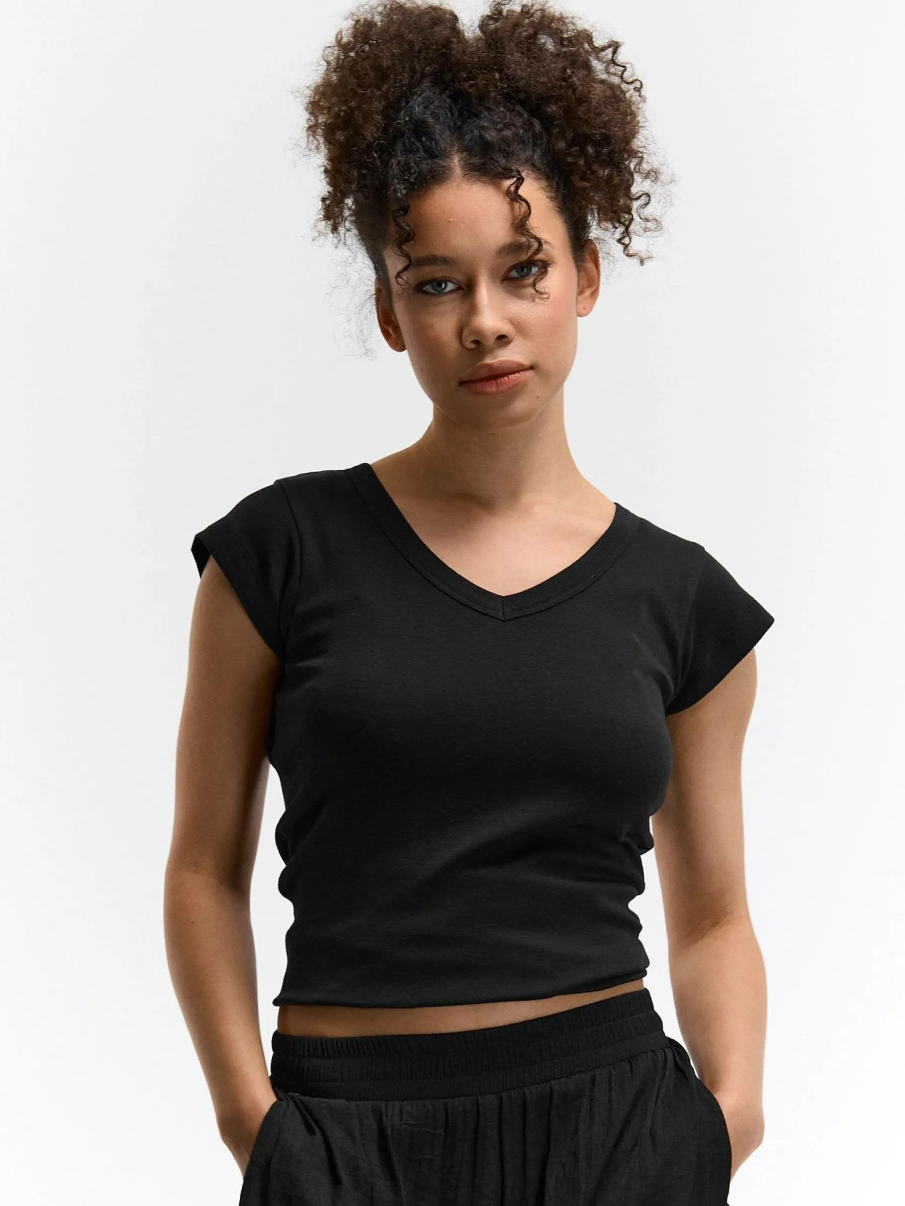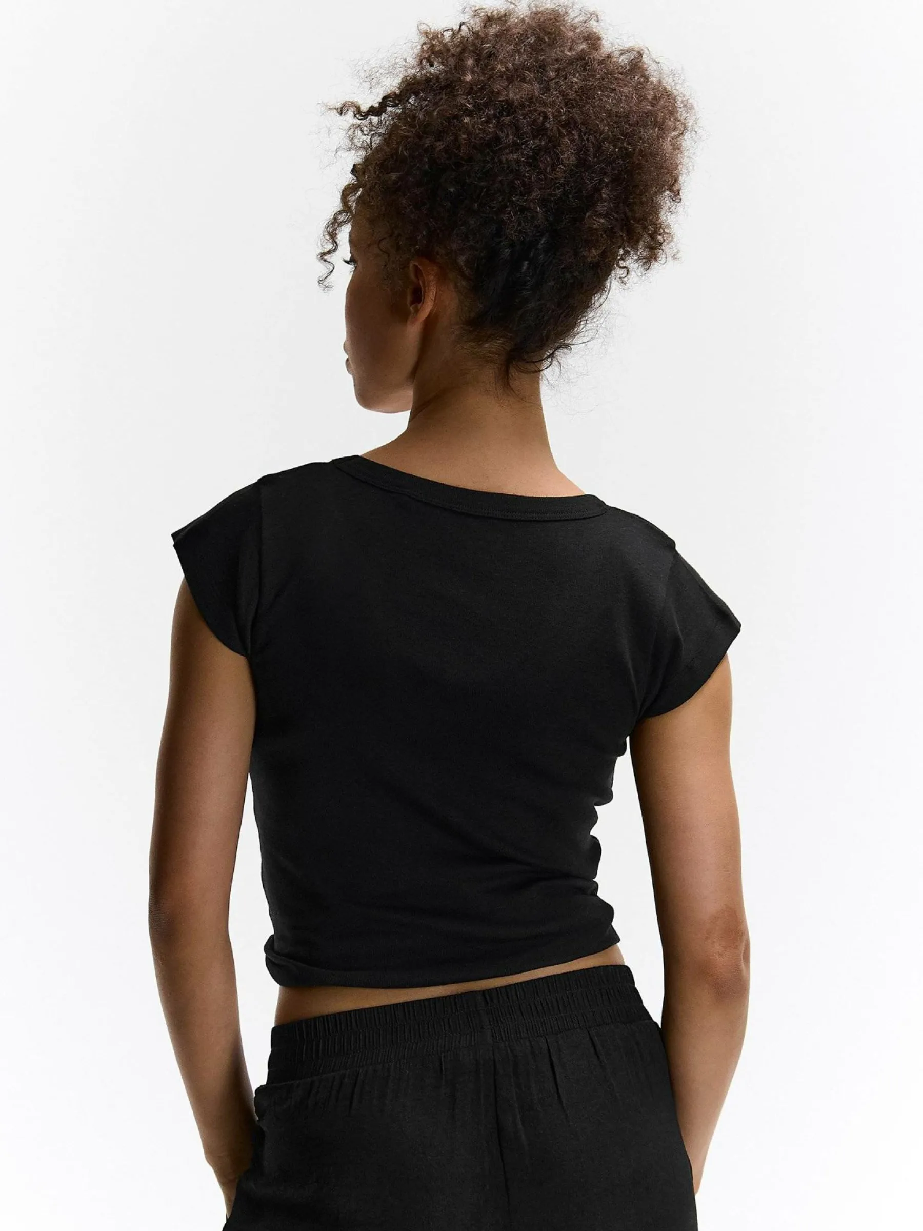 Kolor: czarnyKrój: regularTyp: koszulkaRekaw: krótki rękawDługość: krótkiPattern style: pojedynczy kolorDetal: na…