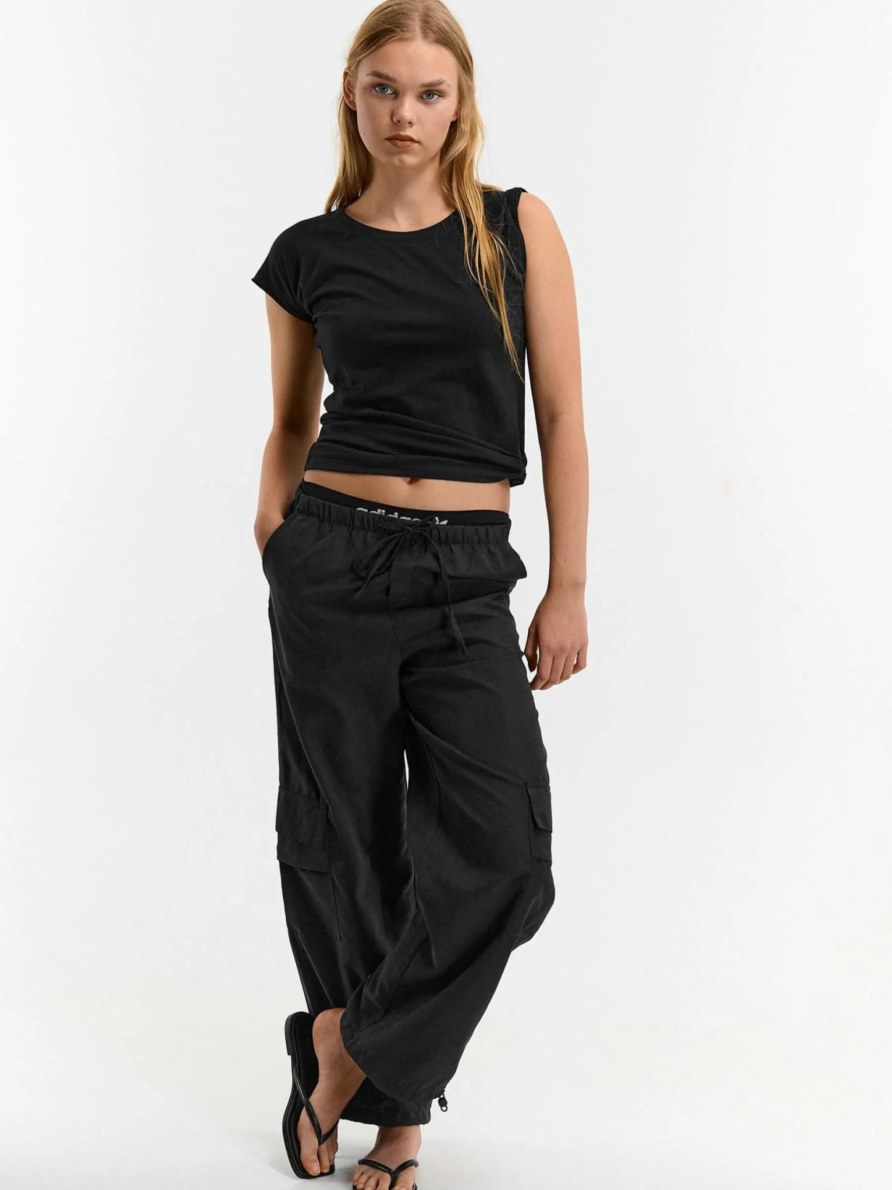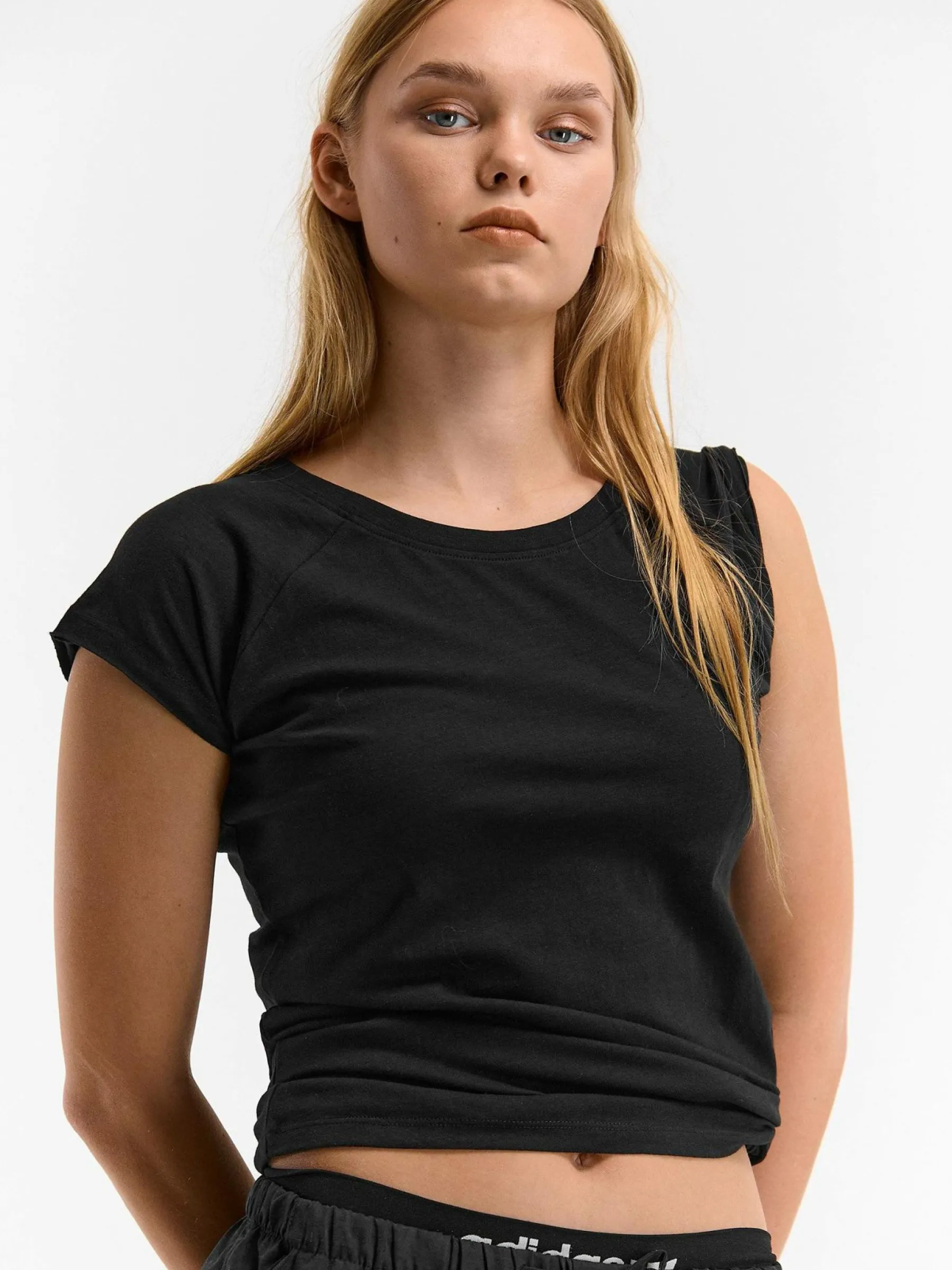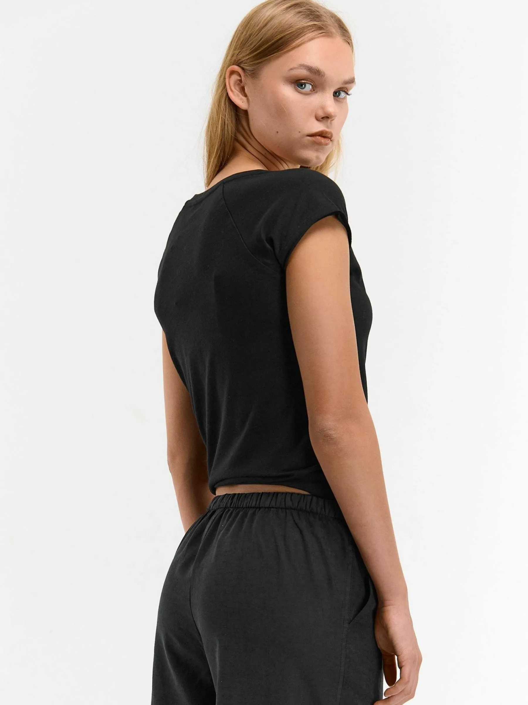 Kolor: czarnyKrój: regularTyp: koszulkaRekaw: krótki rękawDługość: krótkiPattern style: pojedynczy kolorDetal: na…