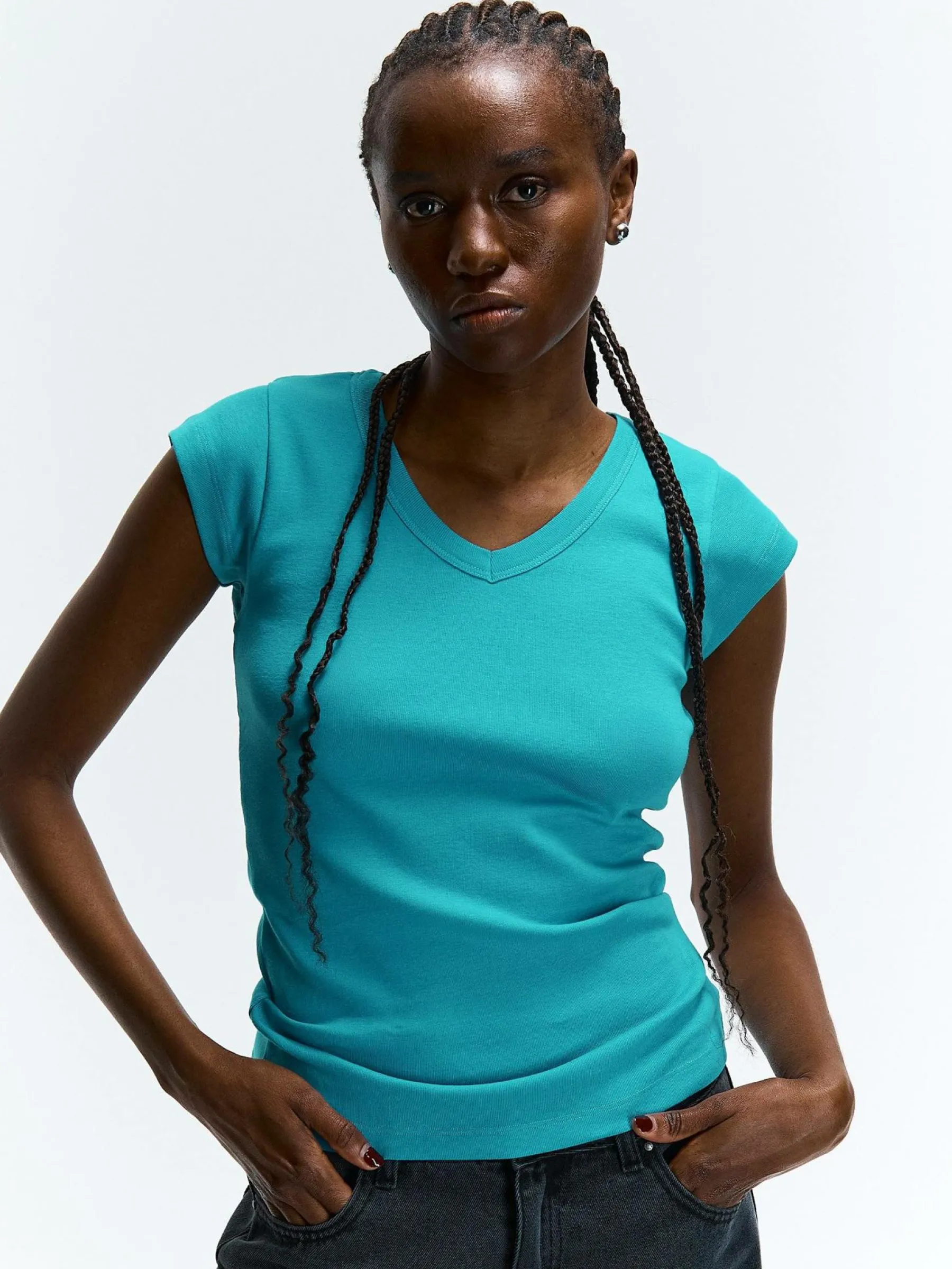 Kolor: niebieskiKrój: regularTyp: koszulkaRekaw: krótki rękawDługość: krótkiPattern style: pojedynczy kolorDetal:…